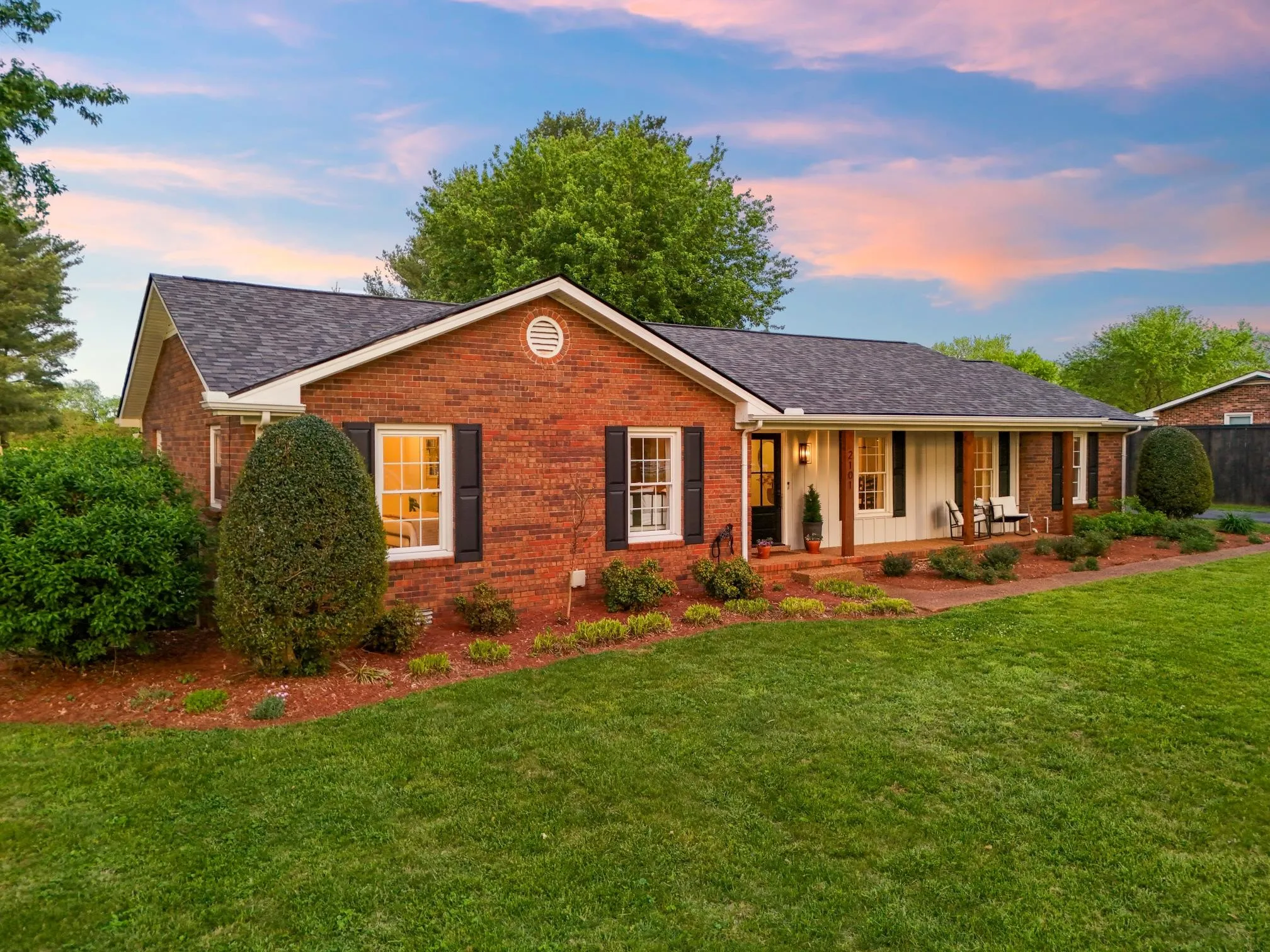 Rare opportunity to own a fully renovated charming country retreat on an acre of land backing up to serene farmland. The views are stunning from both the front and the back of the home. Inside you will find the living room with a cozy wood burning fireplace, a cathedral ceiling, and wood beams which is very rare with a one level ranch home. The large formal dining room is open to the living room creating the perfect space for entertaining and large family gatherings. Hardwood floors flow through the home and into the three bedrooms. Both bathrooms have been stylishly renovated to include new vanities with quartz tops, new fixtures, tile shower, & new tub. The separate den is the perfect space for a home office, playroom, gym, or teen hangout. The expansive outdoor screened room is a dream. It is so cozy and perfect for relaxing, watching sports, or entertaining. The detached storage building with electricity is an ideal workshop! The private yard is flat and is full of mature trees and lush landscaping. This home blends modern updates with classic charm and is ready for you to move right in!! Country views and peaceful surroundings that is only 10 minutes from downtown Murfreesboro! This home is practically new but with the serenity of a peaceful large yard and mature trees! No need to worry about replacements as this home has a new roof, water heater, both privacy & farm fencing, AC & duct work, attic insulation, all new exterior doors, replacement windows, and kitchen appliances! The swing on the back porch will not convey with the sale of the property. It is a family heirloom. *Chimney has been capped.