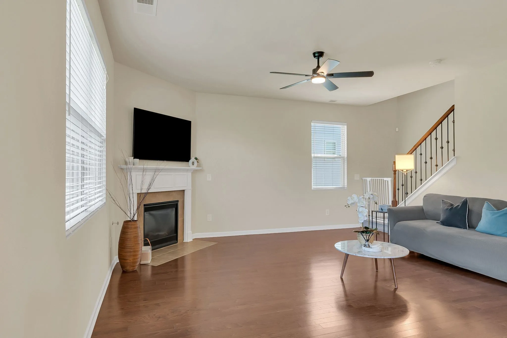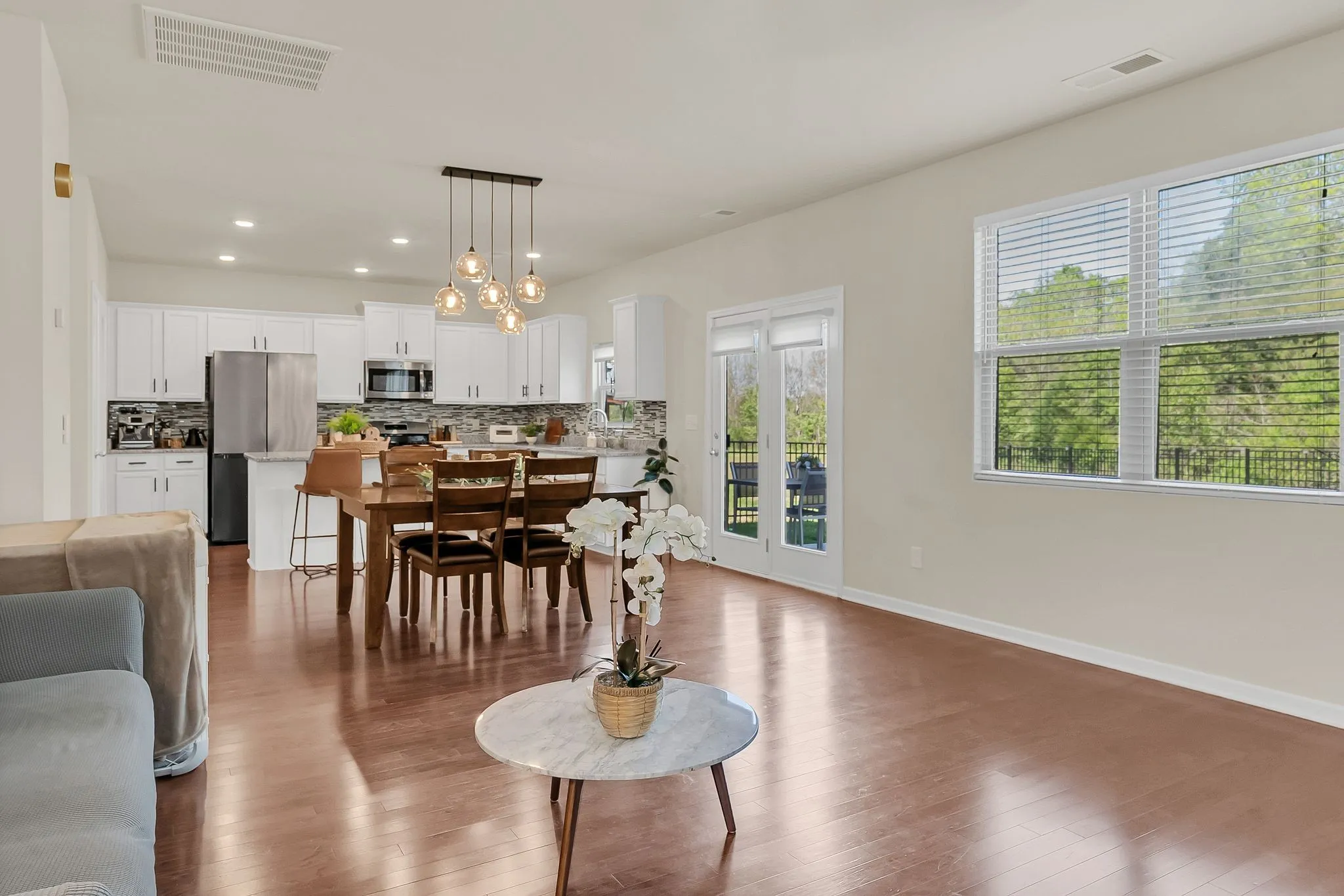 Welcome to your dream home! This beautifully maintained, one-owner home offers the perfect blend of comfort, style, and functionality. Featuring 3 bedrooms and 2.5 bathrooms, this home is designed with an open floor plan that invites natural light through large windows showcasing the serene, wooded backyard—a peaceful retreat where you can enjoy the changing seasons year-round. The main level boasts all wood flooring, adding warmth and elegance throughout. The updated kitchen is a true highlight, featuring stunning white cabinetry, a stylish backsplash, and modern light fixtures that bring a fresh and inviting vibe to the space. The den area offers flexibility and can easily be transformed into your ideal home office or formal dining area. Upstairs, a cozy loft provides the perfect spot for relaxing with your favorite shows or movie nights. The spacious primary bedroom is a peaceful haven with private views of nature—you can comfortably leave the blinds open and wake up to the beauty of the outdoors. The additional two bedrooms are thoughtfully placed apart, offering privacy and convenience, with a full bathroom featuring a double vanity situated between them. Step outside to your fenced-in backyard, where you’ll find a lovely outdoor area with beautiful flooring, ideal for hours of playtime with your kids or pets—or simply relaxing with a cup of coffee. This gorgeous home is a rare find—super clean, thoughtfully updated, and lovingly cared for. Don’t miss your chance to see it for yourself—schedule your tour today!