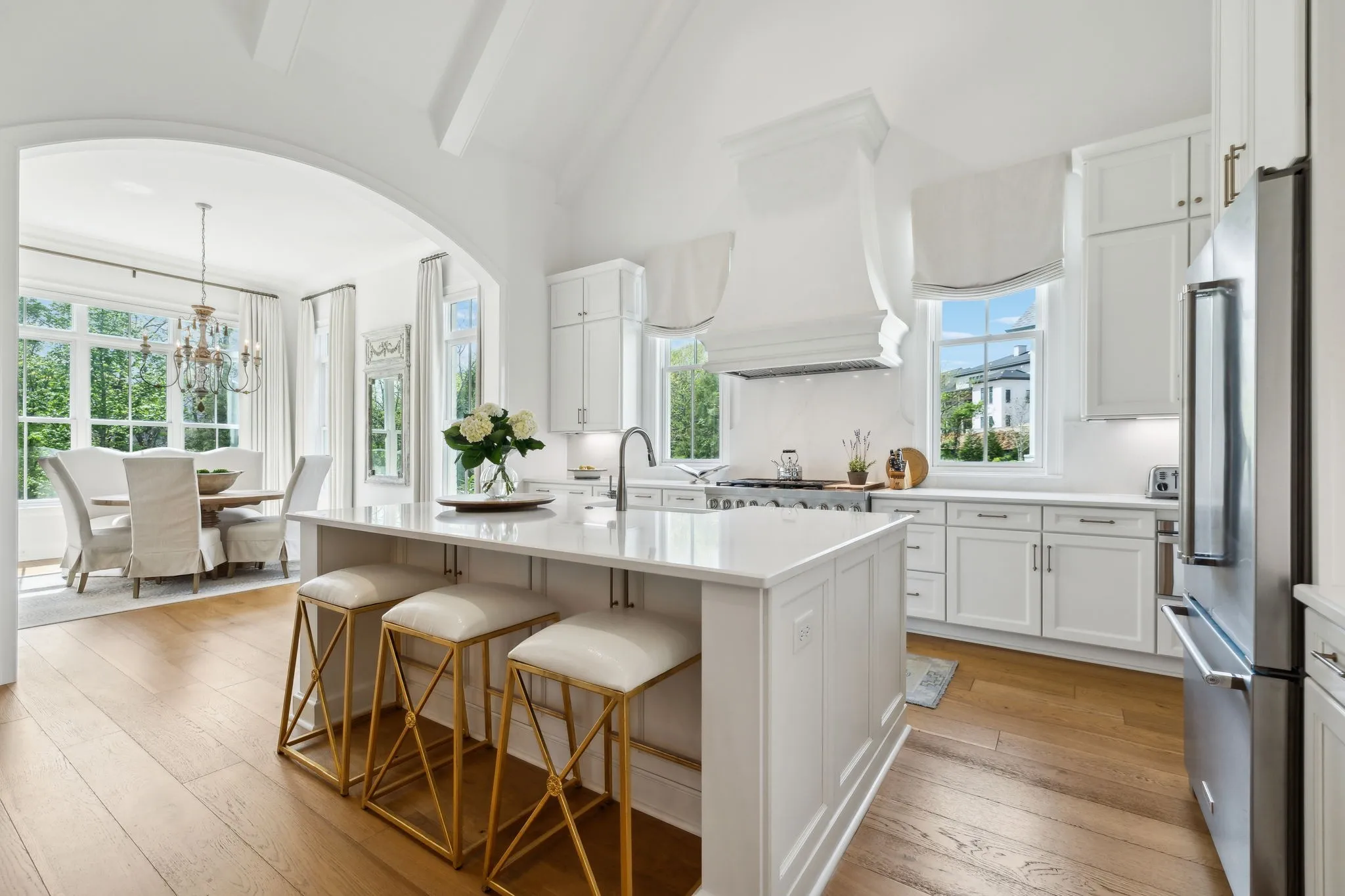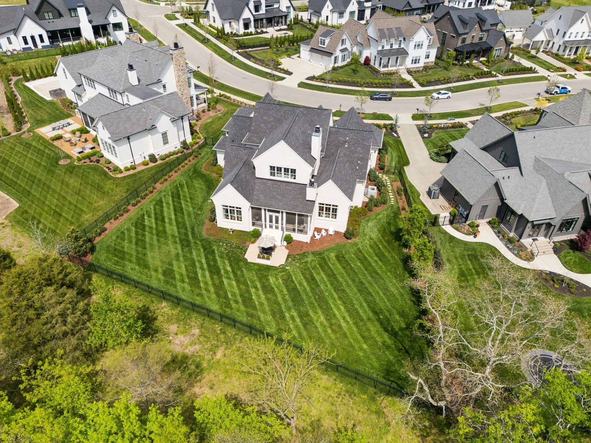 Welcome to 9409 Thatchbay Ct- Built by Legends Homes- this Home is simply Elegant, exactly what you would expect from this builder. Desirable location in The Grove- low traffic cul-de-sac street, backing to Trees and Green Space! Plank Oak floors throughout, high ceilings, vaulted gourmet Kitchen- generous island, 48″ 6 burner double oven range w/ griddle, butlers pantry w/ wine refrigerator, large walk-in pantry with work station. Custom designed ArcusStone range hood and fireplace surround. Primary suite with private views, incredibly spacious Primary Bath with dual closets. Dedicated, main floor functional office-situated away from the main living space-perfect for work from home. Secondary ensuite Bedroom on main level. Upper level offers a sizable bonus room w/ walk-in storage, 2 additional Bedrooms- ensuite and walk through full baths. Extra spacious Screened porch with Fireplace, beautiful patio, backing to the large, Fenced, tree-lined yard- perfect for a Pool! Curb appeal- Stately, Courtyard garage. Close to the Gathering Place amenities and Bridge Bar!