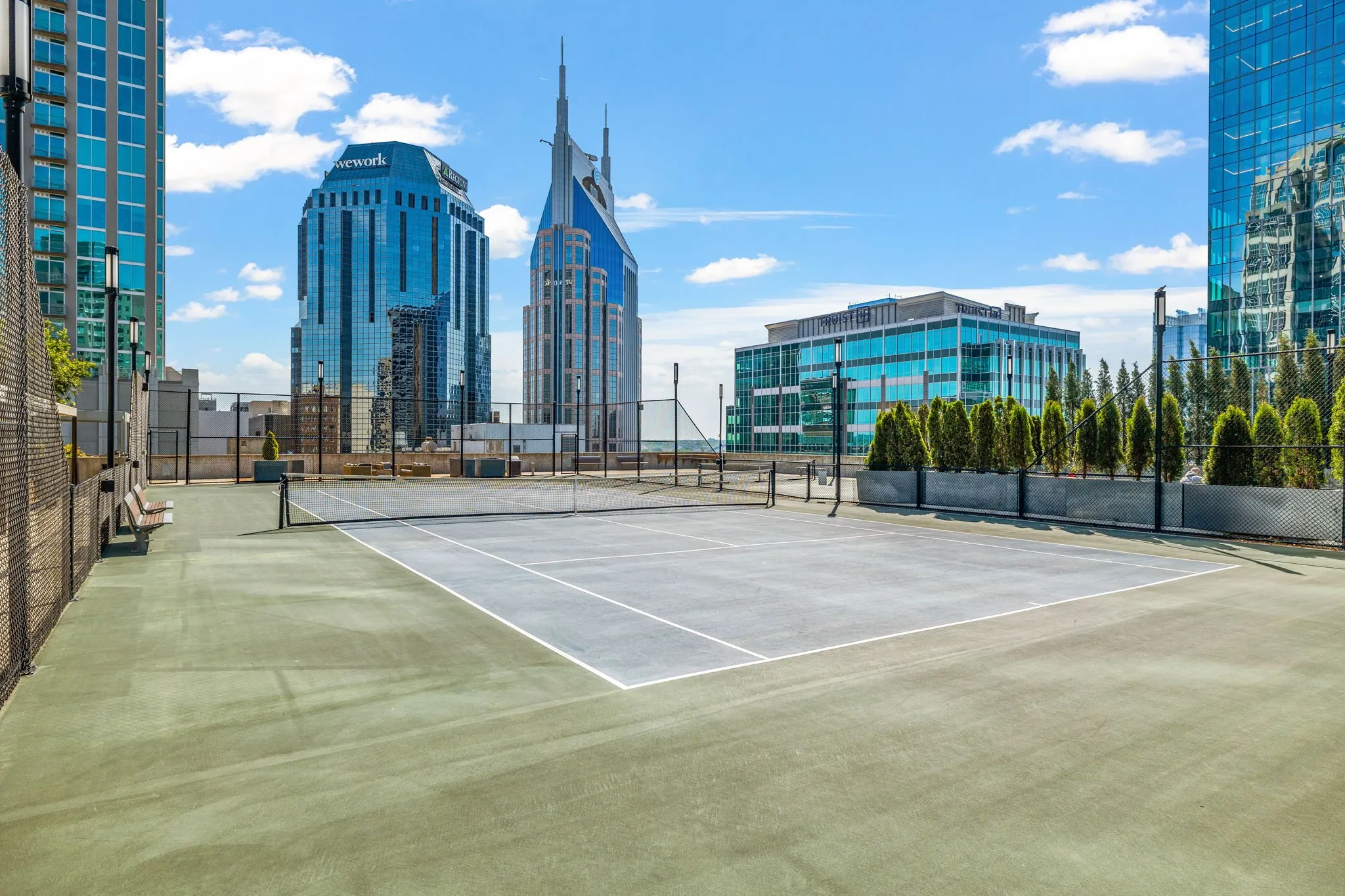 Owner’s Side of the Building with access to the Owner’s Deluxe Amenities. Impress your friends or business associates when entertaining. Nestled in the heart of downtown with unparalleled views of our Music City Skyline. The “505” prime location is located only minutes from The Ryman, famous Broadway bars & Titans stadium. Upgraded California Closets, lovely Granite Countertops, Gas Stovetop, Washer, Dryer & Refrigerator included. Saltwater Resort style Pool w/ 5 Cabanas w/TV & Tennis Court, Bocce Ball, Fitness Center, Pickle Ball & Dog Park (fun wet features for pets), 24-Hour Concierge. Unit faces Church Street with views of and Horizon Park, the Sounds Stadium (You will love the view of their fireworks!) & Downtown Nashville! Premium Parking Space included in parking garage on property (2nd spot available for a fee.) You still have time to be moved in before the July 4th Fireworks Display!