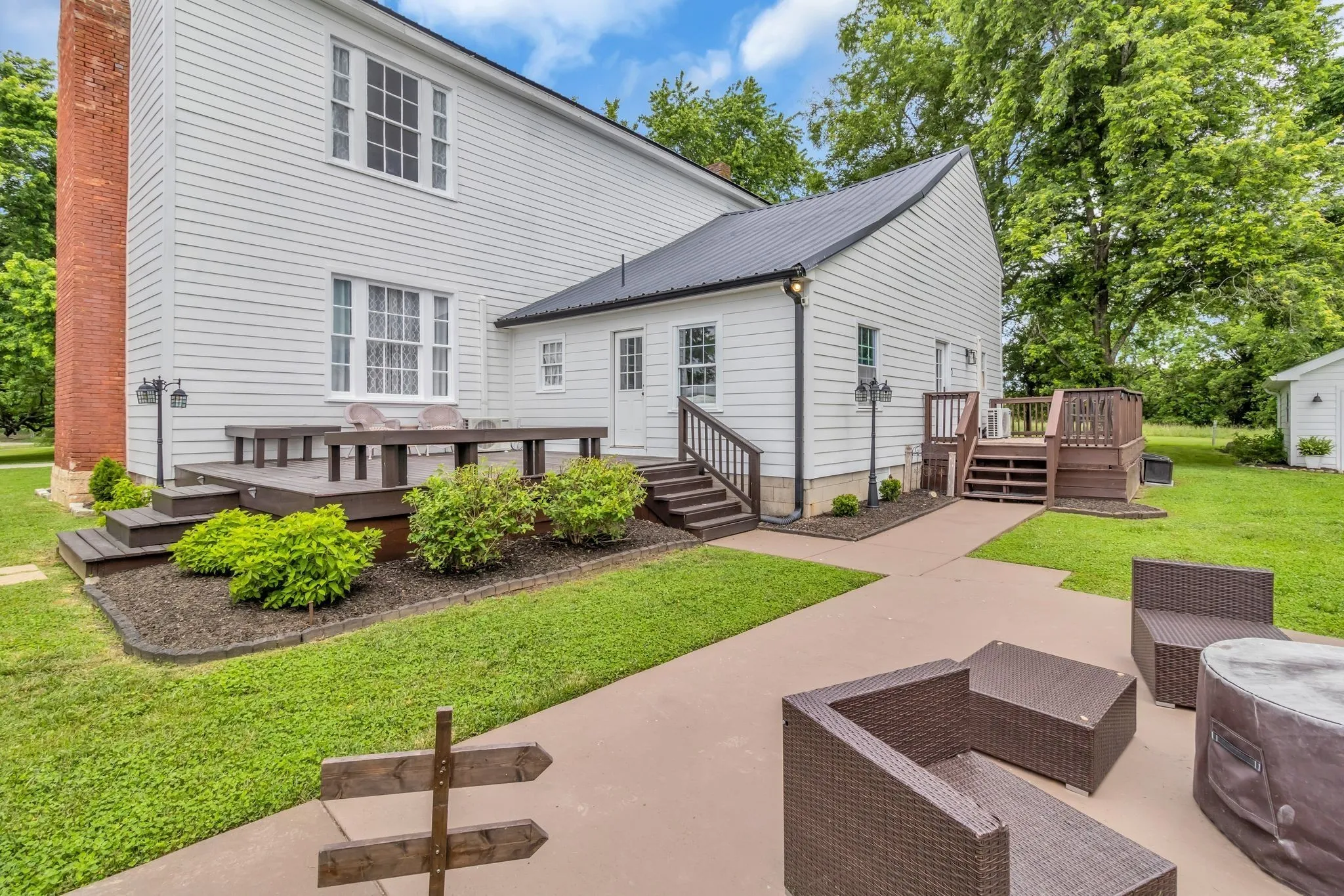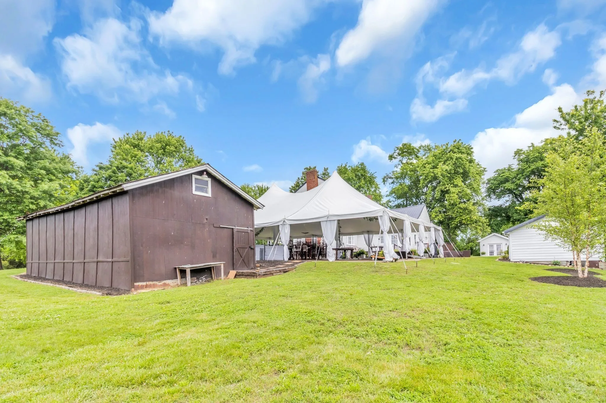 Welcome to Briar Rose Hill, a beautifully renovated 1850s colonial two-story home situated on 1.8 acres. This charming property has been meticulously transformed into a wedding venue, with no detail spared in its restoration & modernization. Its prime location & versatile spaces make it an ideal setting for various uses, offering endless possibilities for its future owner. The main house boasts a new roof installed in April 2022, with all rafters in the attic completely rebuilt by Parker Roofing. The exterior of the house has been enhanced with Hardie board siding, added when the property was purchased. The original windows have been meticulously restored using historically accurate methods, with each glass pane sealed & repainted. The fireplace & chimney on the bridal suite side have been entirely rebuilt, adding to the home’s historic charm.This exceptional property offers a unique blend of historical elegance & modern amenities, making it perfect for weddings and other events!
