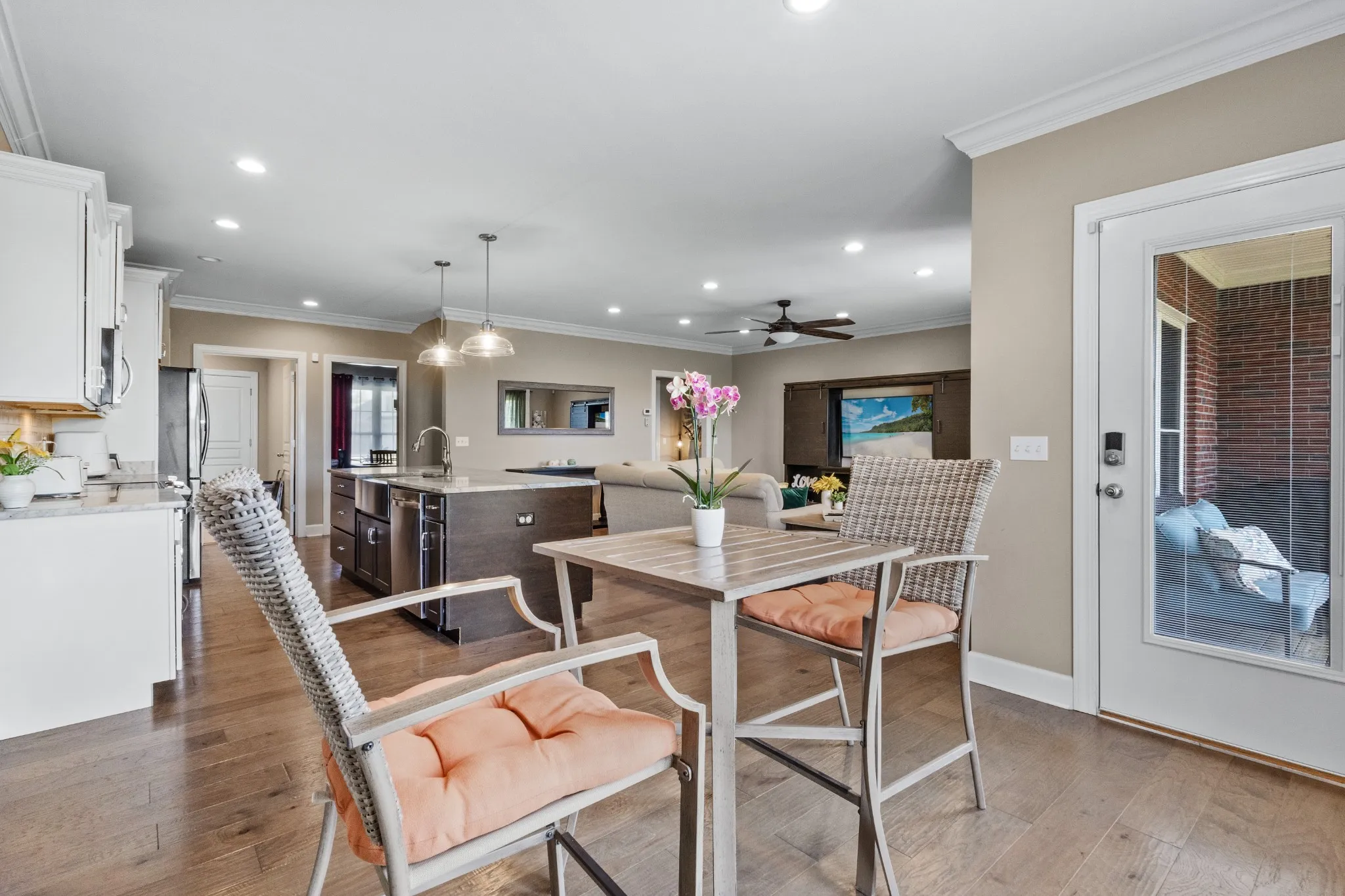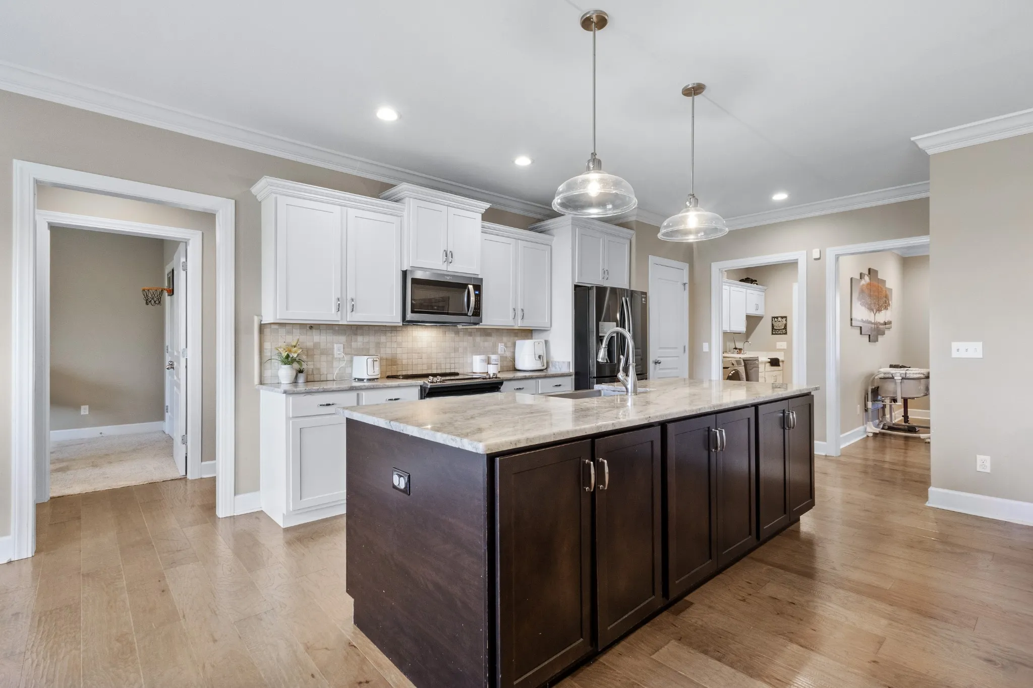 The huge island is the centerpiece of the gourmet kitchen, making it a dream for home chefs and gatherings alike. A formal dining room provides the perfect space for hosting family meals and special occasions. Every bedroom is generously sized, offering big rooms and walk-in closets for ample storage, ensuring your family has plenty of space to grow, play, AND rest. Storage is abundant, with numerous closets and dedicated spaces for all your belongings, making it easy to stay organized.