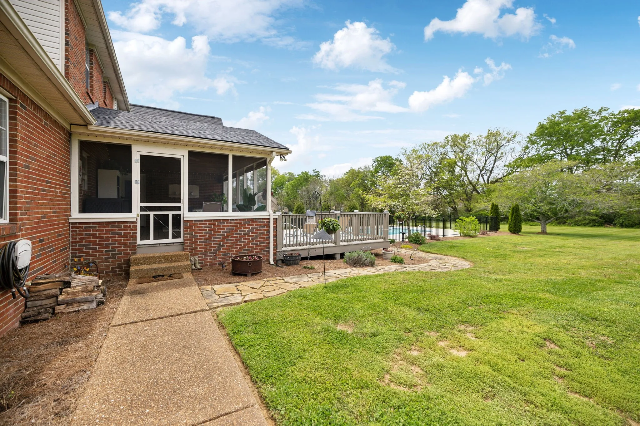 NEW PRICE DROP! SELLER WILL ALSO PAY 10,000 TOWARDS THE BUYERS CLOSING COSTS AS WELL with a full price offer. Welcome to 1401 Caroline Ct, nestled in the highly desirable Charleston Farms community. Set on over an acre of level, tree-lined land, this home offers the kind of outdoor living most people dream of: Summer afternoons by your private IN-GROUND POOL, the kool deck keeping your feet cool as the sun shines above. The large screened-in porch offers a peaceful escape all year long, while the second-tier deck makes entertaining, grilling, and hosting effortless. Inside, the layout was designed with everyday comfort and flexibility in mind. A spacious kitchen offers ample prep and cooking space, ideal for both quiet weeknights and holiday gatherings in the large dining room. The first-floor primary suite provides privacy and ease, while upstairs features two additional designated bedrooms, an “office” or guest space with a closet, and a generous bonus room currently used as a movie theater- also with a closet—giving you options whether you need space for guests, hobbies, or both. An oversized laundry room with built-in workspace and an extra pantry adds organization and function to your daily routine.