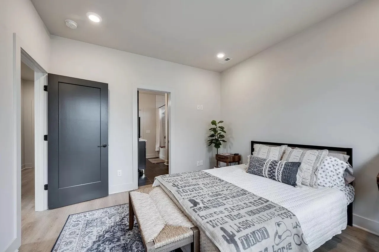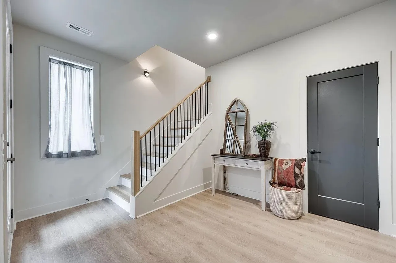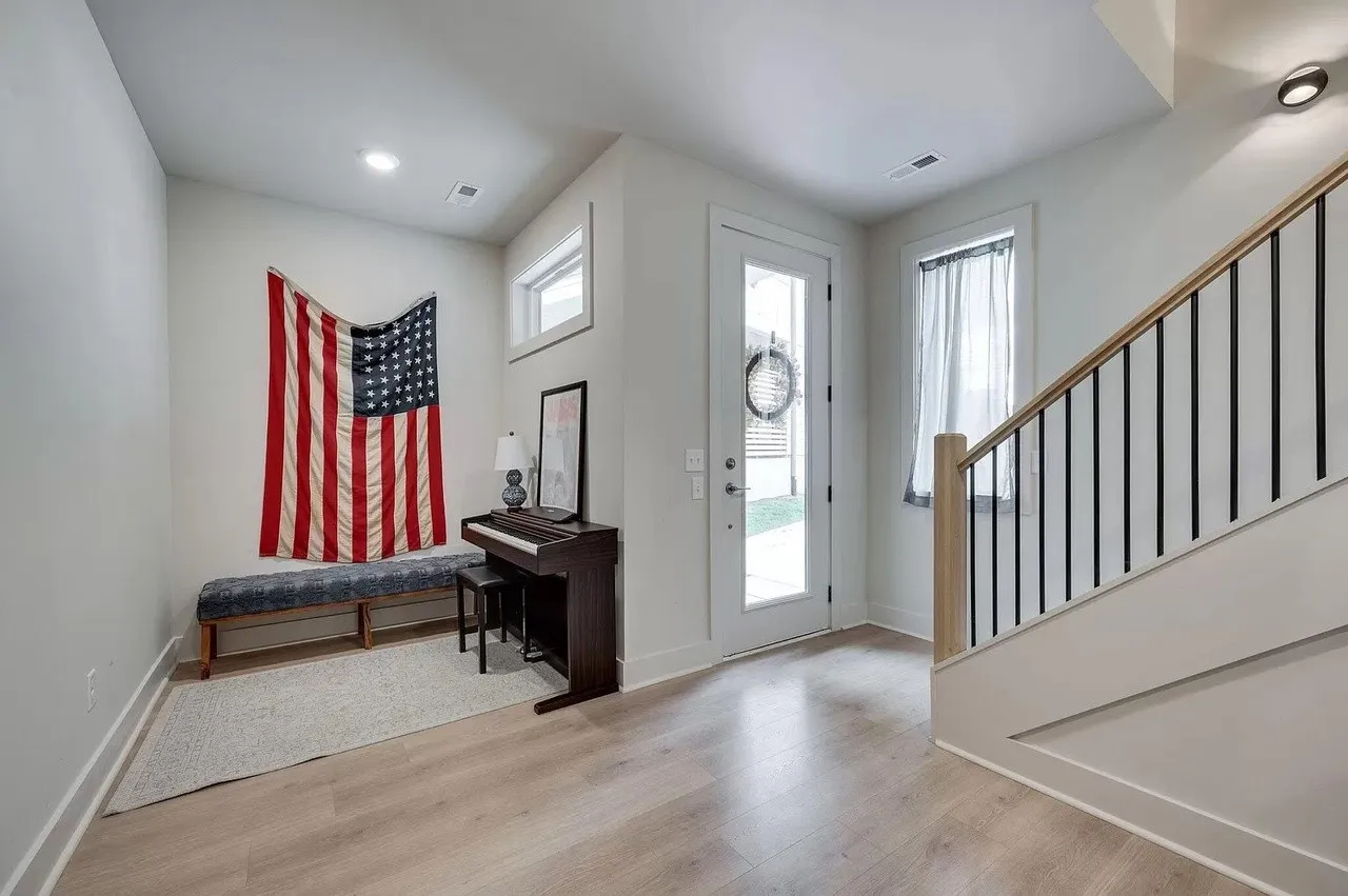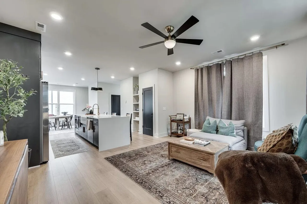 **Two weeks free rent with signed lease by June. Located in the Buchanan Arts District, this modern luxury home is an ideal location, only 5 minutes to Downtown, walking distance to several restaurants and shopping and near the potential baseball stadium if MLB comes to Nashville! This 3 level home features an open floor plan. Spacious first floor primary suite with luxurious amenities. Downstairs foyer area could be used as a home office space. Second floor has a huge eat in kitchen with large island, stainless steel appliances and large farmhouse sink. Separate living room and dining room areas. Includes covered balcony off of the living space. Two additional bedrooms on top floor with a shared full bathroom and an additional half bath on same level as kitchen. New (1 yr) Refrigerator, Washer and Dryer incl. Fully fenced Yard.