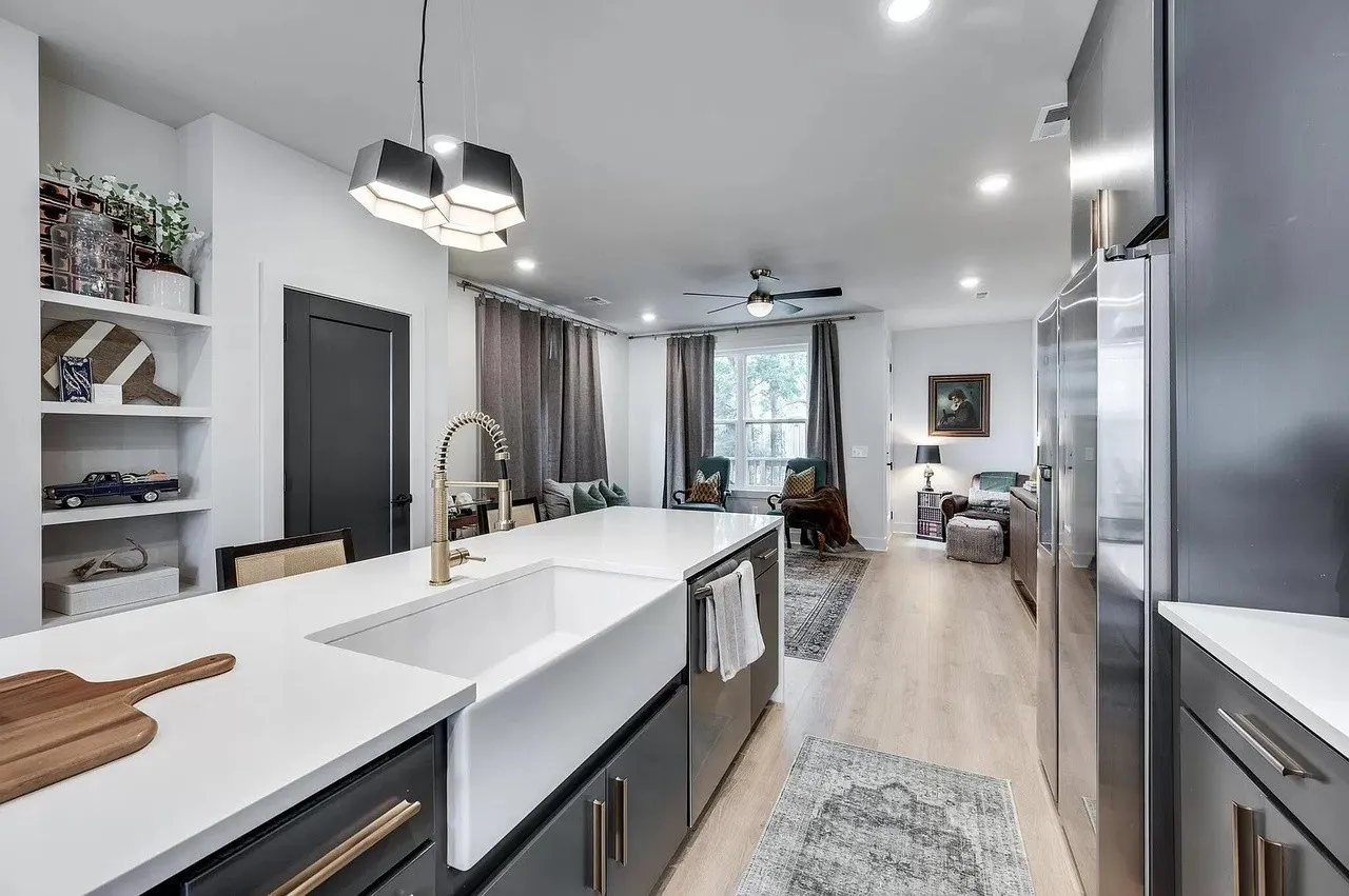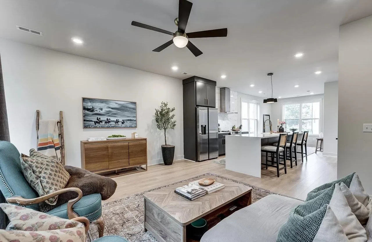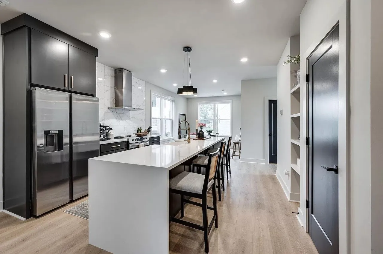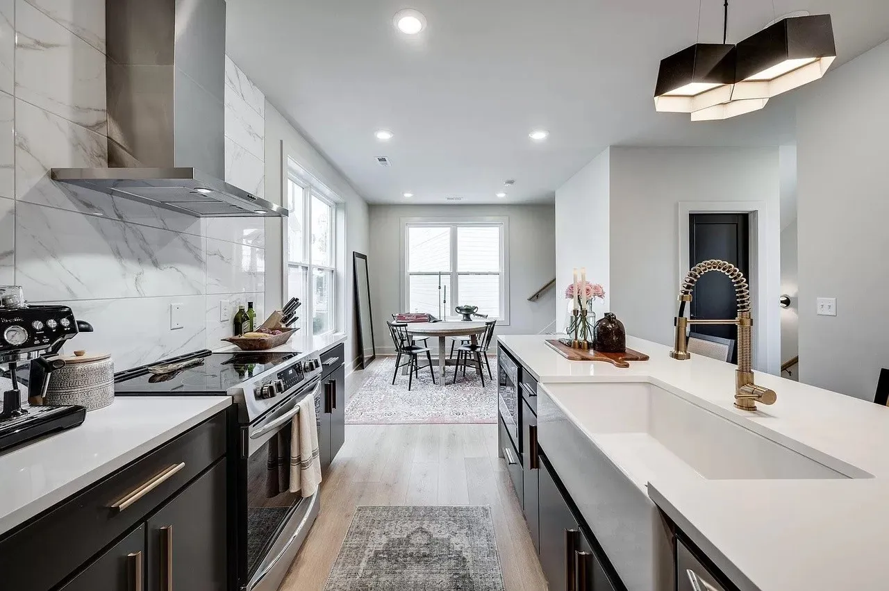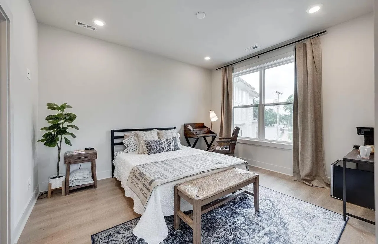 **Two weeks free rent with signed lease by June. Located in the Buchanan Arts District, this modern luxury home is an ideal location, only 5 minutes to Downtown, walking distance to several restaurants and shopping and near the potential baseball stadium if MLB comes to Nashville! This 3 level home features an open floor plan. Spacious first floor primary suite with luxurious amenities. Downstairs foyer area could be used as a home office space. Second floor has a huge eat in kitchen with large island, stainless steel appliances and large farmhouse sink. Separate living room and dining room areas. Includes covered balcony off of the living space. Two additional bedrooms on top floor with a shared full bathroom and an additional half bath on same level as kitchen. New (1 yr) Refrigerator, Washer and Dryer incl. Fully fenced Yard.