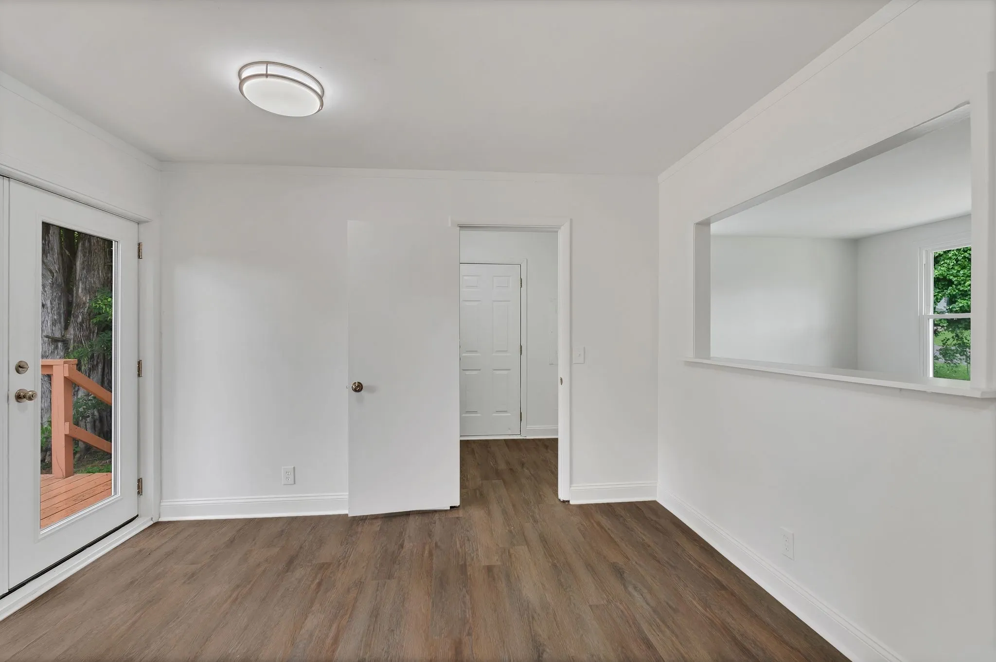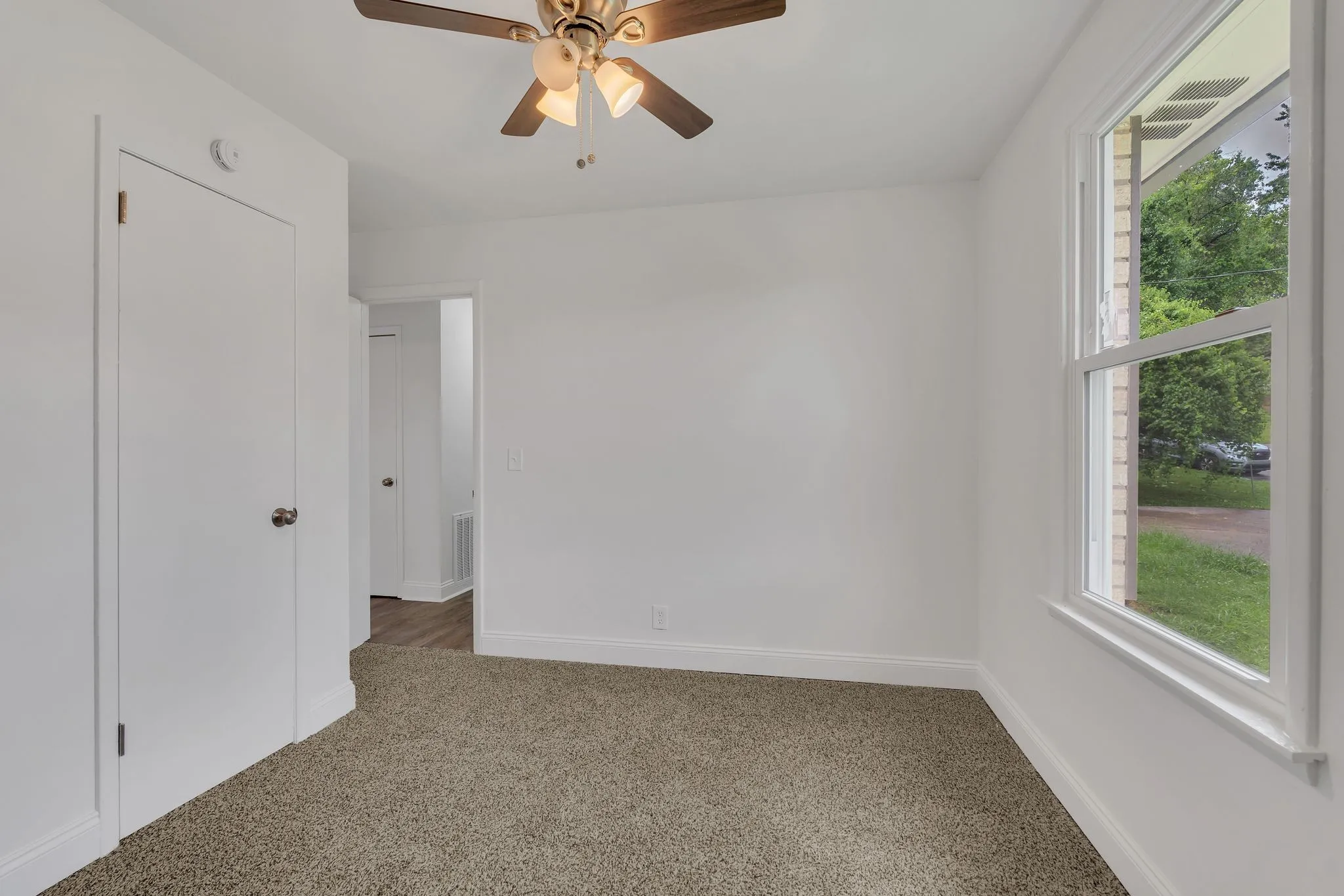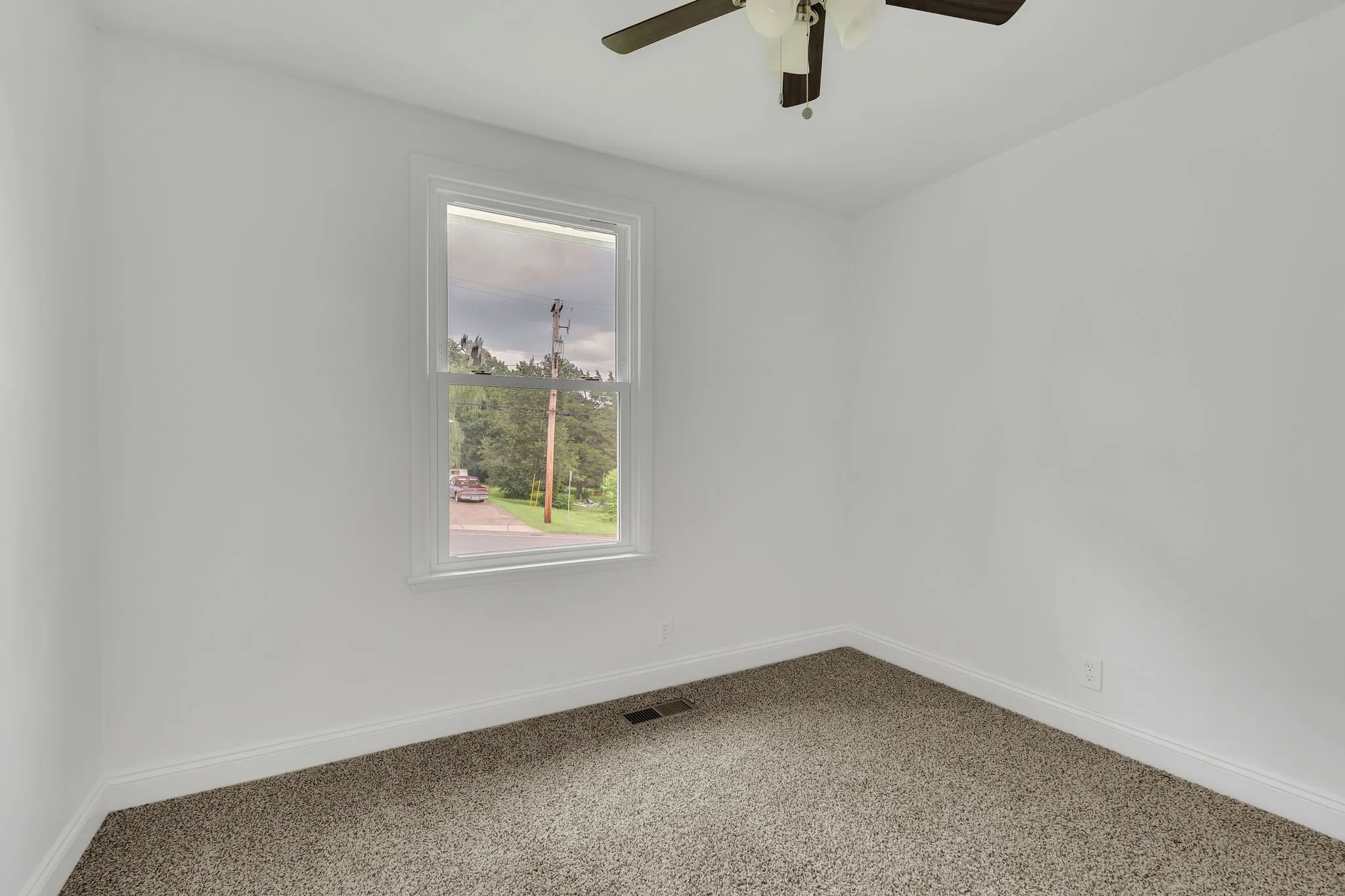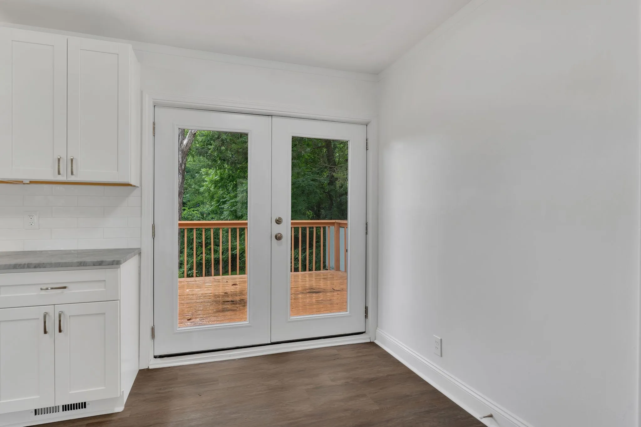 Owner/Agent. This fully remodeled 3-bedroom, 1-bath home is move-in ready and packed with upgrades. Enjoy all-new energy-efficient windows, premium luxury vinyl plank flooring, and plush new carpet with thick padding in all bedrooms. The beautifully renovated bathroom features a custom tile floor, walk-in shower, and a new vanity with a granite countertop. The brand-new kitchen is a showstopper—complete with stainless steel appliances, quartzite countertops, custom cabinetry, a stylish backsplash, and a built-in dishwasher. Additional highlights include all-new lighting, fresh paint, updated electrical outlets, and a dedicated laundry room. Outside, you’ll find new gutters, soffits, French doors, an HVAC system, and a vapor barrier. Relax or entertain on the back deck overlooking the large, private, fenced-in yard!! This home offers modern style, comfort, and peace of mind—inside and out!
