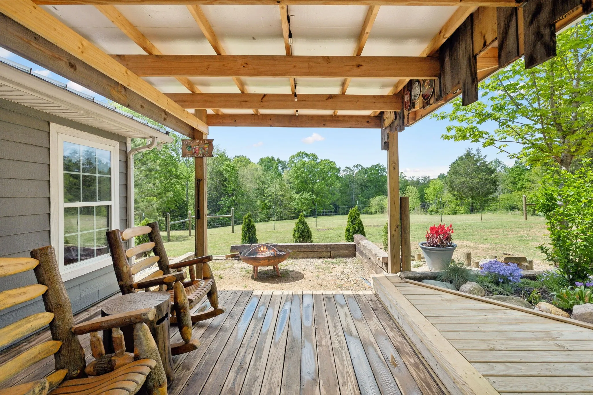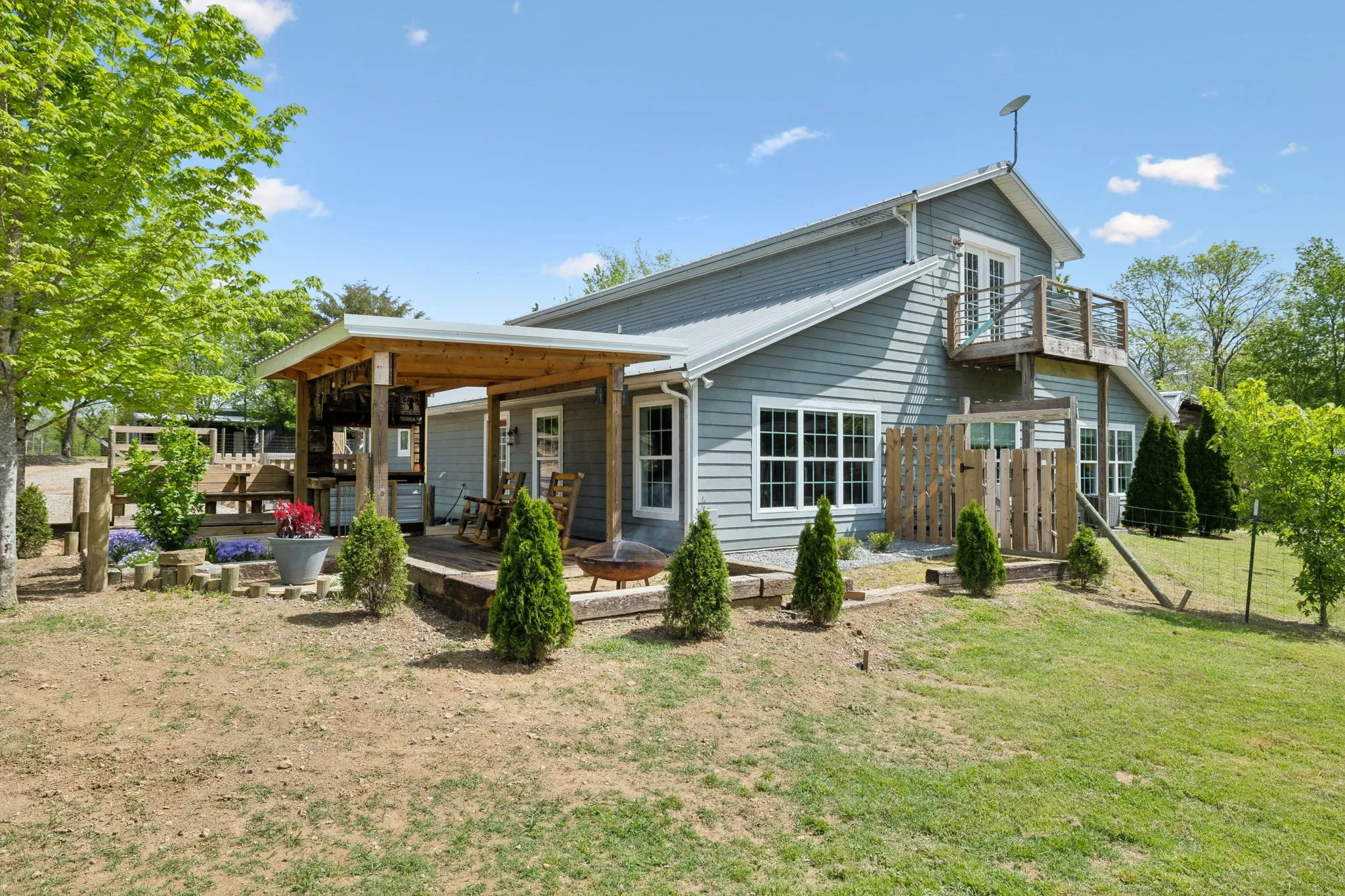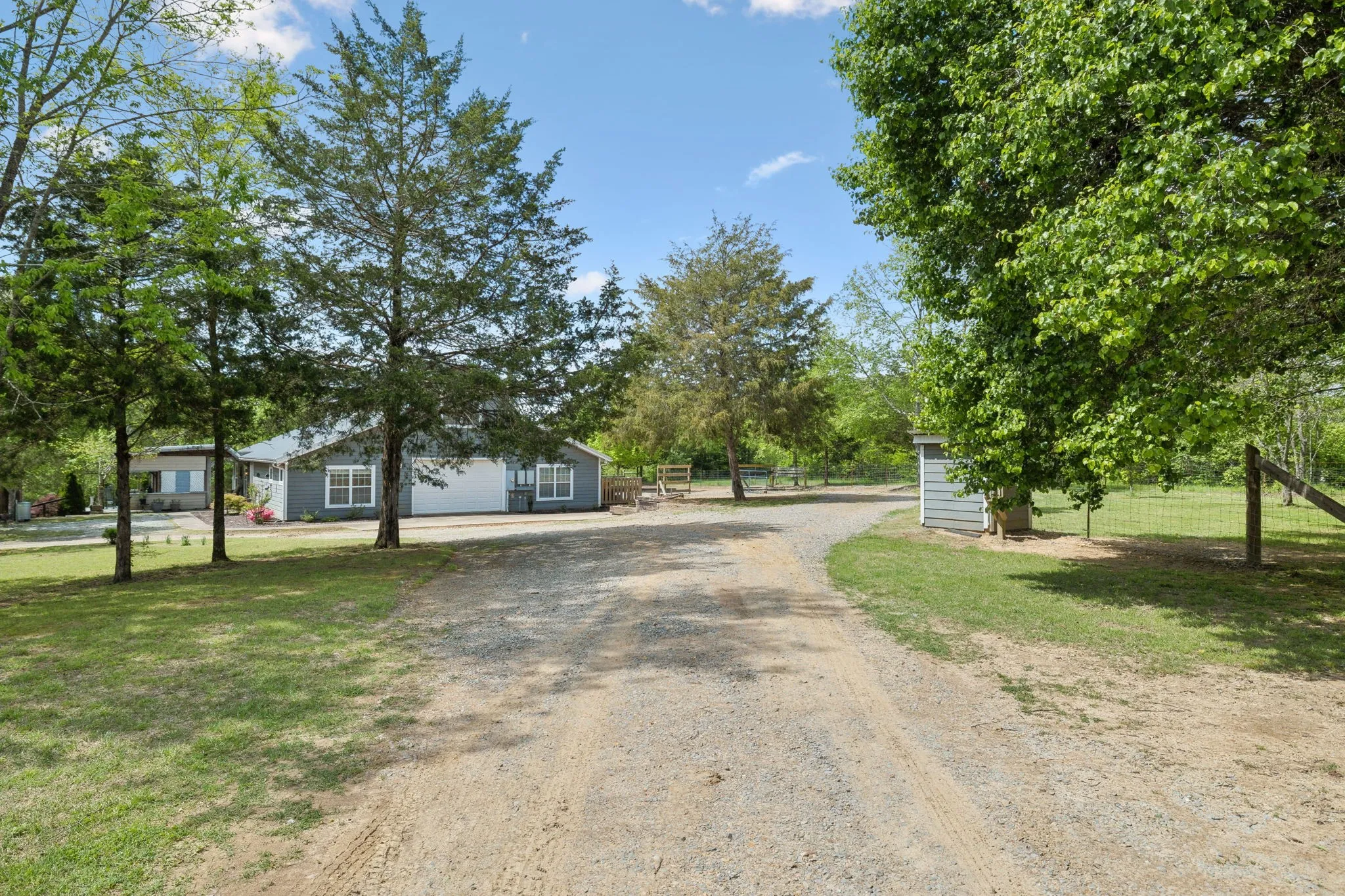 Welcome to this custom-built home nestled on 5 acres of serene, fenced pasture—ideal for horses, chickens, or simply enjoying the open space. Privately tucked away and invisible from the road, this unique property offers both seclusion and convenience, located just minutes from grocery stores, shopping, restaurants, and Bowie Nature Park—only 35 miles to downtown Nashville! The main residence boasts thoughtful craftsmanship, vaulted ceilings and a warm, inviting feel. Enjoy morning coffee while watching the sunrise from the second-floor balcony, or host gatherings on either of the two patios overlooking your peaceful pastureland. An attached apartment with private entrance and stunning exposed beams offers incredible flexibility—use it as a rental, short-term stay, or a perfect in-law suite. A 4-year-old 1,728 sqft (36×48) barn/shop offers 12-ft side walls and an oversized entrance large enough to accommodate an RV. Inside, a finished workspace is fully equipped with heating, cooling, and hot water—ideal for hobbies, a business, or creative ventures. Utilities include well water with city water available at the road. This property truly offers endless opportunities—whether you’re looking for a multigenerational living setup, rental income, hobby farming, or simply a private retreat close to modern conveniences.
