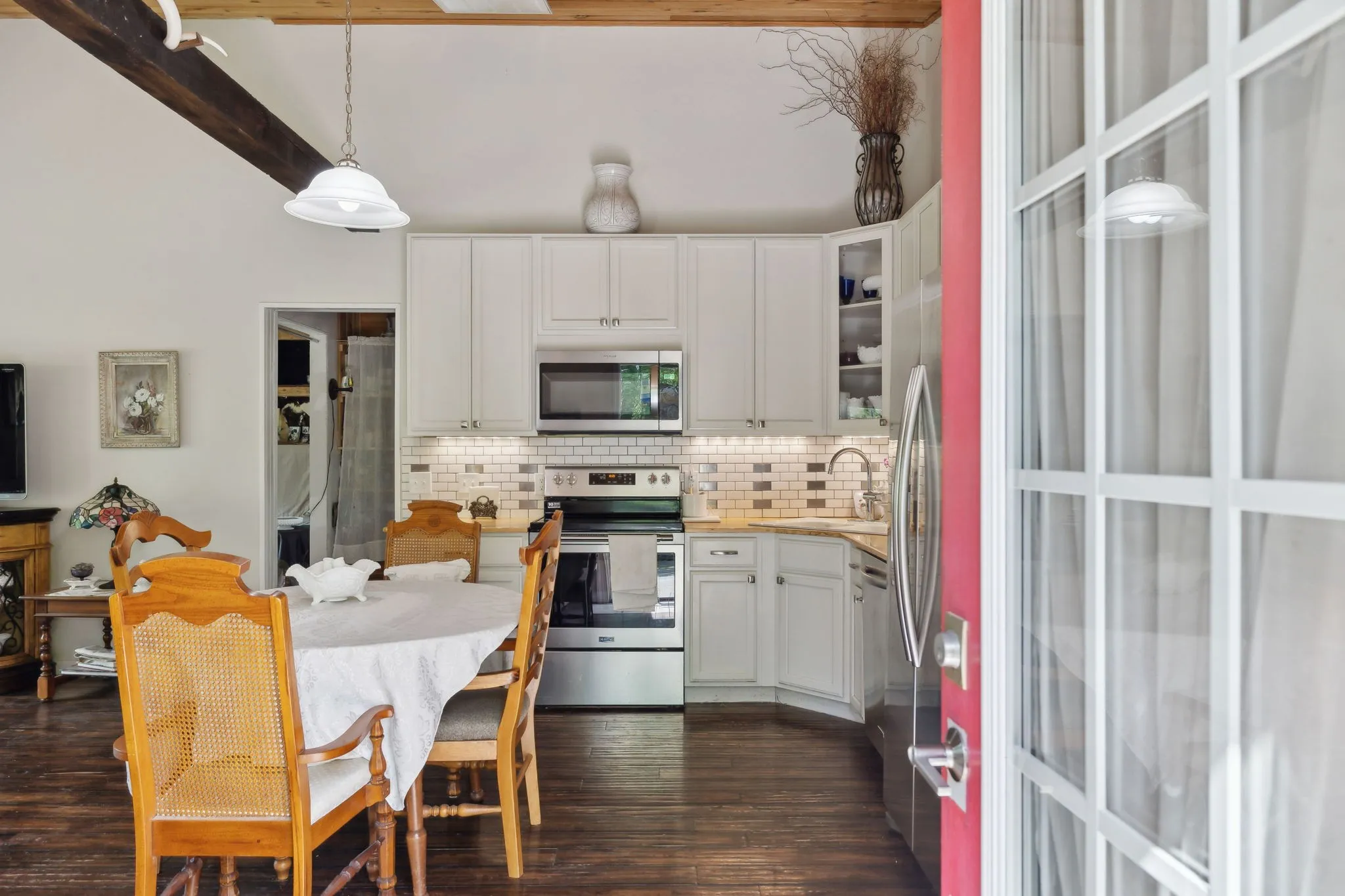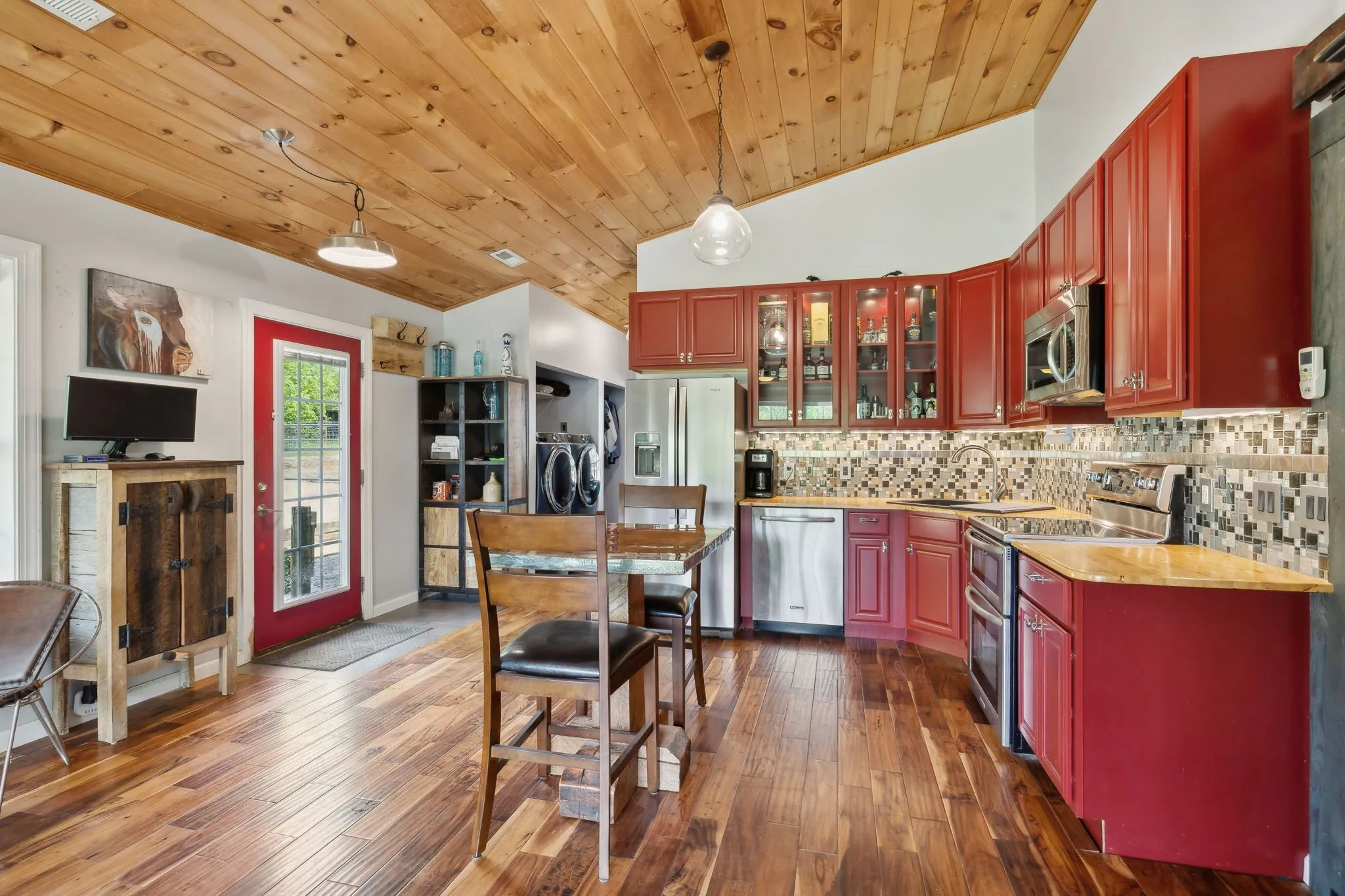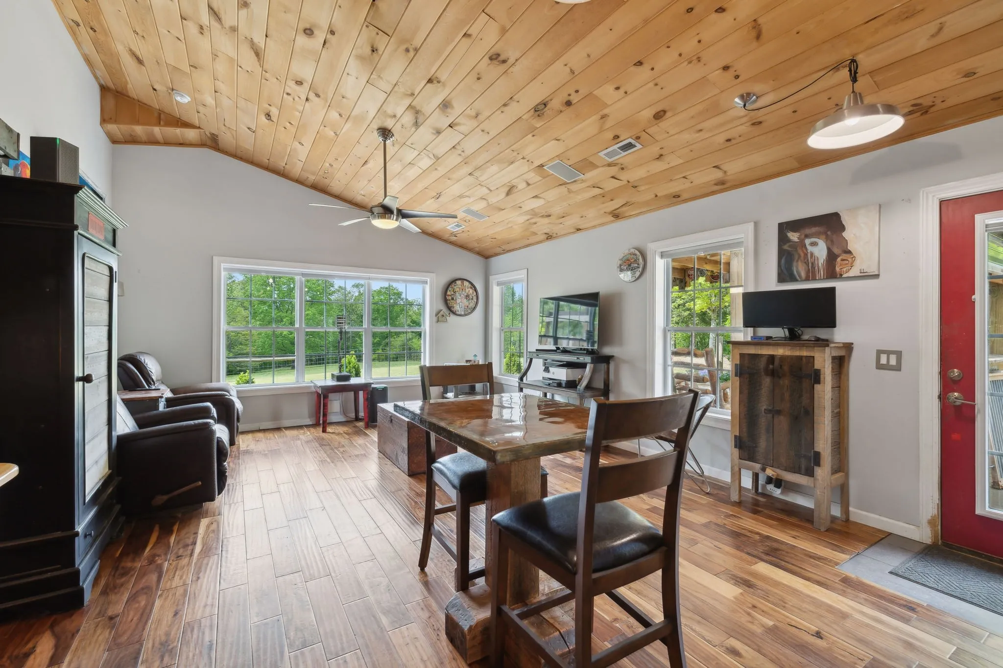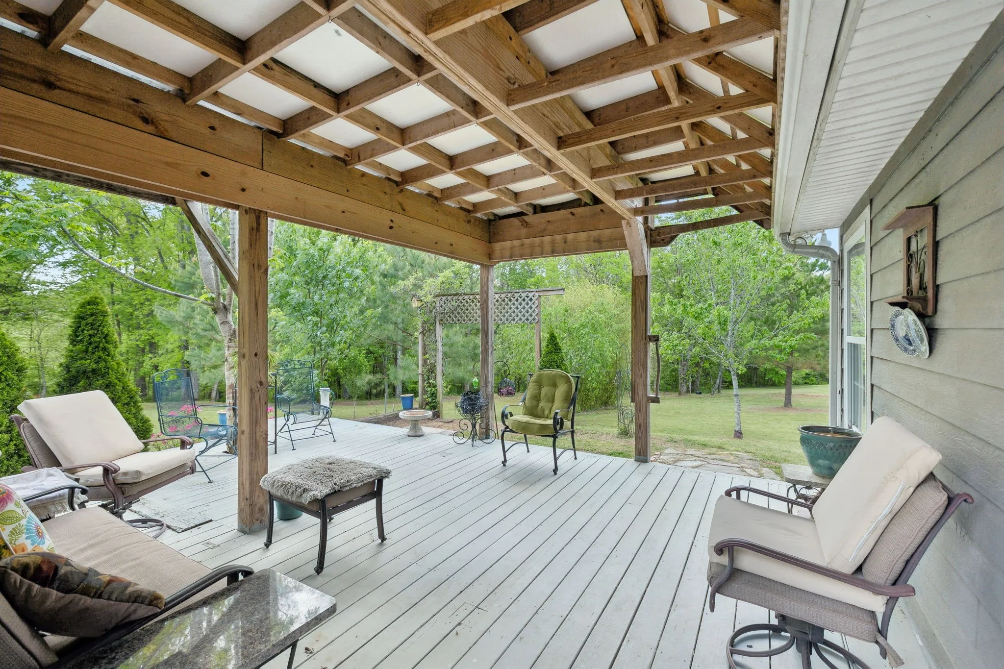 Welcome to this custom-built home nestled on 5 acres of serene, fenced pasture—ideal for horses, chickens, or simply enjoying the open space. Privately tucked away and invisible from the road, this unique property offers both seclusion and convenience, located just minutes from grocery stores, shopping, restaurants, and Bowie Nature Park—only 35 miles to downtown Nashville! The main residence boasts thoughtful craftsmanship, vaulted ceilings and a warm, inviting feel. Enjoy morning coffee while watching the sunrise from the second-floor balcony, or host gatherings on either of the two patios overlooking your peaceful pastureland. An attached apartment with private entrance and stunning exposed beams offers incredible flexibility—use it as a rental, short-term stay, or a perfect in-law suite. A 4-year-old 1,728 sqft (36×48) barn/shop offers 12-ft side walls and an oversized entrance large enough to accommodate an RV. Inside, a finished workspace is fully equipped with heating, cooling, and hot water—ideal for hobbies, a business, or creative ventures. Utilities include well water with city water available at the road. This property truly offers endless opportunities—whether you’re looking for a multigenerational living setup, rental income, hobby farming, or simply a private retreat close to modern conveniences.