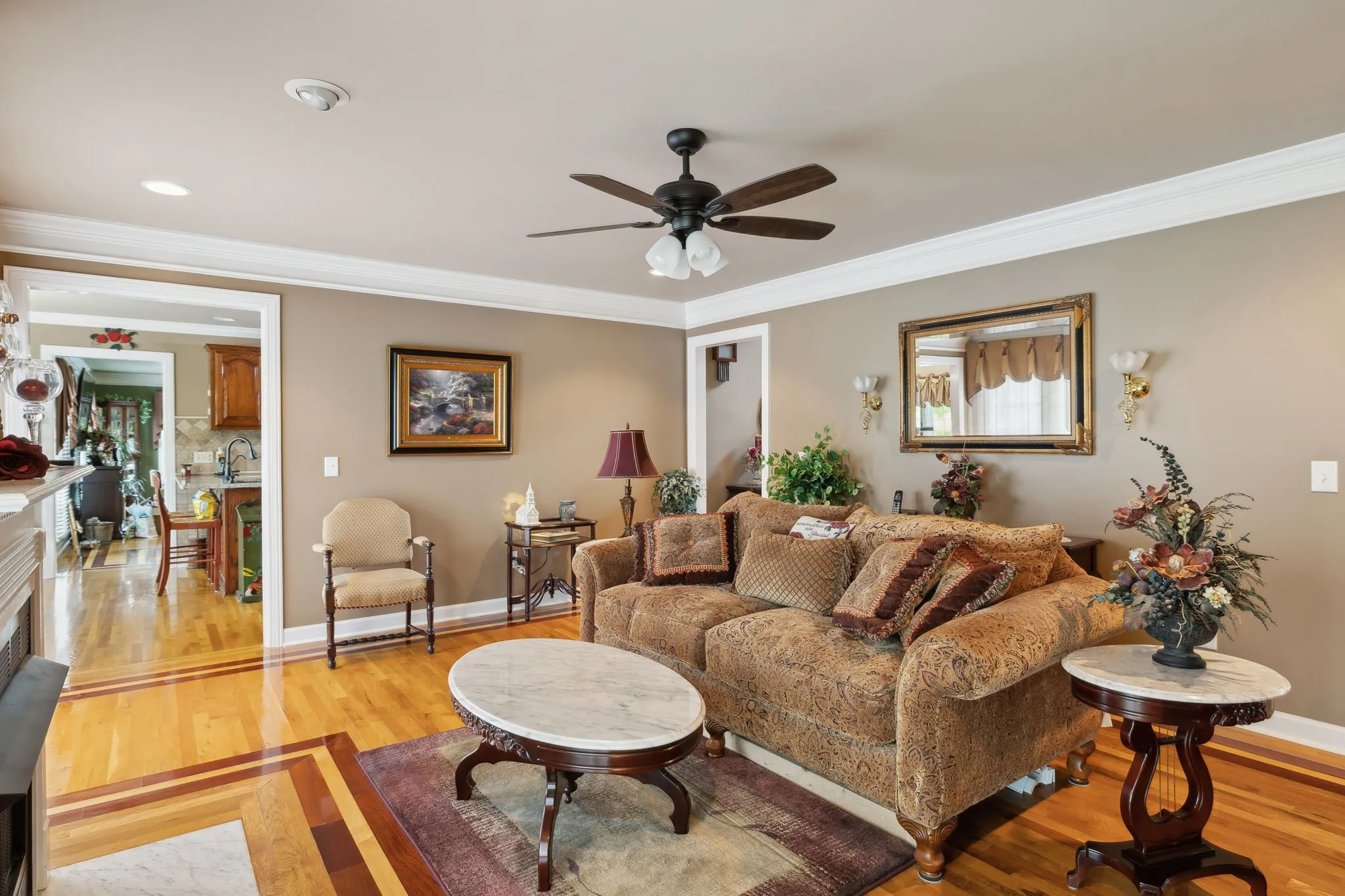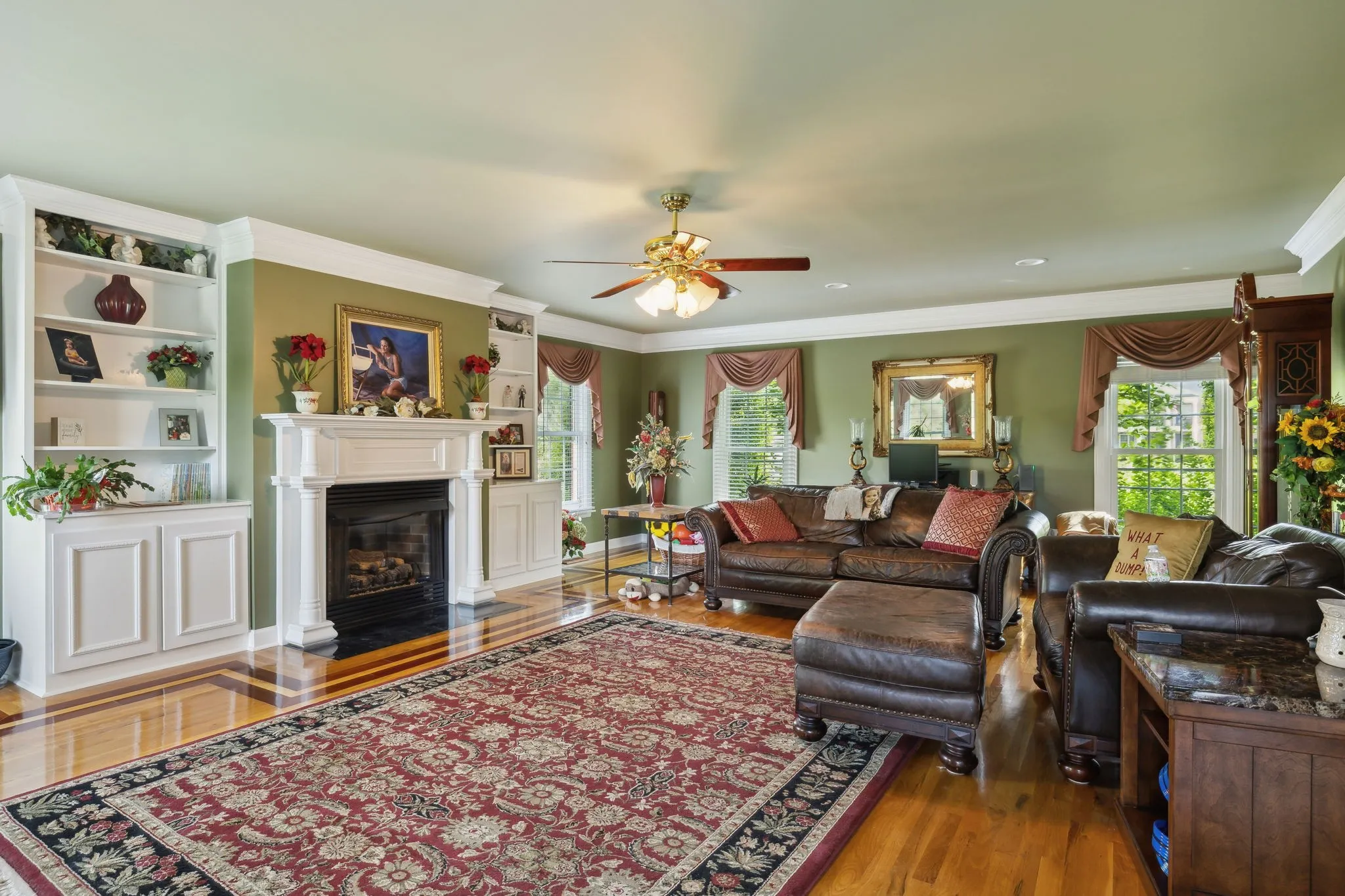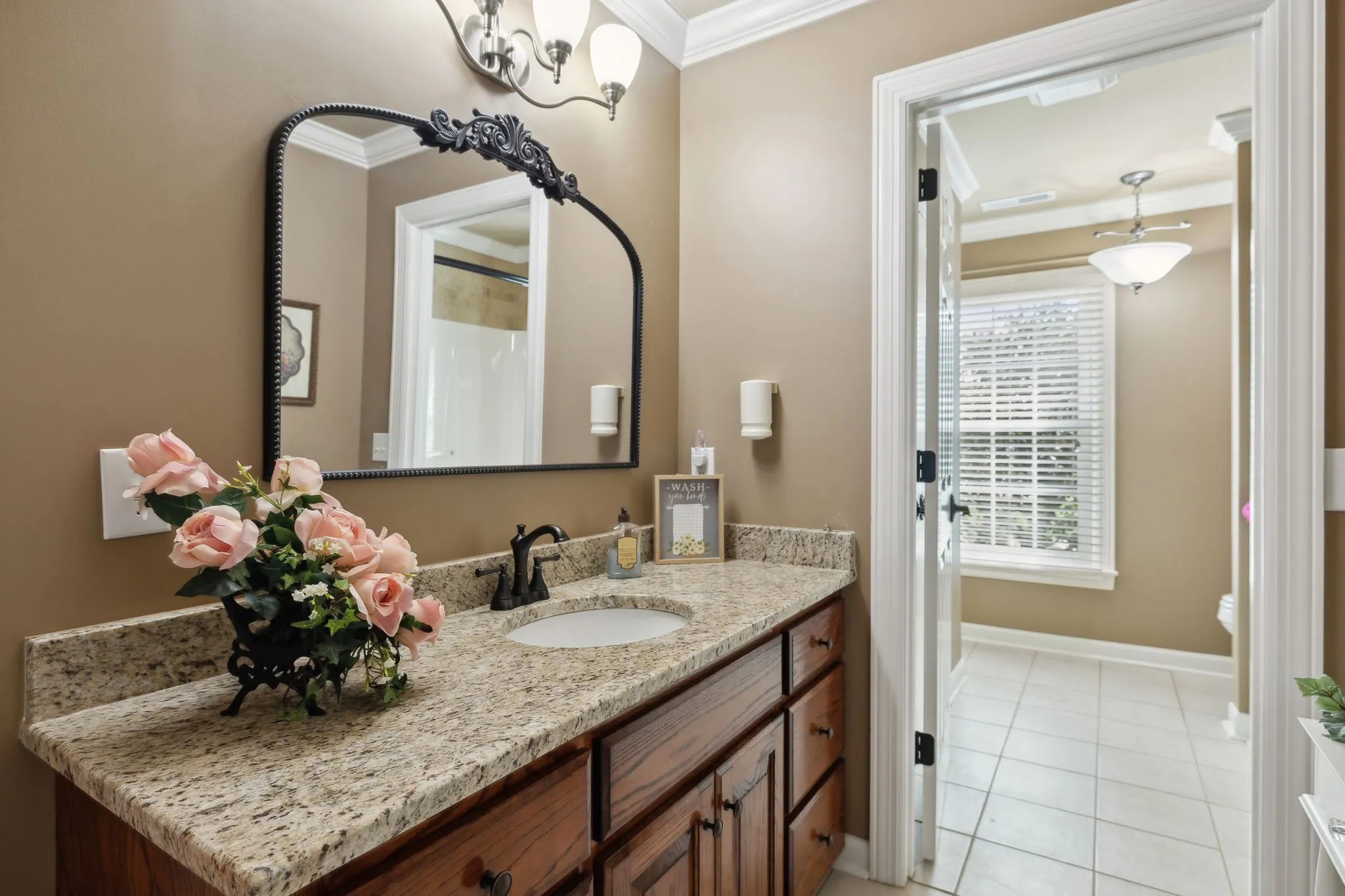 Stately all brick home on a beautifully manicured corner lot in desirable Williamson County! Offering 3,447 sq ft, this 4 bed, 2 full and 2 half bath home is filled with timeless finishes and thoughtful details. Step inside to hardwood floors, 8 foot ceilings, 8 inch crown molding, and a striking foyer with wrought iron double doors and inlaid wood flooring. The kitchen boasts red oak cabinetry, granite counters, tile backsplash, and a bright breakfast nook. A main level primary suite and spacious bonus room offer comfort and versatility. Two gas fireplaces, one with black granite and one with white marble, add warmth to the living spaces with custom built ins. All bathrooms are finished with granite and tile for a polished, upscale feel. Enjoy outdoor living on the rear deck surrounded by mature landscaping and charming magnolia trees. A 2 car garage, oversized laundry room, and classic design make this home move in ready and easy to love.