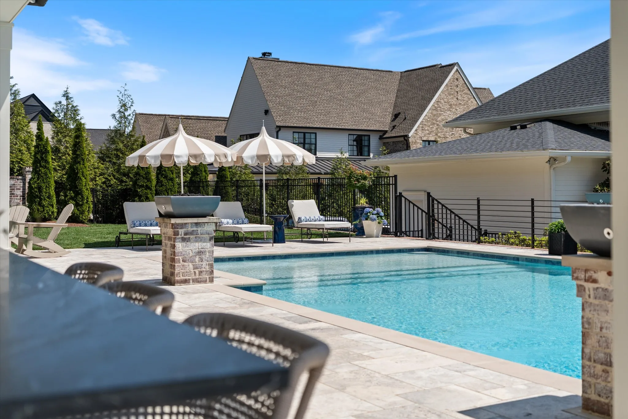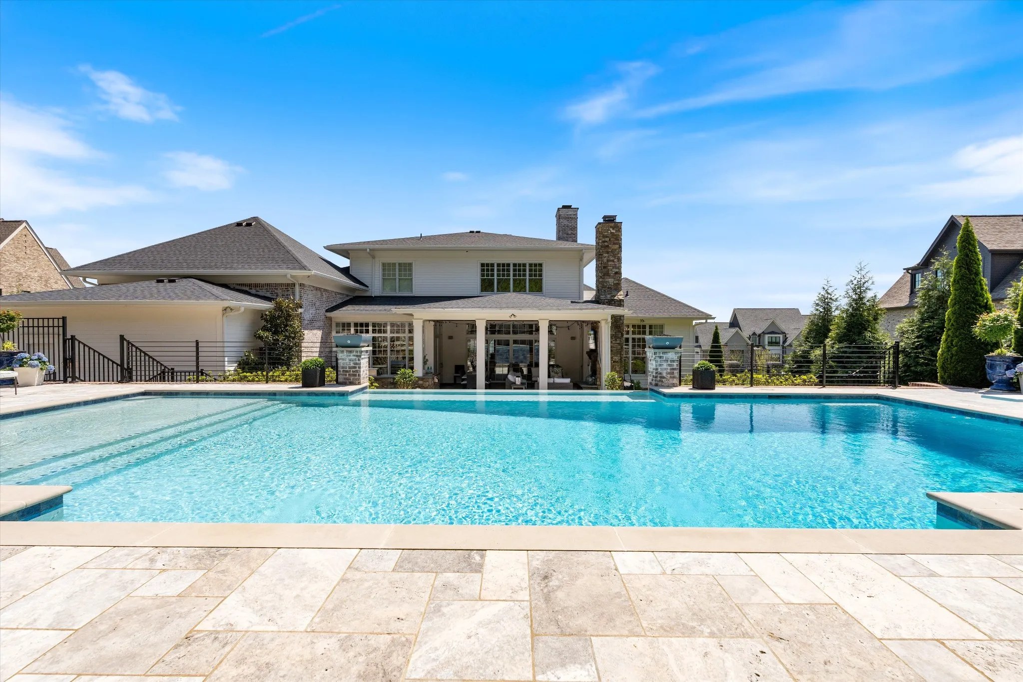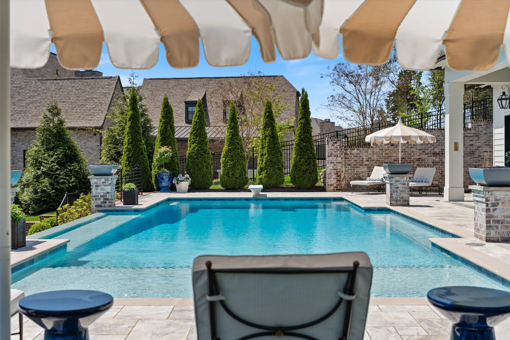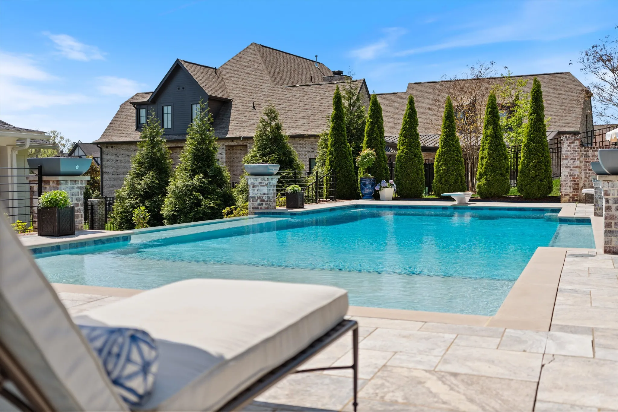 This stunning home is an entertainer’s DREAM built by Davis Properties with incredible views in one of Franklin’s most convenient locations! This home exudes luxury inside + out on a premier 2-acre tree-lined lot in the Preserve at Echo Estates, a luxury community tucked into a peaceful enclave of lush beauty, yet just minutes away from The Factory, Downtown Franklin, Harlinsdale Farm, BGA + Cool Springs. This well-maintained home includes an open floor plan complete with designer touches and high-end finishes throughout, as well as smart home technology including a Sonos surround system, full security system with cameras, and an Omnilogic system for the pool. No expense was spared in creating a true outdoor oasis equipped with a complete outdoor kitchen including a sink, refrigerator drawers, Memphis Grill with App, oversized gas burner, condiment/ice bin, and adjacent dining and seating areas with a fireplace and outdoor TV. Ushering you further outside is a courtyard seating area with a striking waterfall feature, professional landscaping, and dual stair access into a second level of masterful design. There, a gunite pool with an auto refill catch basin system, diving board, lounging ledge, and 4 gas fire bowls accompany a stunning cabana! This state-of-the-art cabana includes gas lanterns, iron doors, designer finishes, a half bath and changing room, as well as a designated laundry room in which both rooms are equipped with heating and A/C. In the outdoor portion of the cabana is another outdoor kitchen with 2 mini fridges, a sink, soapstone countertops, an ice machine, built-in kegerator, Brilliant smart home system with designated control panel, ample floor lighting, built-in gas heaters, WiFi, Sonos speakers, another fireplace and TV, in addition to another set of seating and dining spaces. The fully fenced backyard also includes a gas fire pit, multiple umbrella lounge locations, manicured lawn space, and an additional tier of open space with gate access!