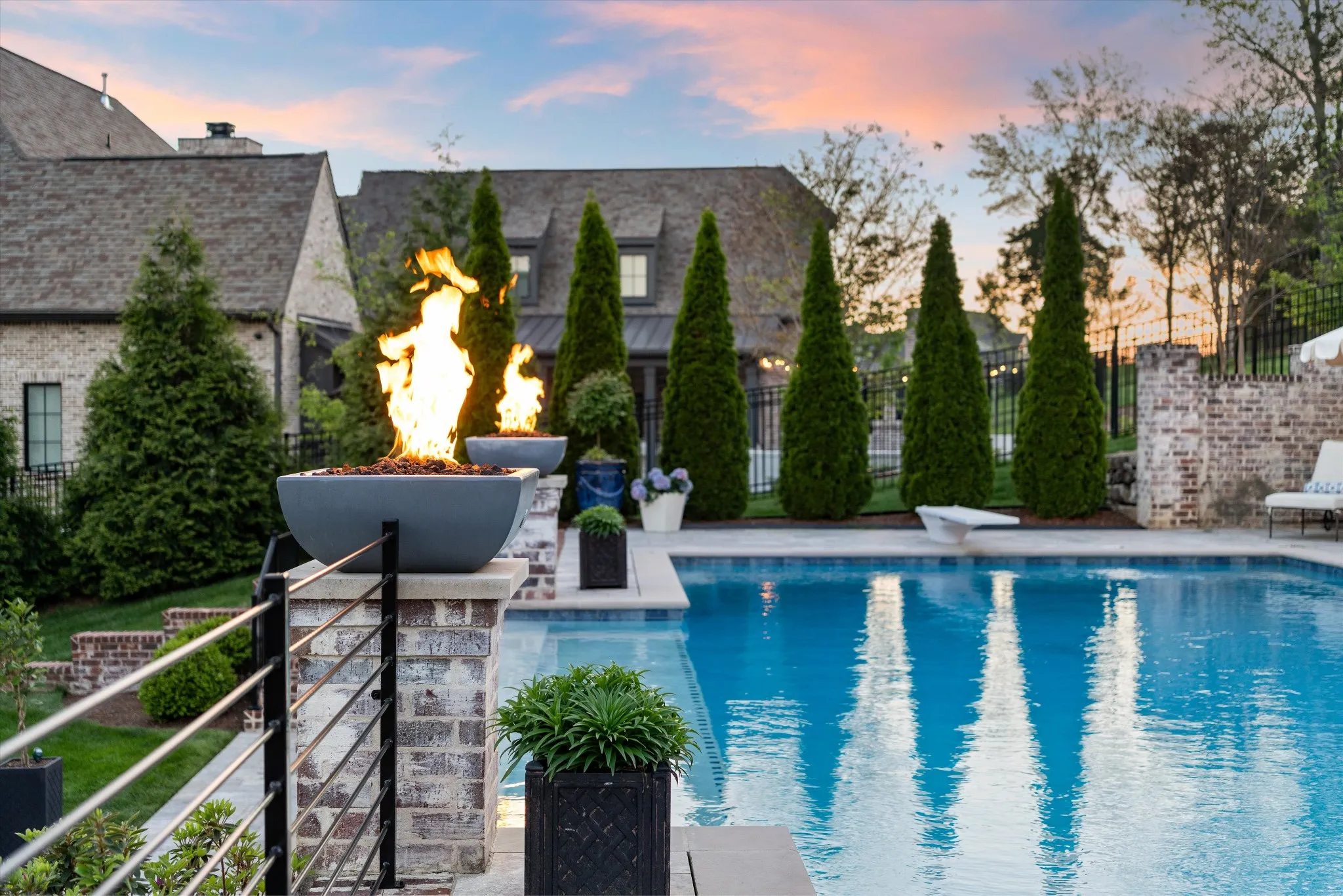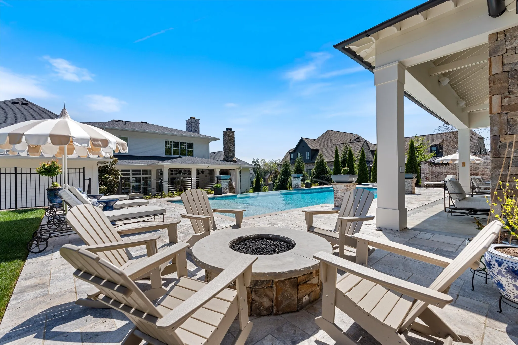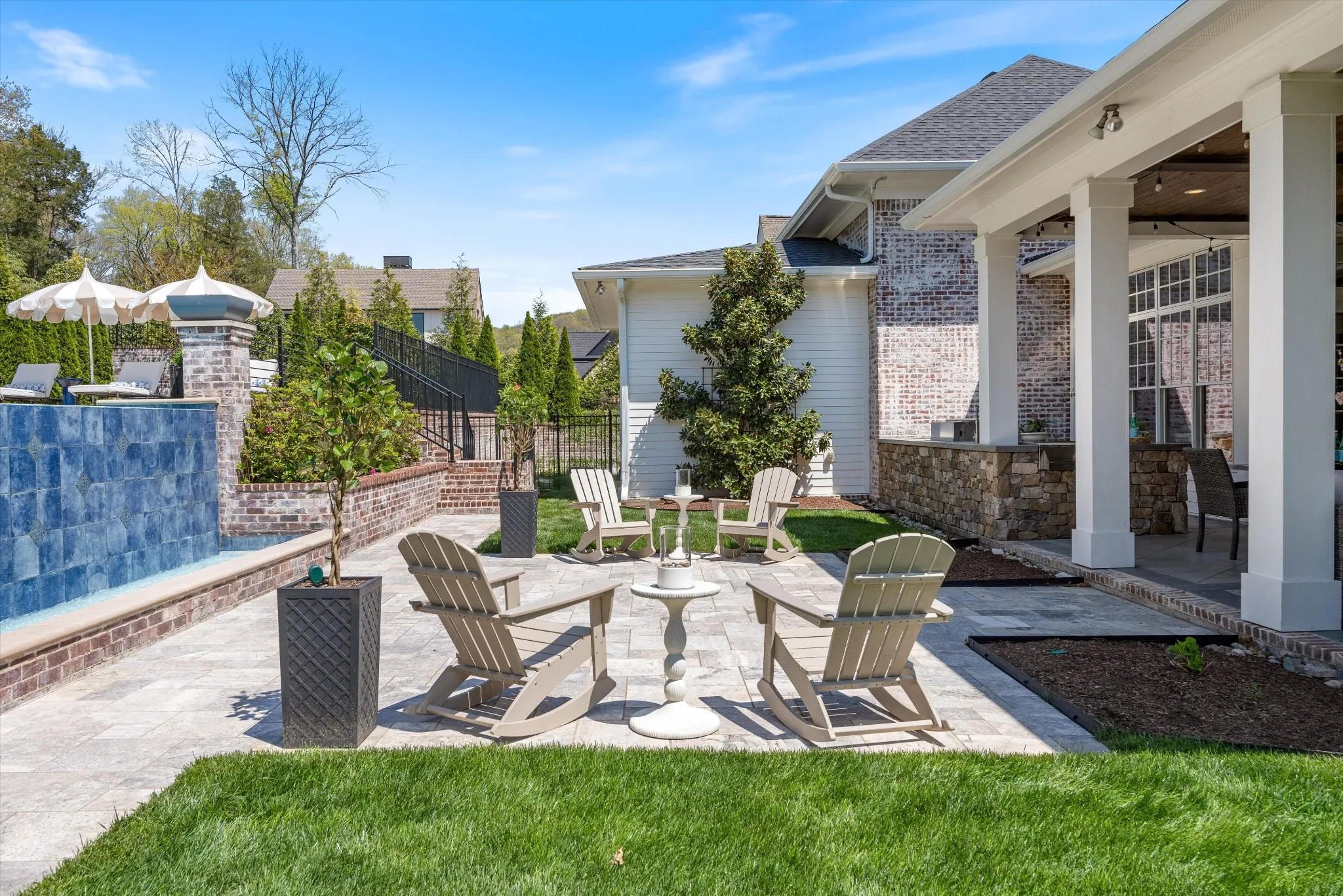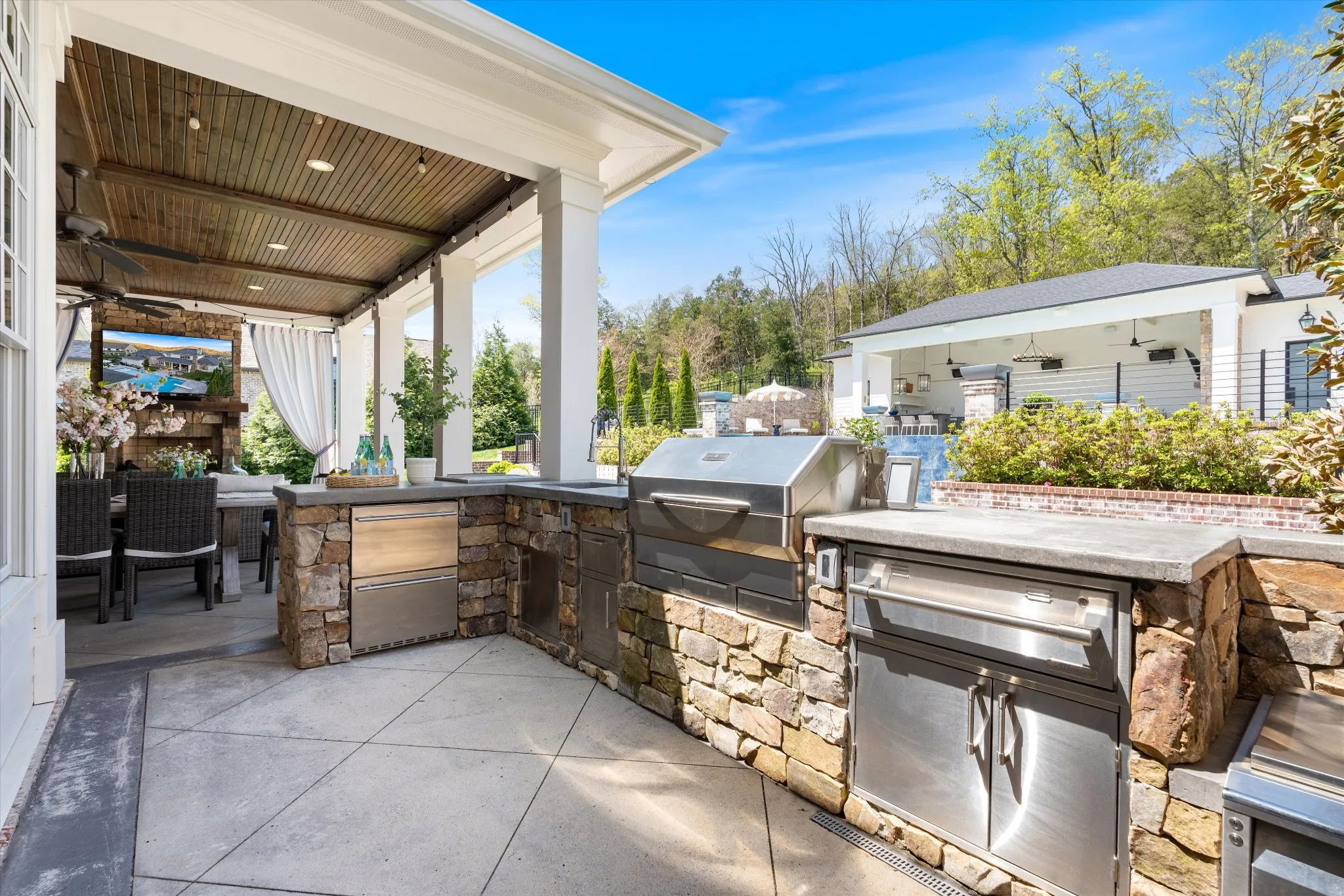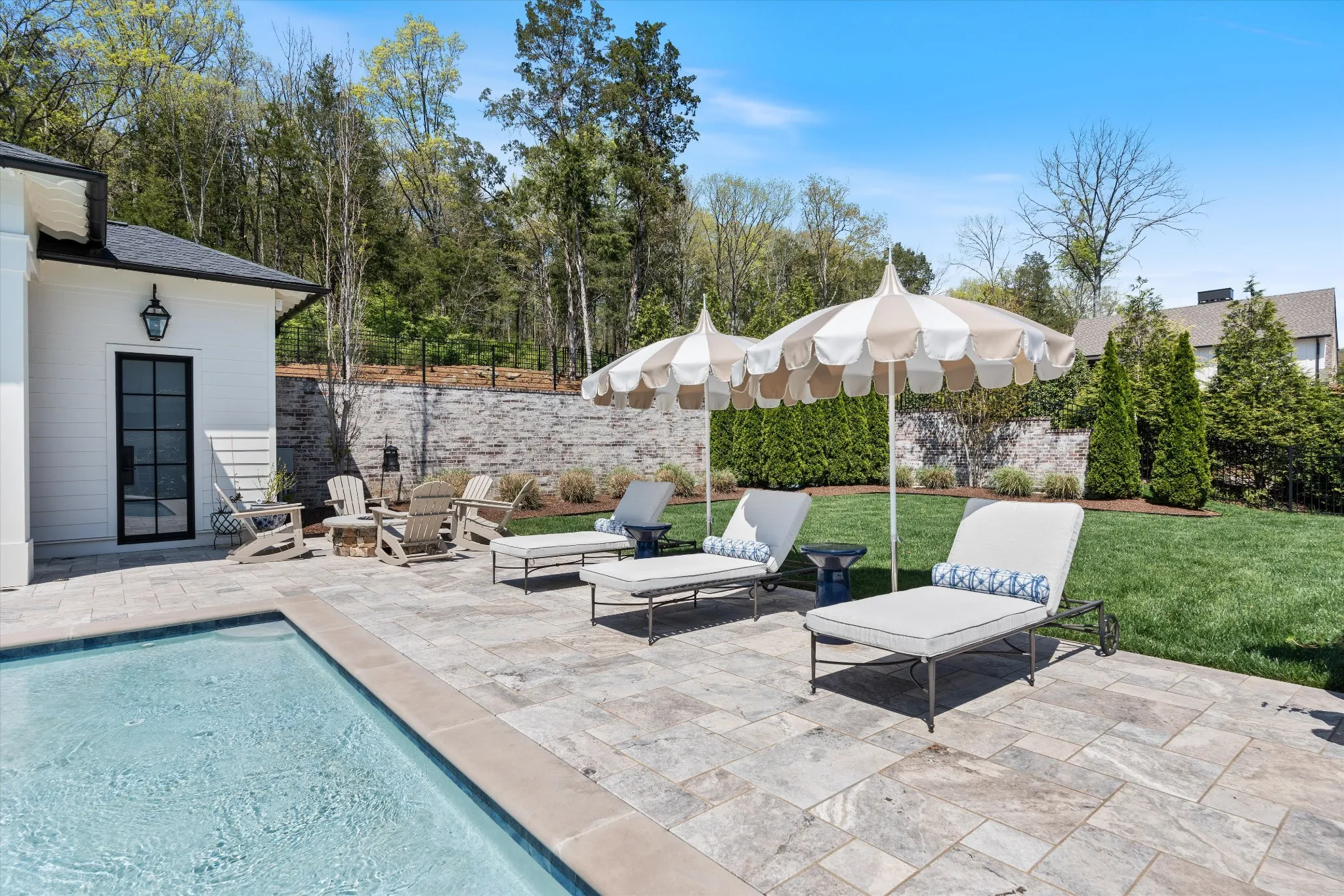 This stunning home is an entertainer’s DREAM built by Davis Properties with incredible views in one of Franklin’s most convenient locations! This home exudes luxury inside + out on a premier 2-acre tree-lined lot in the Preserve at Echo Estates, a luxury community tucked into a peaceful enclave of lush beauty, yet just minutes away from The Factory, Downtown Franklin, Harlinsdale Farm, BGA + Cool Springs. This well-maintained home includes an open floor plan complete with designer touches and high-end finishes throughout, as well as smart home technology including a Sonos surround system, full security system with cameras, and an Omnilogic system for the pool. No expense was spared in creating a true outdoor oasis equipped with a complete outdoor kitchen including a sink, refrigerator drawers, Memphis Grill with App, oversized gas burner, condiment/ice bin, and adjacent dining and seating areas with a fireplace and outdoor TV. Ushering you further outside is a courtyard seating area with a striking waterfall feature, professional landscaping, and dual stair access into a second level of masterful design. There, a gunite pool with an auto refill catch basin system, diving board, lounging ledge, and 4 gas fire bowls accompany a stunning cabana! This state-of-the-art cabana includes gas lanterns, iron doors, designer finishes, a half bath and changing room, as well as a designated laundry room in which both rooms are equipped with heating and A/C. In the outdoor portion of the cabana is another outdoor kitchen with 2 mini fridges, a sink, soapstone countertops, an ice machine, built-in kegerator, Brilliant smart home system with designated control panel, ample floor lighting, built-in gas heaters, WiFi, Sonos speakers, another fireplace and TV, in addition to another set of seating and dining spaces. The fully fenced backyard also includes a gas fire pit, multiple umbrella lounge locations, manicured lawn space, and an additional tier of open space with gate access!