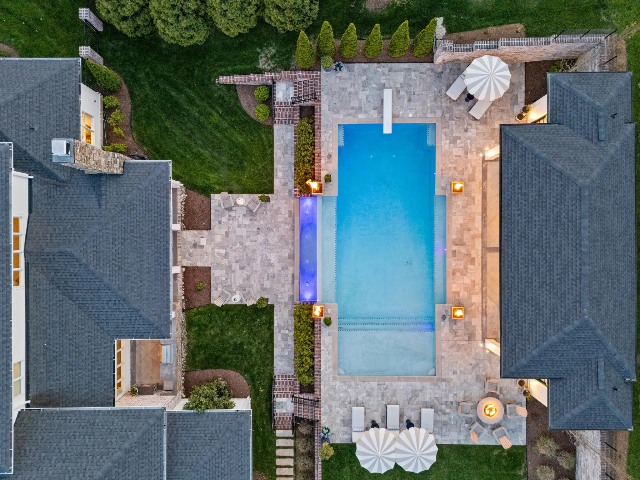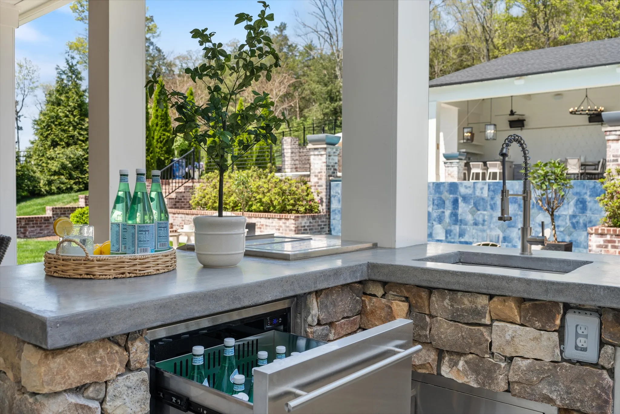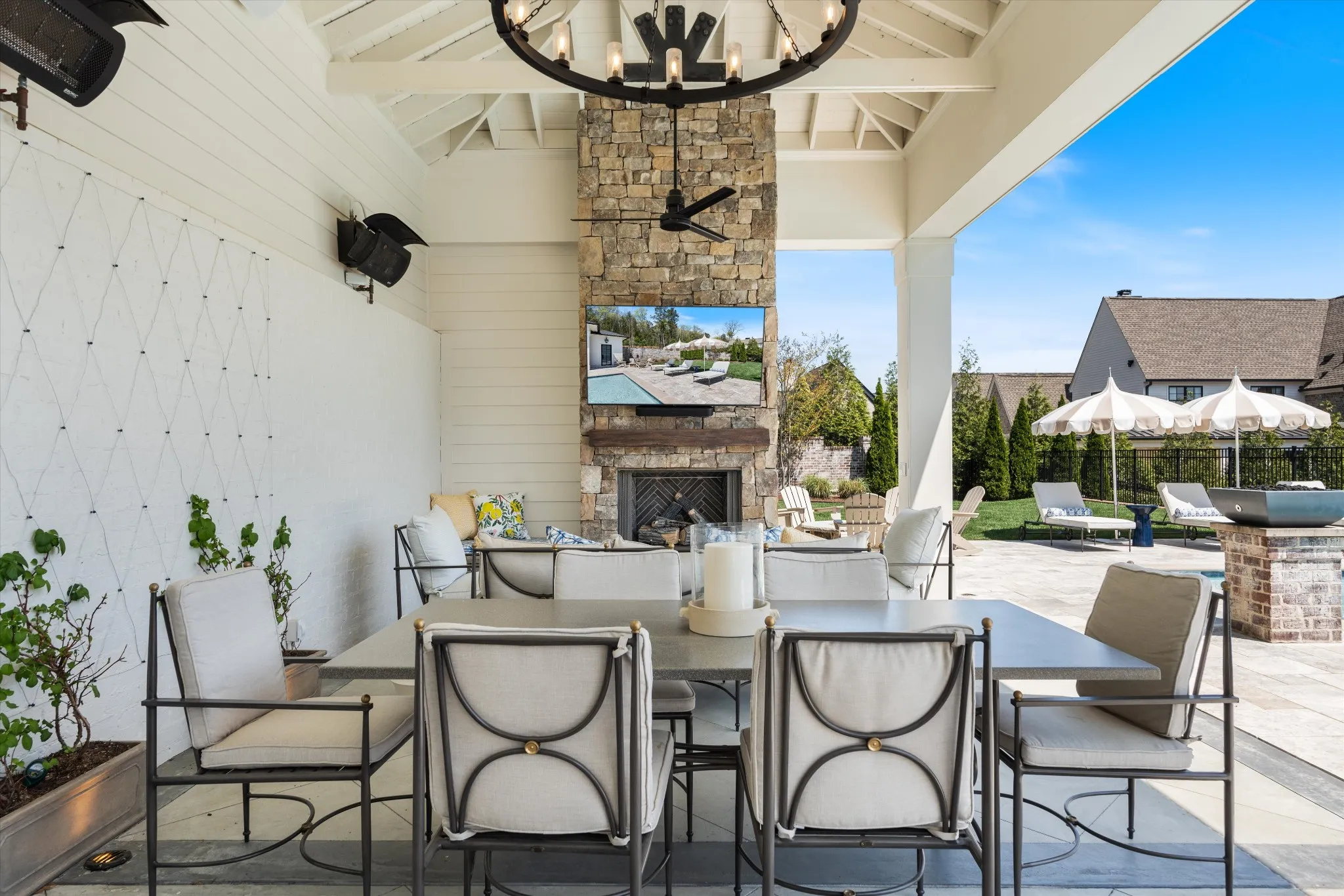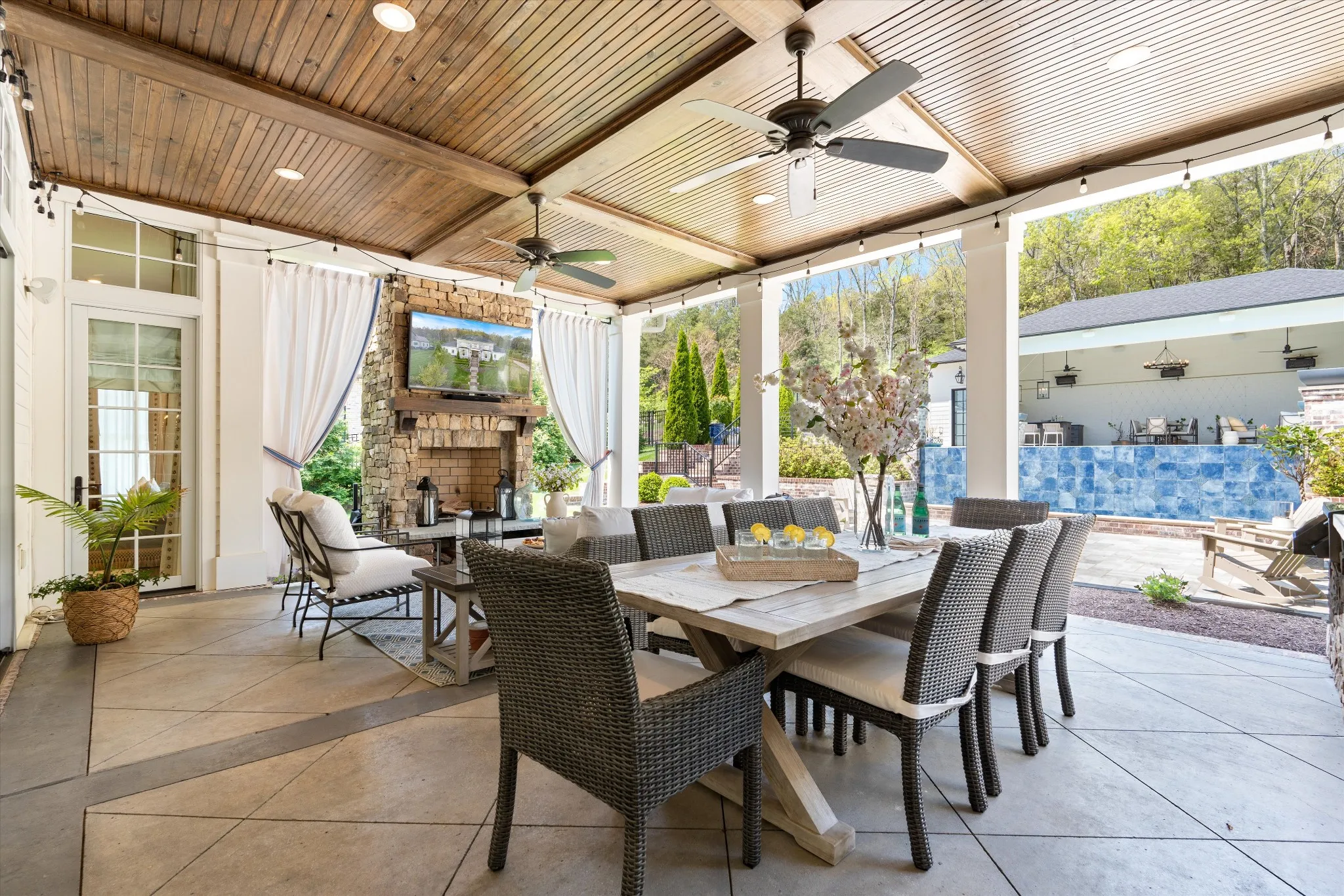 This stunning home is an entertainer’s DREAM built by Davis Properties with incredible views in one of Franklin’s most convenient locations! This home exudes luxury inside + out on a premier 2-acre tree-lined lot in the Preserve at Echo Estates, a luxury community tucked into a peaceful enclave of lush beauty, yet just minutes away from The Factory, Downtown Franklin, Harlinsdale Farm, BGA + Cool Springs. This well-maintained home includes an open floor plan complete with designer touches and high-end finishes throughout, as well as smart home technology including a Sonos surround system, full security system with cameras, and an Omnilogic system for the pool. No expense was spared in creating a true outdoor oasis equipped with a complete outdoor kitchen including a sink, refrigerator drawers, Memphis Grill with App, oversized gas burner, condiment/ice bin, and adjacent dining and seating areas with a fireplace and outdoor TV. Ushering you further outside is a courtyard seating area with a striking waterfall feature, professional landscaping, and dual stair access into a second level of masterful design. There, a gunite pool with an auto refill catch basin system, diving board, lounging ledge, and 4 gas fire bowls accompany a stunning cabana! This state-of-the-art cabana includes gas lanterns, iron doors, designer finishes, a half bath and changing room, as well as a designated laundry room in which both rooms are equipped with heating and A/C. In the outdoor portion of the cabana is another outdoor kitchen with 2 mini fridges, a sink, soapstone countertops, an ice machine, built-in kegerator, Brilliant smart home system with designated control panel, ample floor lighting, built-in gas heaters, WiFi, Sonos speakers, another fireplace and TV, in addition to another set of seating and dining spaces. The fully fenced backyard also includes a gas fire pit, multiple umbrella lounge locations, manicured lawn space, and an additional tier of open space with gate access!