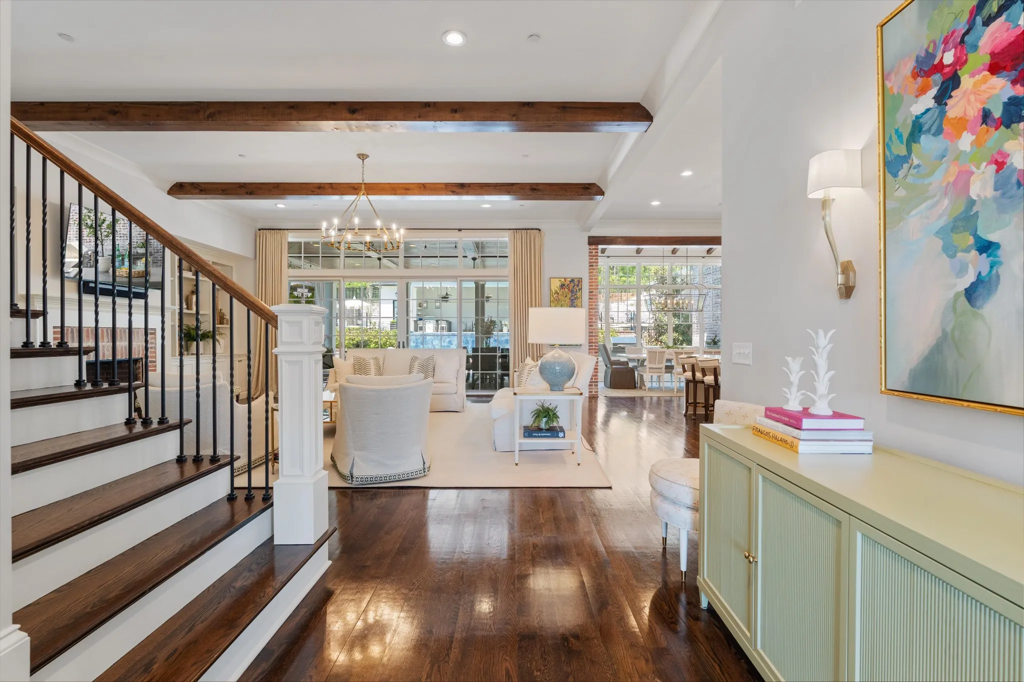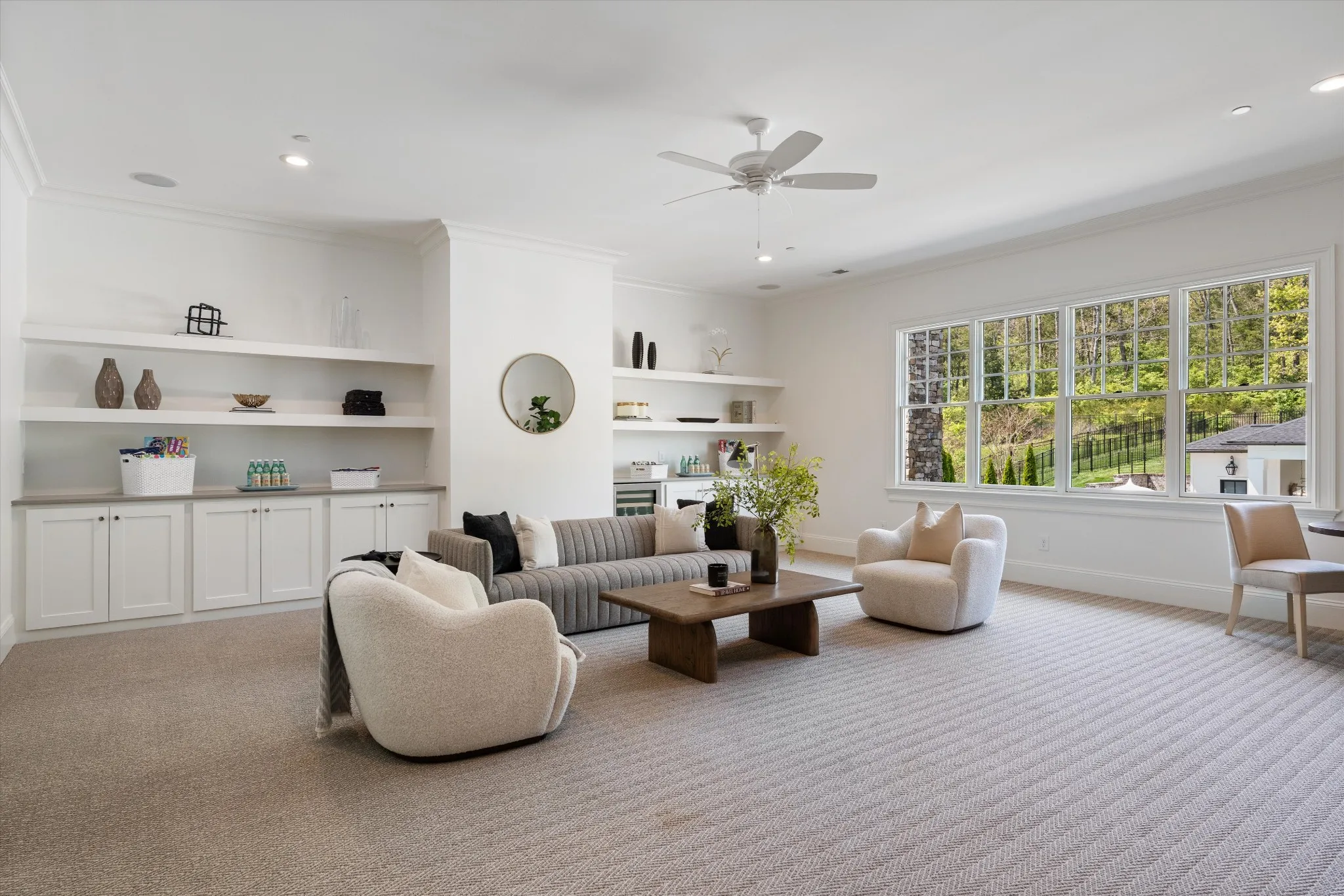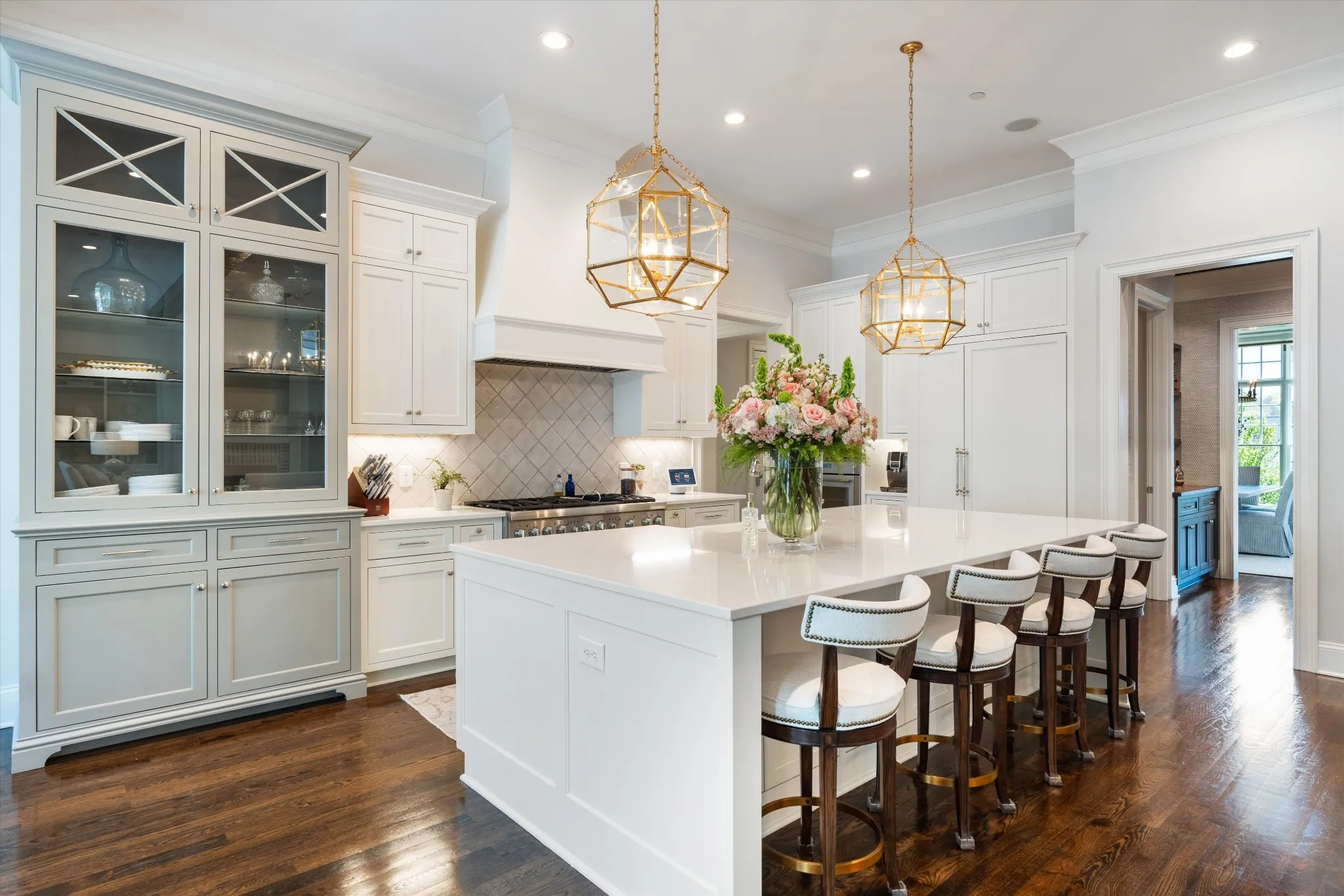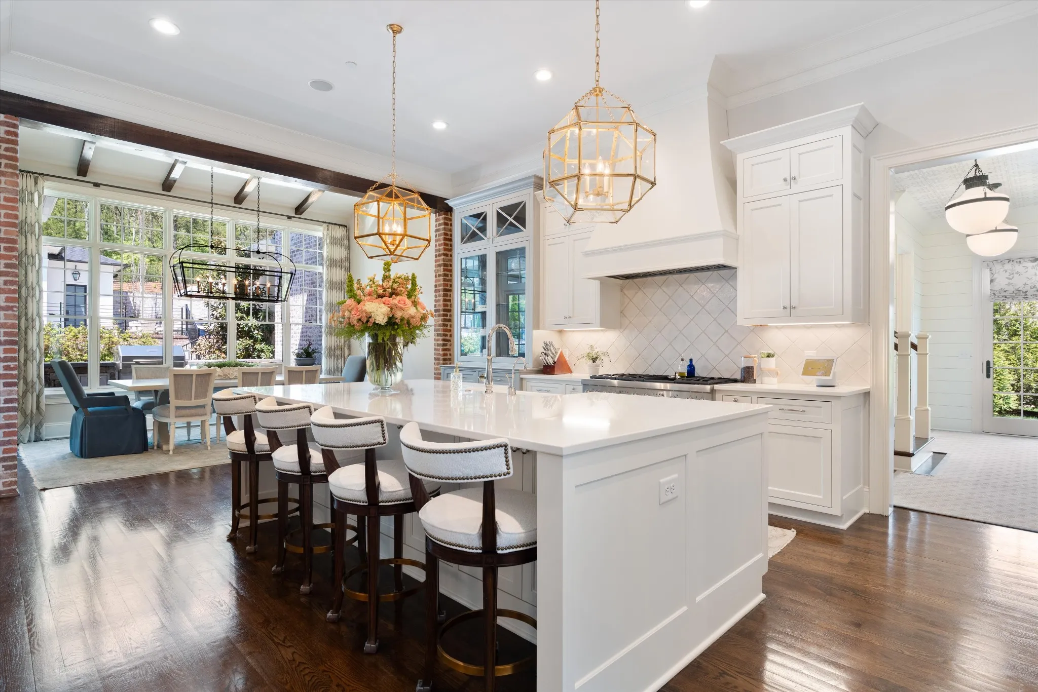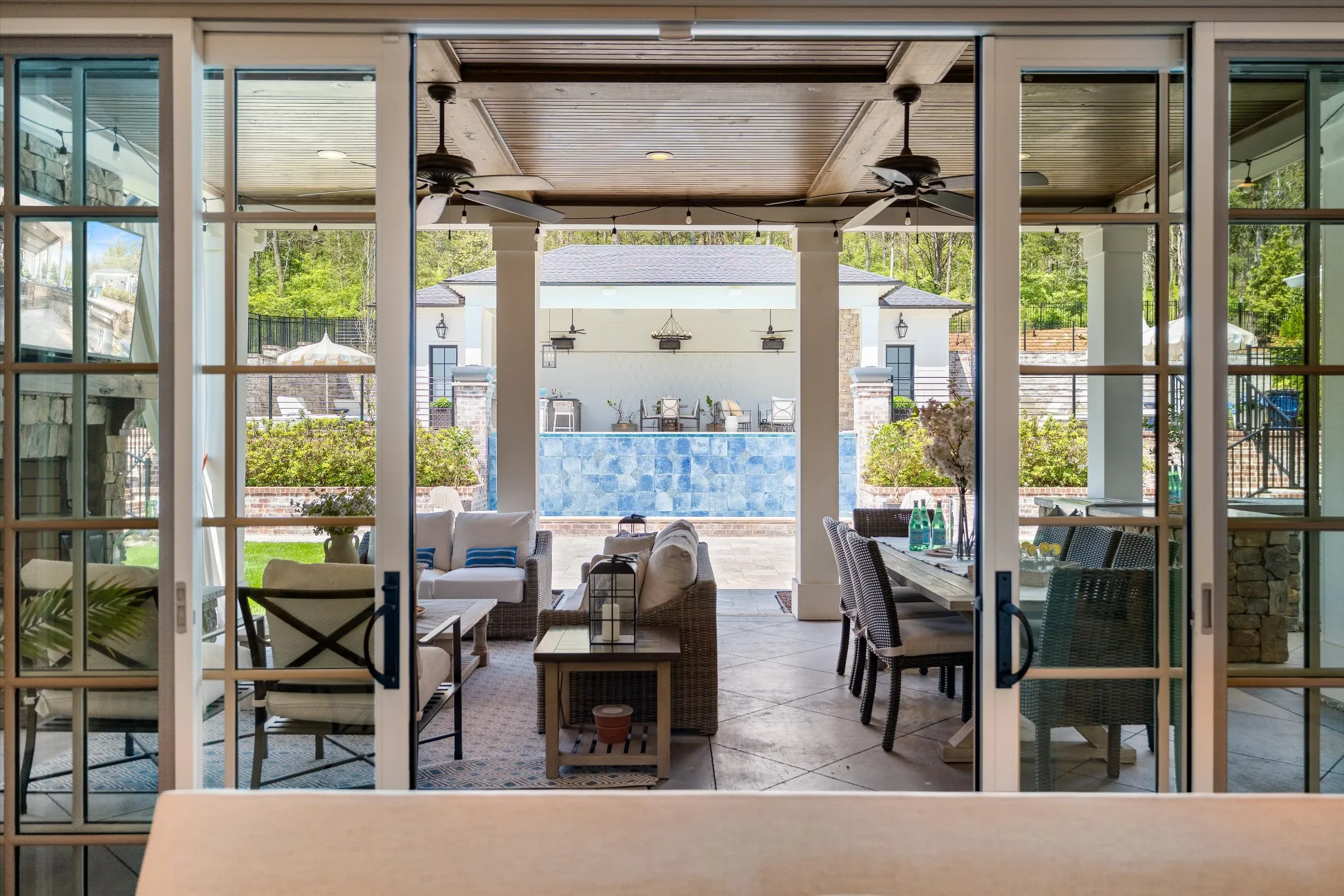 This stunning home is an entertainer’s DREAM built by Davis Properties with incredible views in one of Franklin’s most convenient locations! This home exudes luxury inside + out on a premier 2-acre tree-lined lot in the Preserve at Echo Estates, a luxury community tucked into a peaceful enclave of lush beauty, yet just minutes away from The Factory, Downtown Franklin, Harlinsdale Farm, BGA + Cool Springs. This well-maintained home includes an open floor plan complete with designer touches and high-end finishes throughout, as well as smart home technology including a Sonos surround system, full security system with cameras, and an Omnilogic system for the pool. No expense was spared in creating a true outdoor oasis equipped with a complete outdoor kitchen including a sink, refrigerator drawers, Memphis Grill with App, oversized gas burner, condiment/ice bin, and adjacent dining and seating areas with a fireplace and outdoor TV. Ushering you further outside is a courtyard seating area with a striking waterfall feature, professional landscaping, and dual stair access into a second level of masterful design. There, a gunite pool with an auto refill catch basin system, diving board, lounging ledge, and 4 gas fire bowls accompany a stunning cabana! This state-of-the-art cabana includes gas lanterns, iron doors, designer finishes, a half bath and changing room, as well as a designated laundry room in which both rooms are equipped with heating and A/C. In the outdoor portion of the cabana is another outdoor kitchen with 2 mini fridges, a sink, soapstone countertops, an ice machine, built-in kegerator, Brilliant smart home system with designated control panel, ample floor lighting, built-in gas heaters, WiFi, Sonos speakers, another fireplace and TV, in addition to another set of seating and dining spaces. The fully fenced backyard also includes a gas fire pit, multiple umbrella lounge locations, manicured lawn space, and an additional tier of open space with gate access!