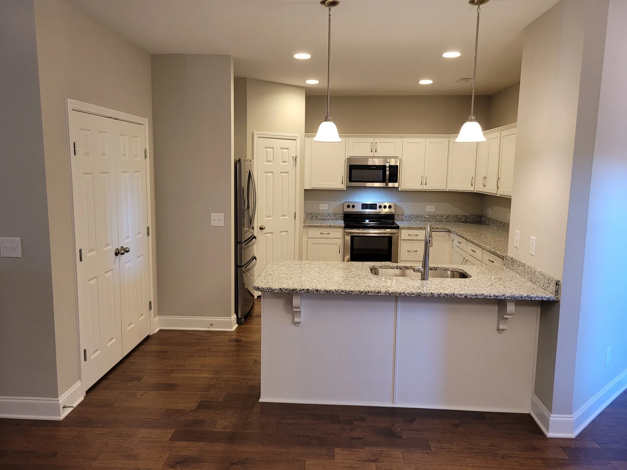 Stunning 3-Bedroom, 3-Bath Home End Unit w/ Modern Comforts. Welcome to this beautiful home featuring a thoughtful layout w/ 2 Bedrooms on the main level & a Private 3rd Bedroom upstairs. Downstairs Primary Suite features Double Sinks & a Frameless Shower in Primary Bath. The spacious Kitchen boasts Granite Countertops, White Cabinets, Stainless Steel Appliances and opens seamlessly to the Living & Dining areas – perfect for entertaining. Enjoy the abundant natural light in the bright Flex or Sunroom, ideal for a Home Office. Hardwood Floors flow throughout the main living spaces, adding warmth & elegance. Additional highlights include a Private Courtyard, 2-Car Garage w/ Utility Sink, Washer/Dryer, Custom Blinds/Draperies & Outdoor Security Camera. Not only does this home combine style, comfort & functionality in one perfect package, it also has direct street access in the front as well as the back (huge benefit), which is rare in this neighborhood. See Link below for Extra Benefit regarding Lender Credit. More Professional Pictures coming soon after tenant vacates.