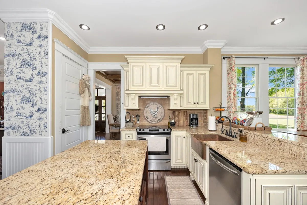 +"PublicRemarks": "This beautiful 4BR/4BA colonial estate in rural limestone county could be your dream come true! Gorgeous columns on the front porch and 2nd story balcony, and a custom rock wall are the touches that really set this home apart. Primary suite is on the first floor along with an office, foyer, kitchen, breakfast room and formal dining room. The second floor has two full baths and four additional bedrooms. Outside features a patio, 3-car detached garage, concrete parking area, attached 3-bay shed for equipment, inground pool and two repurposed silos serving as a pool equipment storage and a 1/2 bath. Large pavilion with concrete flooring and a custom log cabin help make this property special."