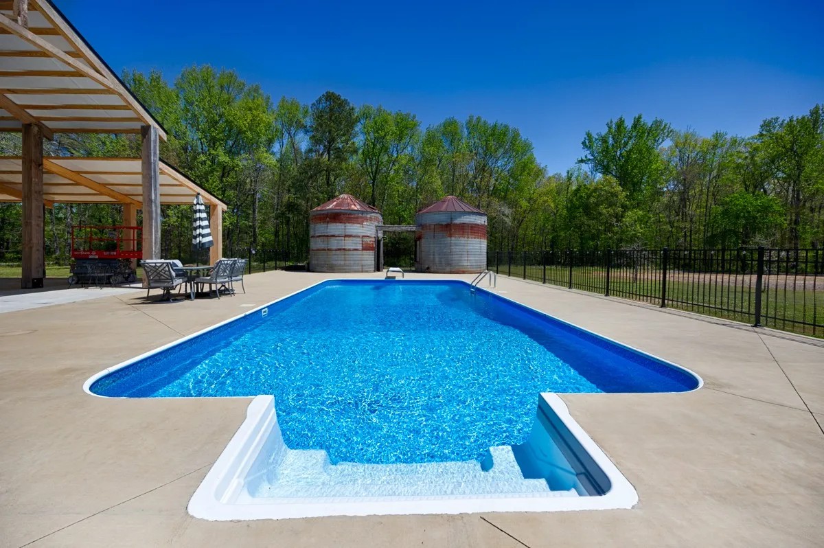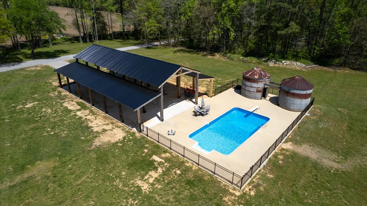 "LongDescription" => "16x32 inground pool with wrought iron fencing, two silos - one has 1/2 bath and the other is for pool equipment storage, large pavilion provides ample shade during hot summer days"