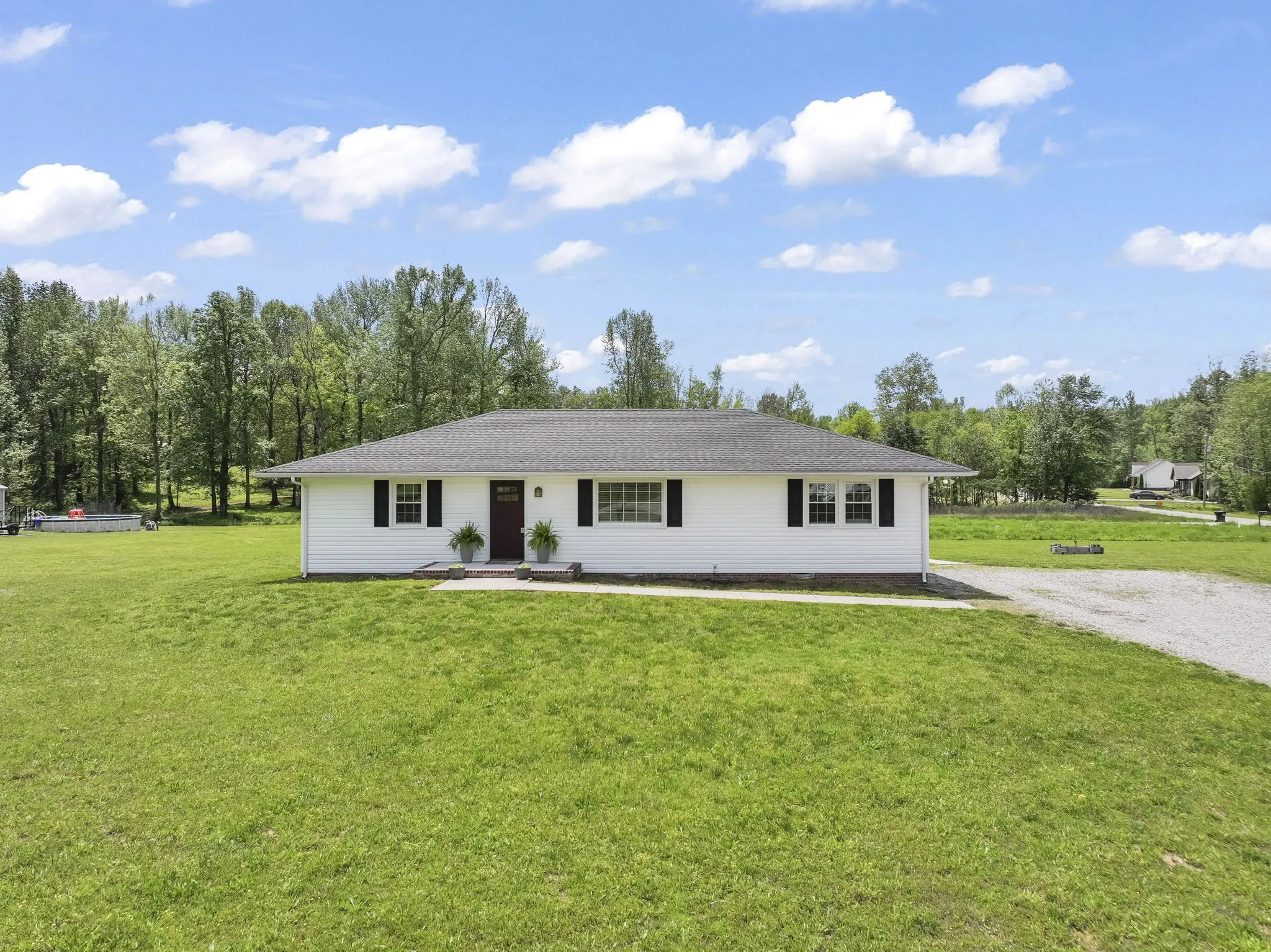 Like New & Move-In Ready! Built in 2021, this beautifully updated home offers over 1,600 sqft of living space on a peaceful 1.28-acre lot. Nestled in a quiet neighborhood. Interior features include white shaker-style cabinets, granite countertops, laminate flooring, tile in wet areas, and carpet in the bedrooms.