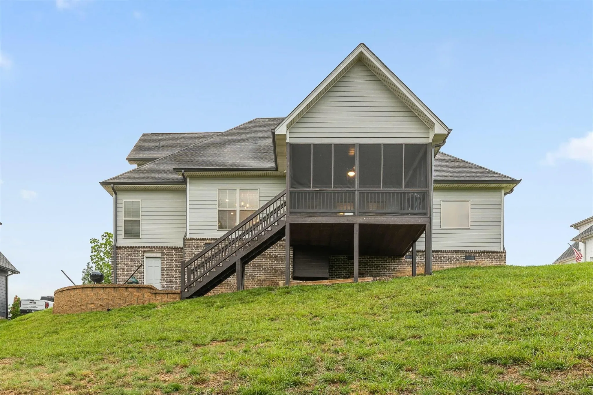 Relax on the screened-in back porch and take in the private, wooded backdrop — no close neighbors behind you, just peaceful views and the sound of birds all around. Each home in Riverbay sits on a larger lot, offering generous space and privacy between neighbors. Positioned just before the cul-de-sac, this home enjoys minimal traffic and a quiet, tucked-away setting.