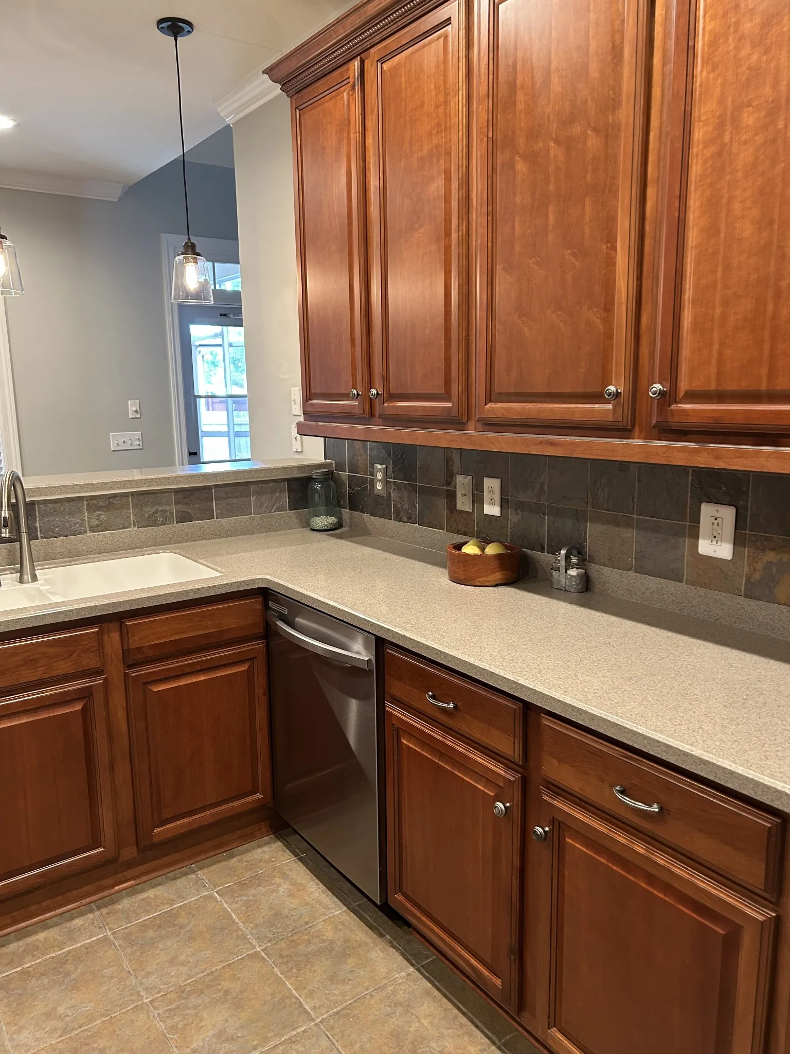 Beautiful 3BR/3BA home with bonus room (optional 4th bedroom) in a highly desirable community with pool, playground, and pavilion! Spacious 2,550 sq ft (per plans) with hardwood and tile throughout main level, and carpeted bonus room upstairs. Split floor plan with private master suite featuring a huge walk-in closet. Kitchen offers cherry cabinets, solid surface counters, stainless appliances (newer stove, fridge, microwave, brand new dishwasher). Formal dining with wainscoting and breakfast nook with beadboard. Vaulted ceilings, crown molding, blinds throughout, and natural gas fireplace (logs 1 yr old). Enjoy outdoor living with a screened brick patio (tongue-and-groove ceiling), extended concrete patio with pavers/firepit, and fenced backyard (fence 2 yrs old). Oversized garage with epoxy floor, insulated door, and new opener. Roof (8 yrs old), new water heater (4 mos old). Large utility room with tornado shelter under stairs. Washer/dryer remain! don’t miss this one!