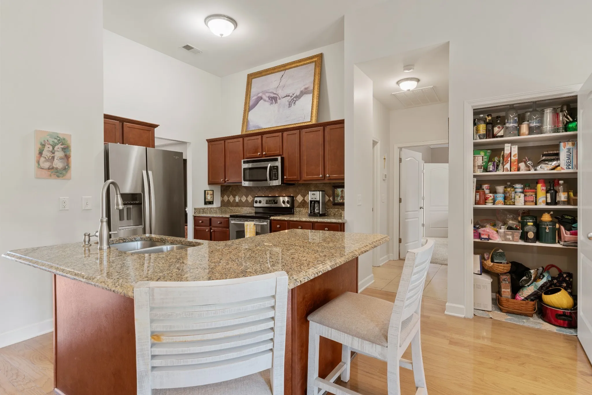 Interior Features Open Floorplan, Walk-In Closet(s), Primary Bedroom Main Floor, Pantry, Entrance Foyer, Bookcases, Ceiling Fan(s)