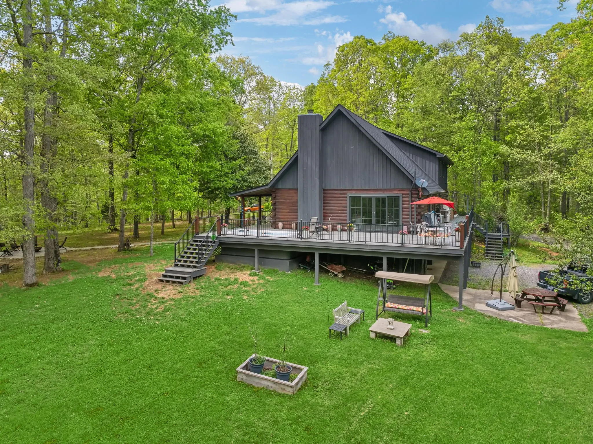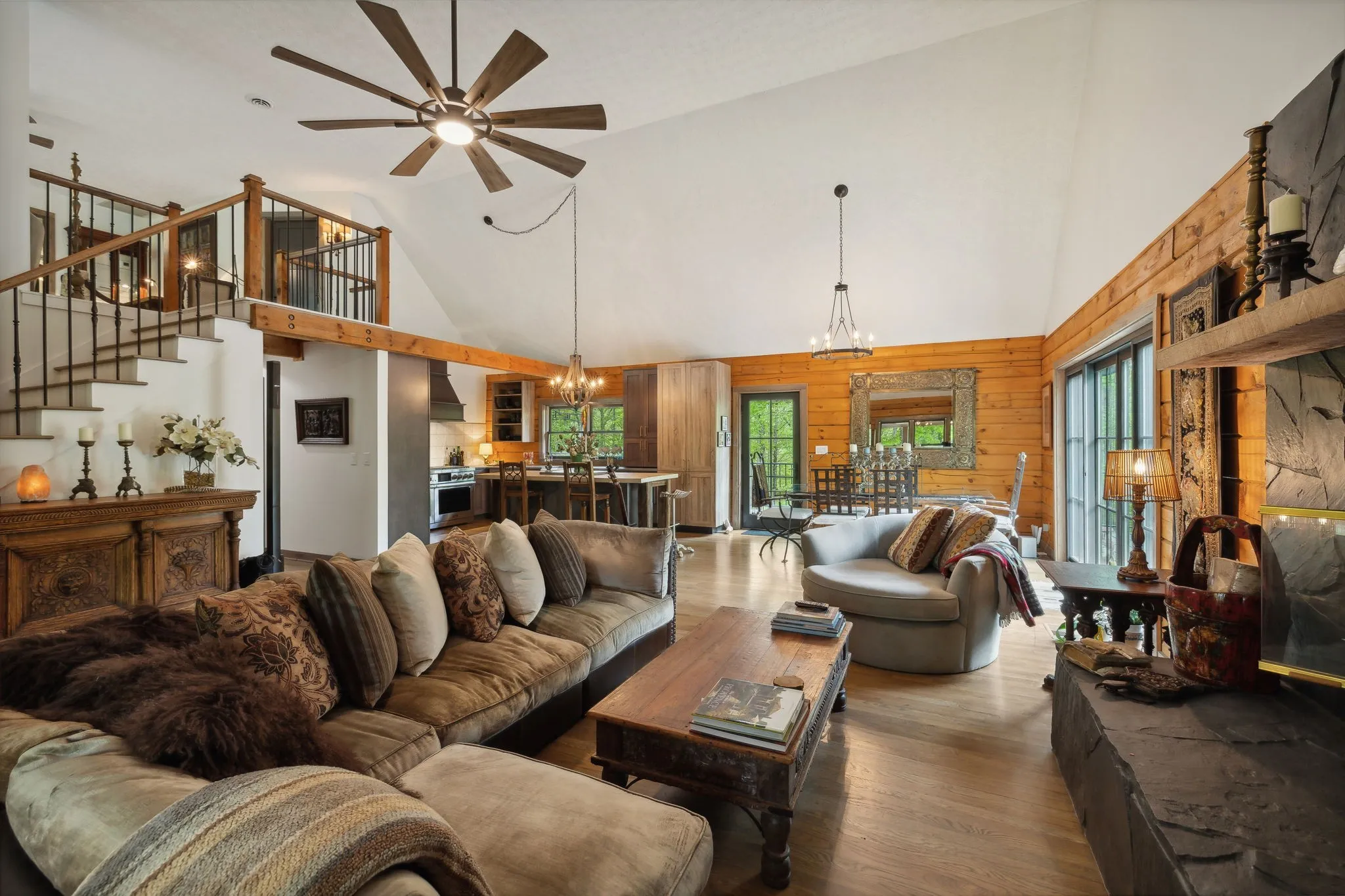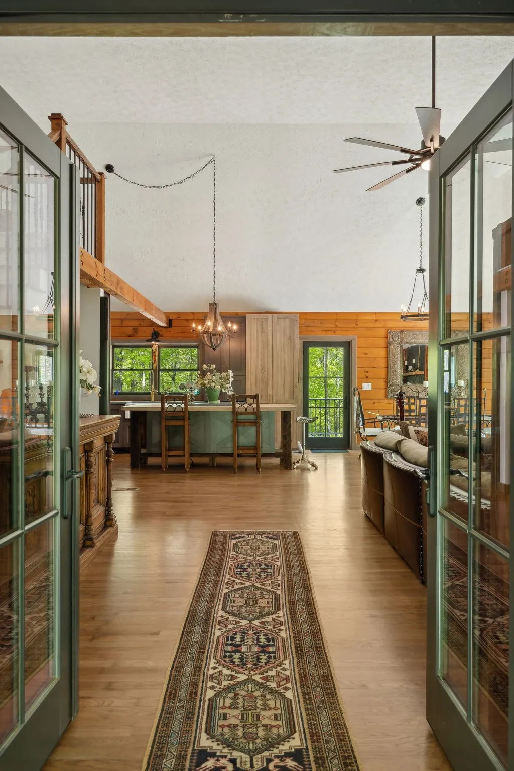 +"PublicRemarks": "Countryside serenity meets luxury living in this immaculately restored and fully renovated Leiper’s Fork log home. Tucked into a coveted rural location in Middle Tennessee that rarely sees homes like this one hit the market, enjoy curated details and modern amenities built into a flowing masterpiece design that retains classic aesthetics and hand-selected vintage accents like salvaged barn wood and farmhouse fixtures. The main level features an open floor plan for shared moments with guests, plus bedrooms and full baths. Also enjoy a luxury chef’s kitchen with all-new Dacor appliances, custom maple and oak cabinetry, quartz countertops, a cozy fireplace, oversized windows, and full-lite sliding doors that wash the home’s interior in warm natural light. The upper level has inviting private accommodations with a work-from-home office & open flex space. The lower level boasts a fully finished suite with private entry, a full kitchen and bath, and a game room, perfect for weekend guest stays or separate living quarters. With primary suites and en suite baths on both the main and upper levels, options abound for the owners to choose their private sanctuary. Septic permitted for 3 bedrooms -- home includes additional flexible spaces that could be used as an office, bonus, or guest room. Outdoors, the almost 6-acre parcel at the end of a private drive on a shaded knoll features peaceful, wooded terrain and views of a 3-acre aquamarine lake, all of which can be enjoyed from the home’s outdoor living amenities like the welcoming fire pit, 60ft of covered porch space, sun-kissed backyard deck, and relaxing spa pool. At 5 minutes to Leiper’s Fork, 25 minutes to downtown Franklin, 45 minutes to downtown Nashville, and 50 minutes to BNA, your perfect country life awaits."