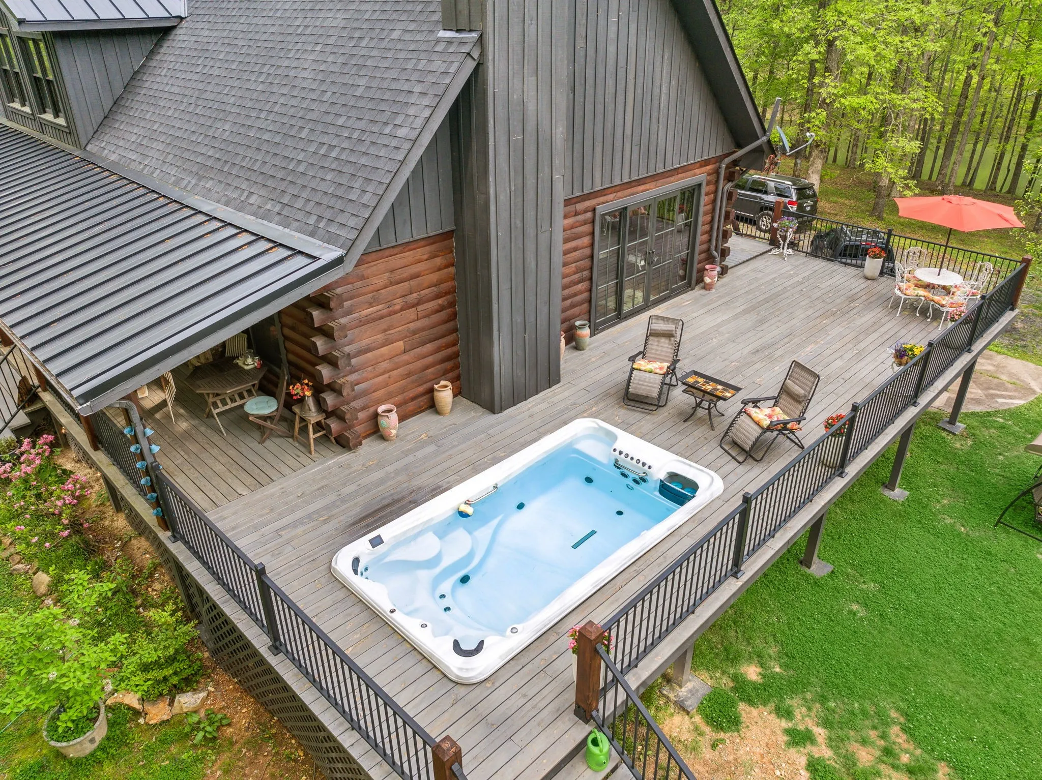 "LongDescription" => "An instant favorite, the glorious spa pool was carefully built into a new deck with all-new flooring, stairs, & aluminum alloy railing. The pool is a custom Tidal-fit 14ft swim spa with dual jet system, the perfect exercise & relaxation combo."