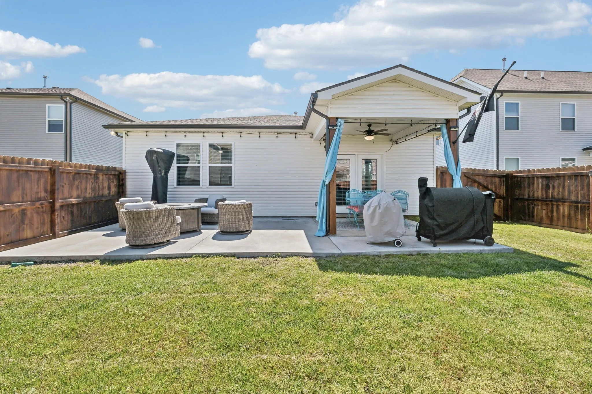 The heart of the home is a spacious kitchen with an oversized island perfect for meal prep, entertaining, or casual dinners. Retreat to the private backyard oasis with an extended patio and privacy fence—ideal for hosting guests or winding down in the evenings.