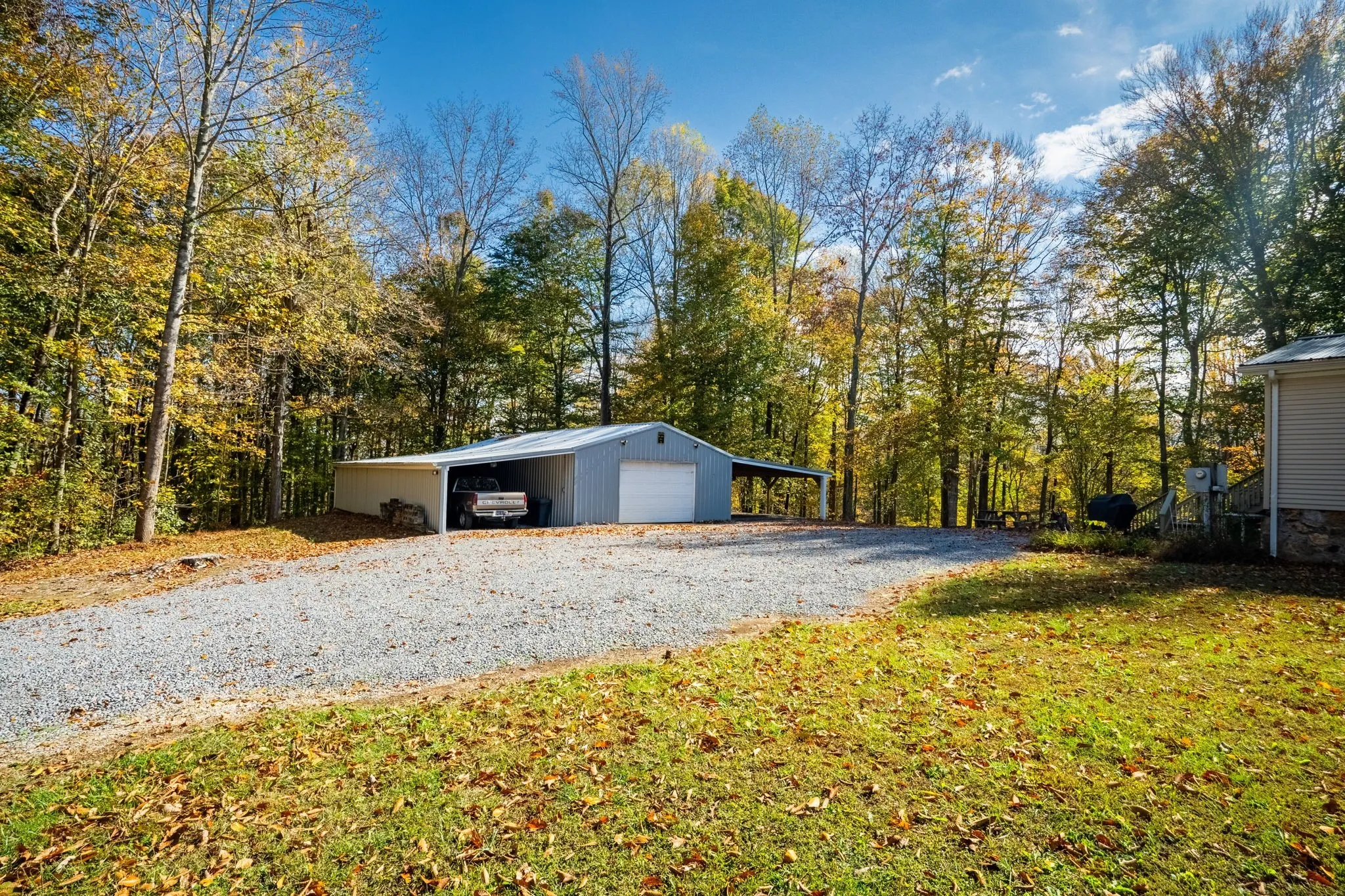 This charming home is set on a 10.02-acre wooded paradise, perfect for nature lovers and outdoor enthusiasts. The property features scenic trails, ideal for peaceful walks or ATV rides. A 60×48 covered structure includes a 24×48 enclosed shop flanked by two covered spaces, providing versatile options for parking, storage, or future projects. Step outside to enjoy the new 12×12 deck or utilize the 8×10 storage shed for extra convenience. Recent upgrades add convenience and peace of mind, with a new metal roof, updated main water line, newer HVAC unit, and updated flooring. Although the septic permit is for two bedrooms, the additional room could potentially be used for a third bedroom. All appliances convey, including a refrigerator and stand-up freezer. This tranquil retreat is a hunter’s haven or a nature lover’s dream, offering a serene, private setting to enjoy year-round. This one is truly a must-see!