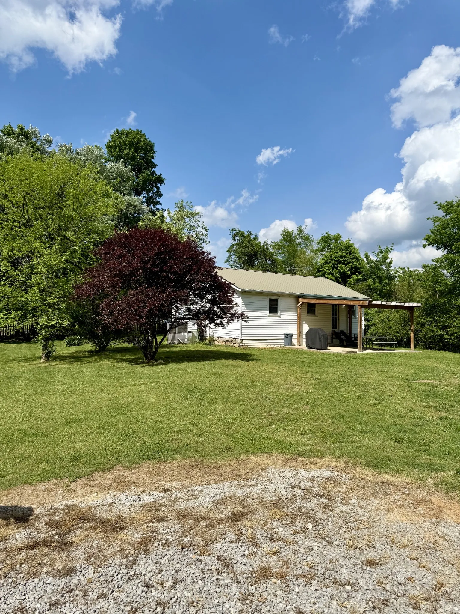 Country Charmer with modern updates on a fully fenced peaceful acre near the Duck River, your search for serene farm living is over. Step onto the welcoming covered front porch with a swing, or relax on the newly added covered back patio, perfect for enjoying your private backyard. The metal roof offers long-lasting durability, while the inside stays comfortable with a new HVAC system and ductwork installed in 2023—backed by a transferable warranty. Additional recent upgrades include a tankless water heater (2024) for endless hot showers, a fully remodeled bathroom with new plumbing, and updated interior doors. The land has beautiful mature shade trees and plenty of open yard for whatever hobby you want to start. This amazing home will not be on the market long, bring us your best offer!