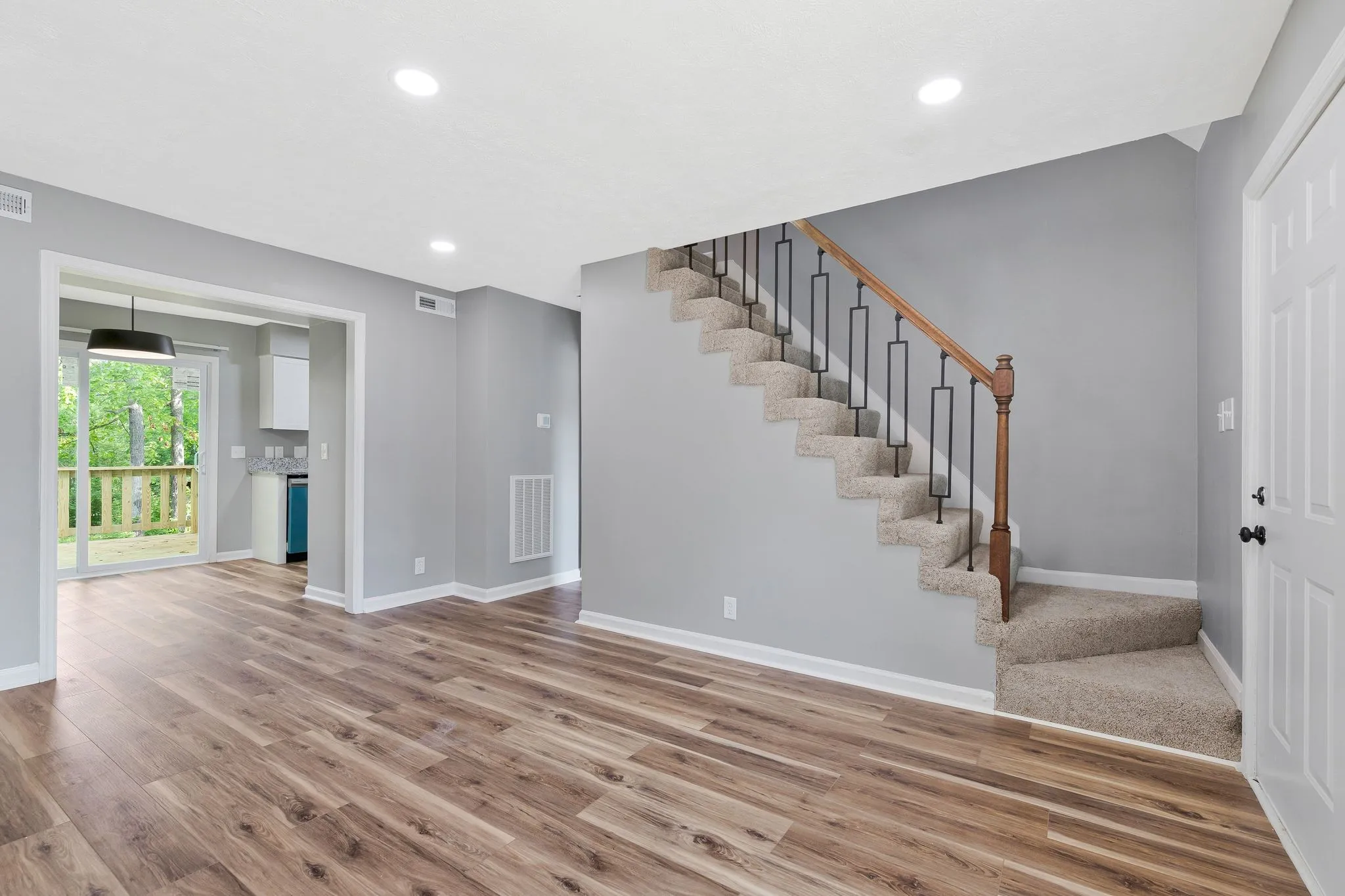 Affordable Opportunity Offers 3 Bedrooms, 2.5 Baths With Its Master Bedroom down. Beautifully Renovated With New HVAC, New Windows, New Slide Door, New Deck, Remodeled Kitchen With Beautiful Kitchen Cabinets With Its New Granite Counter-tops and Stainless Steel Appliances, New LVP flooring in the Living Room and Wet Areas, New Carpet, Fresh paint, New Light and Plumbing Fixtures, New Hardware, and More.