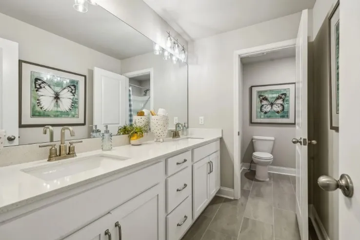 Enjoy 5.99% (PLUS a 2/1 buydown or $10K in closing costs) with use of our preferred lender Trailblazer Mortgage. *Terms and conditions apply. Contact listing agent for details. This designer MODEL HOME with 3 car garage is situated on a large usable homesite. The inviting five-bedroom Savoy plan offers an expansive living room off the central, gourmet kitchen. Here, you’ll find designer-curated finishes like accent walls and trim-work throughout, a sprawling quartz-topped island, 42″ upper cabinets, a roomy walk-in pantry, stainless appliances including a double oven, and refrigerator. From the adjacent, sunlit breakfast area access a rear covered porch with extended patio for outdoor dining with a scenic view. Off the foyer, a study with glass French doors offers space to work or play. Tucked away off the living room, the main-level guest bedroom is a private retreat for visitors. The remaining bedrooms are located on the second floor, including the spacious primary suite with a tray ceiling, oversized walk-in closet, and spa-like bathroom with a free standing soaking tub plus a walk-in tiled shower with bench.