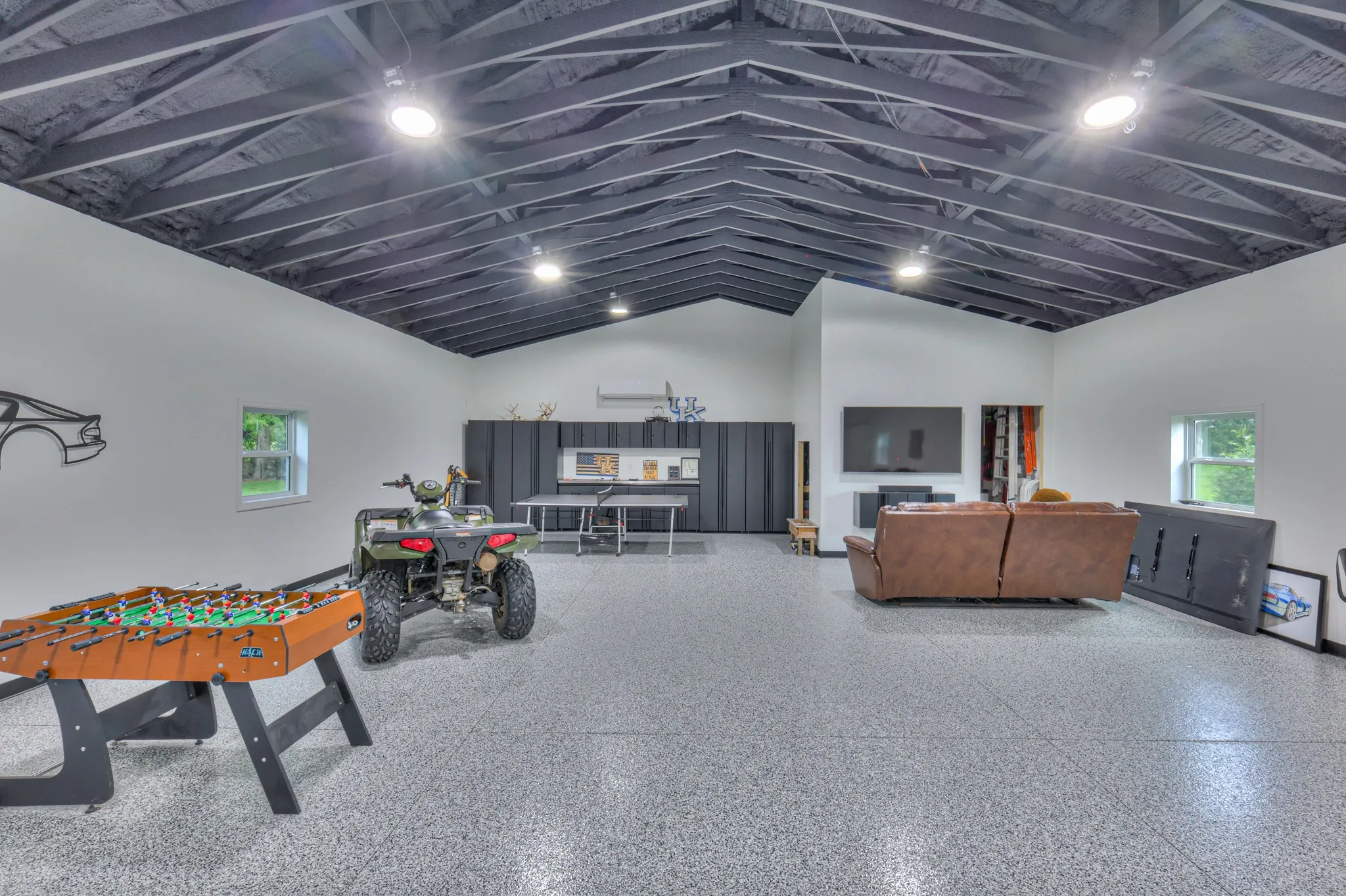 A 30×50 insulated detached shop offers climate control with a brand-new 3-ton Trane unit and stunning Granite Garage Floors, also featured in the attached garage.