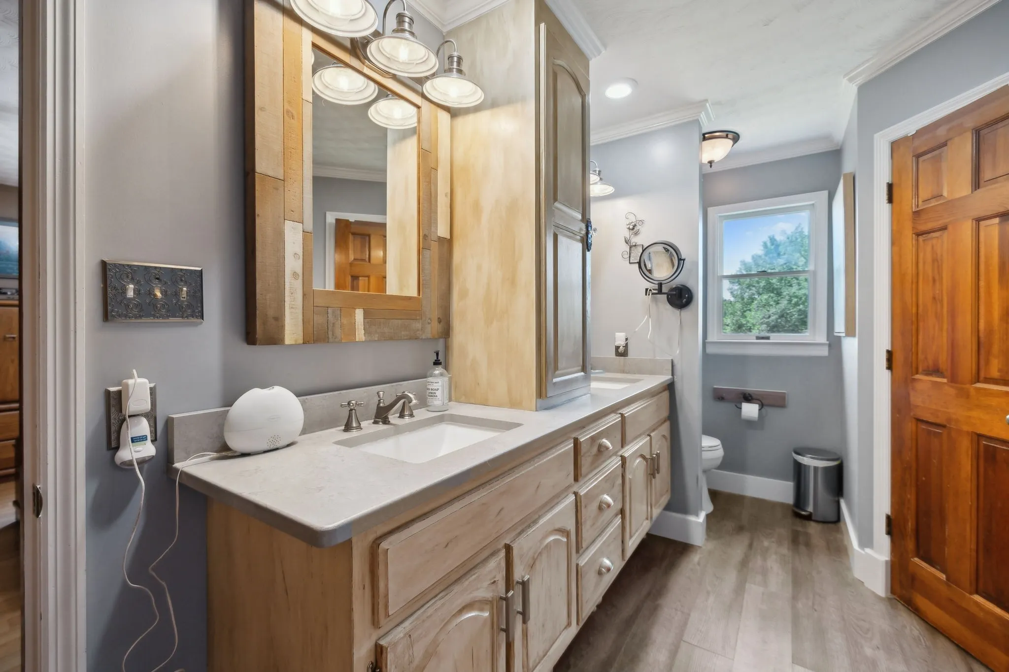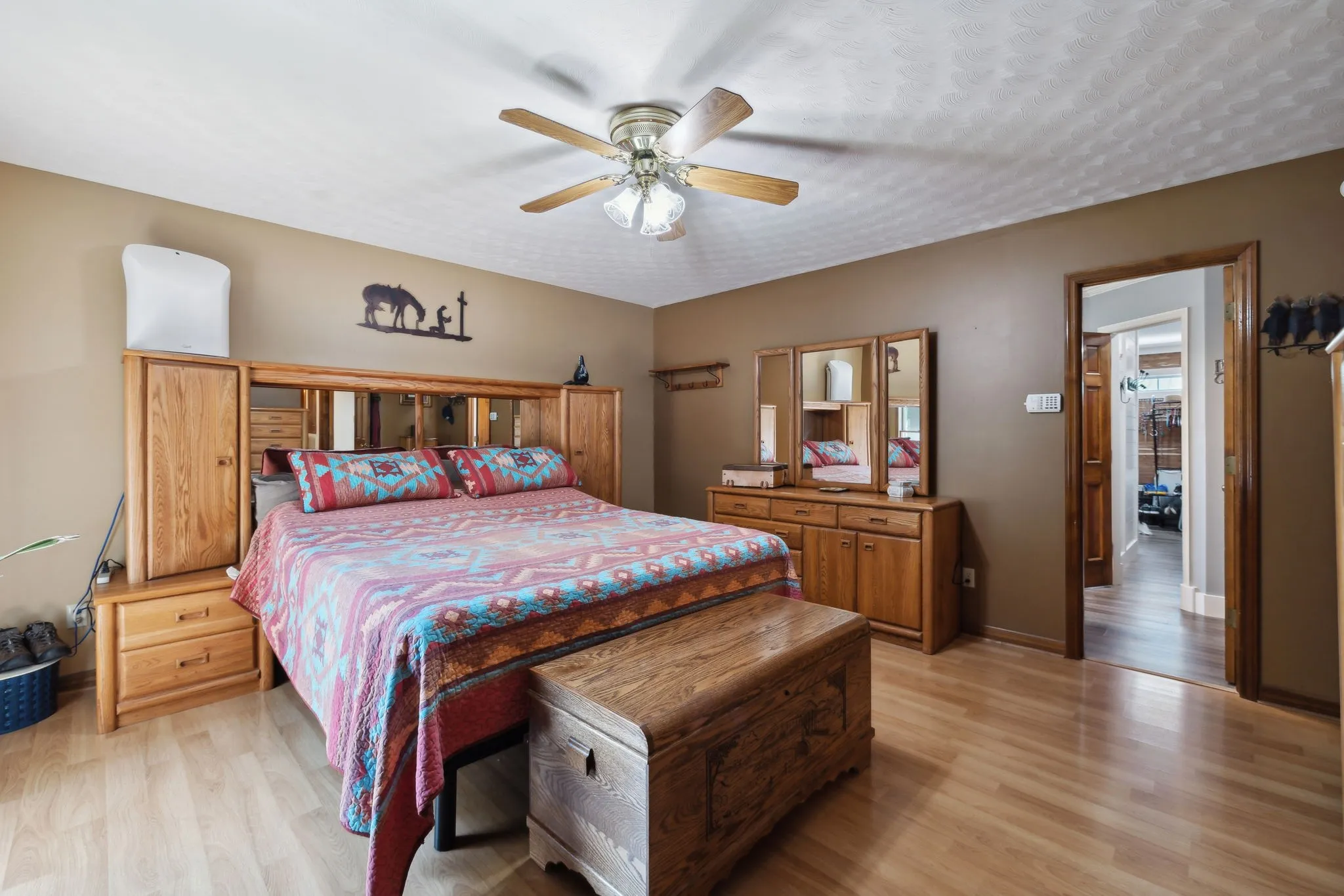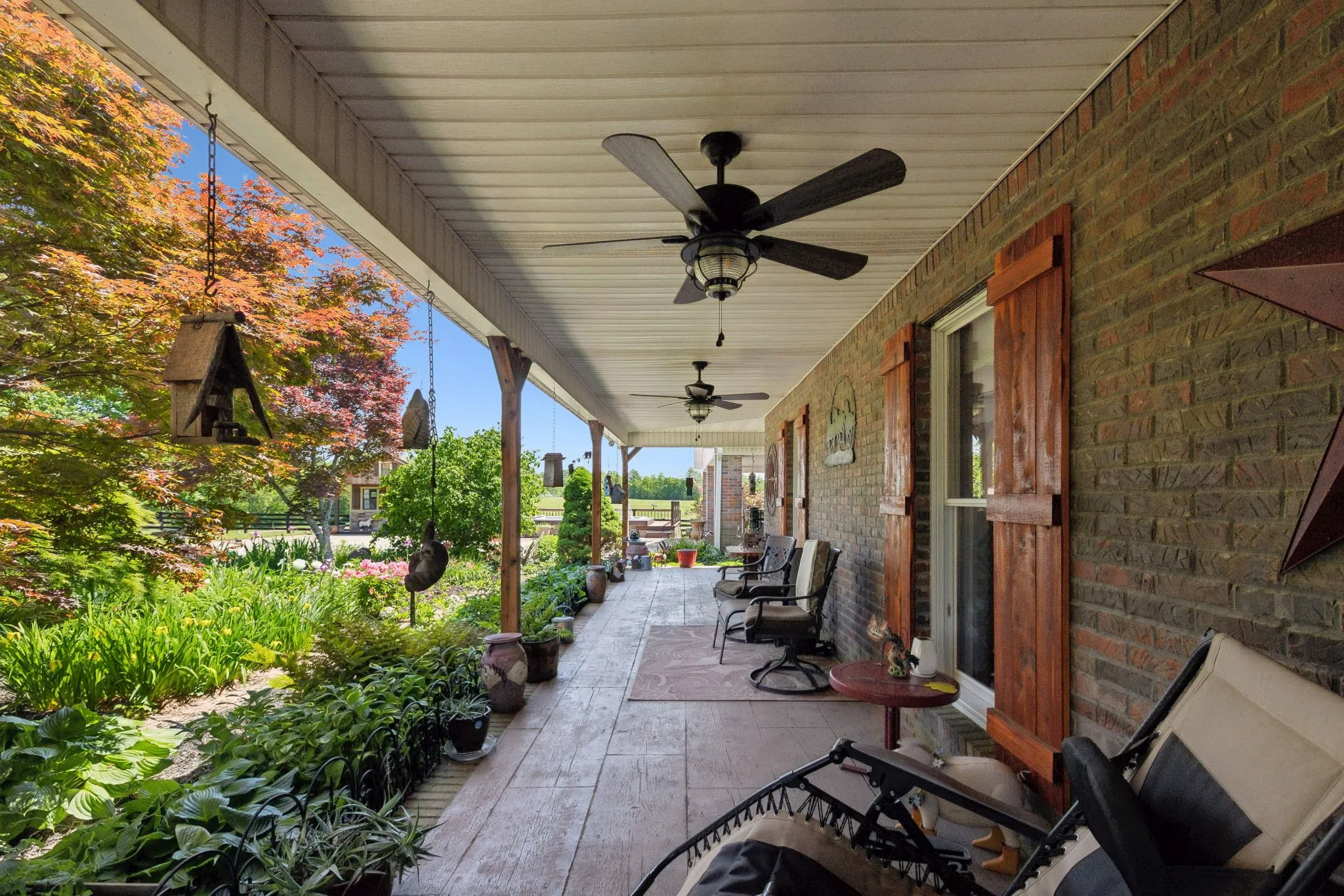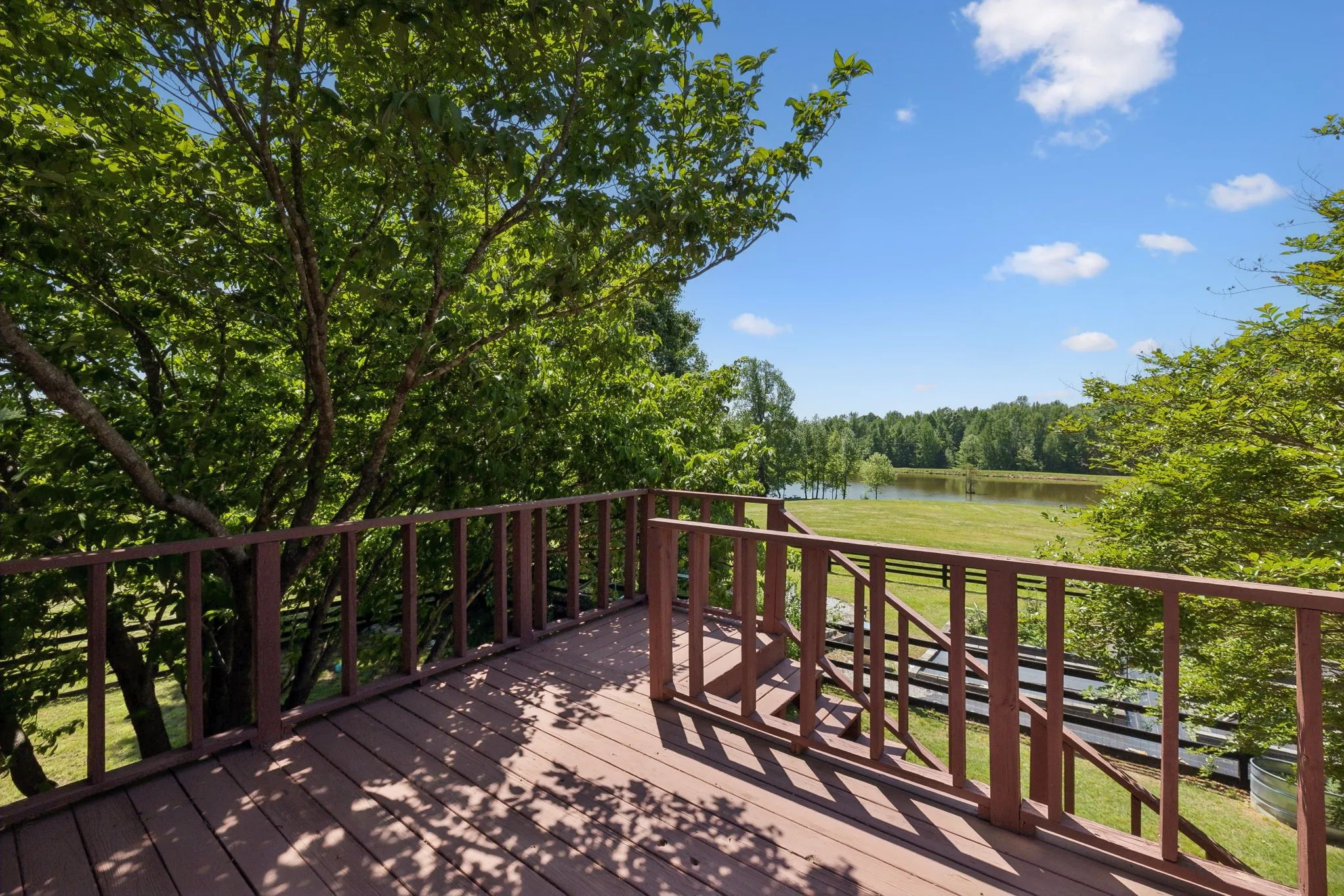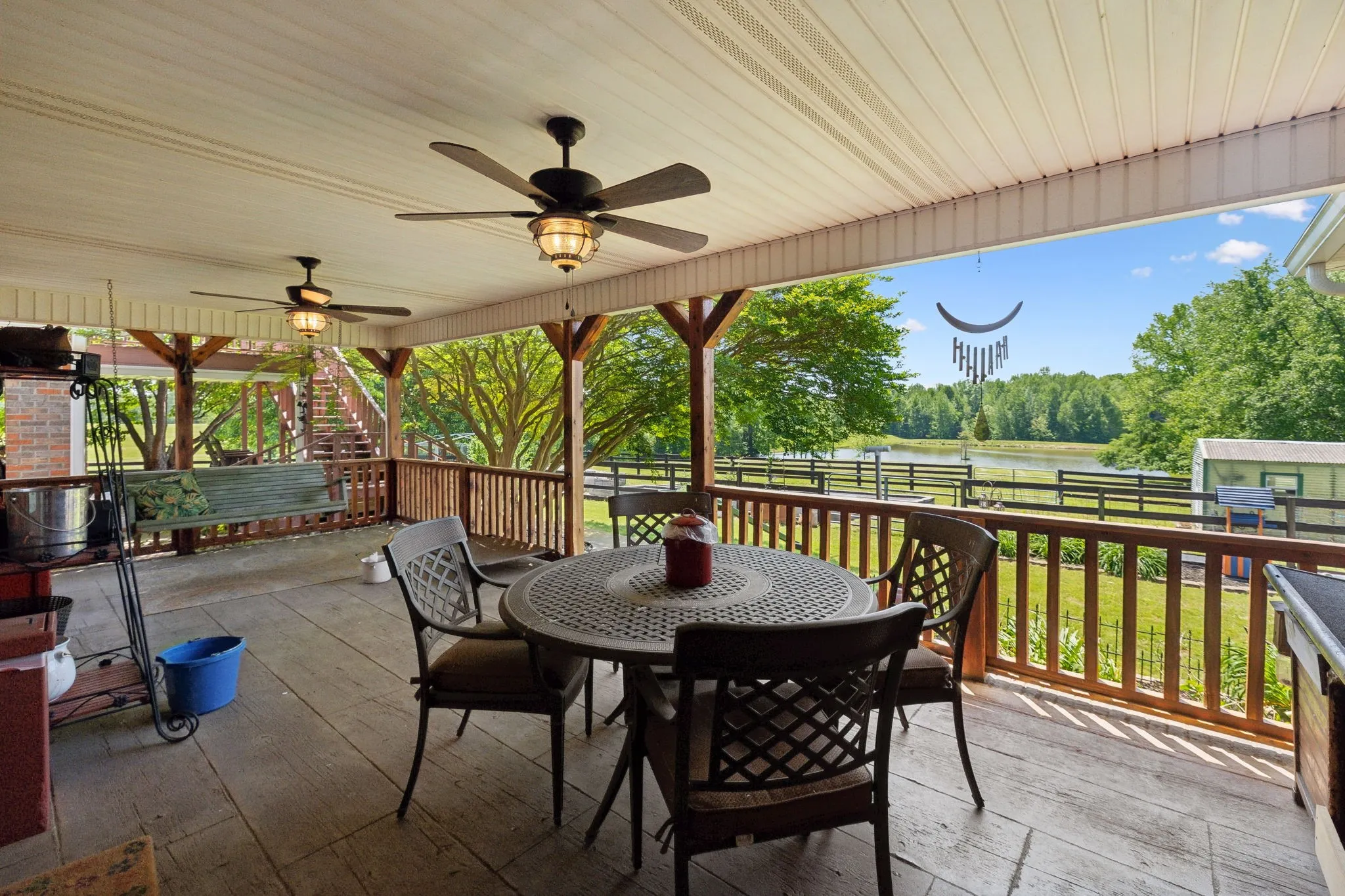 Outdoors, a breathtaking 2.5-acre stocked pond enhances the tranquil setting and offers fishing or nature-watching just steps from your door.\n
