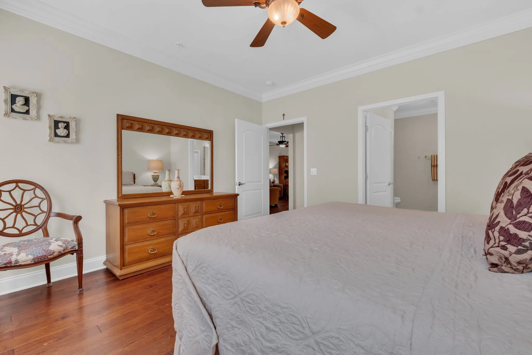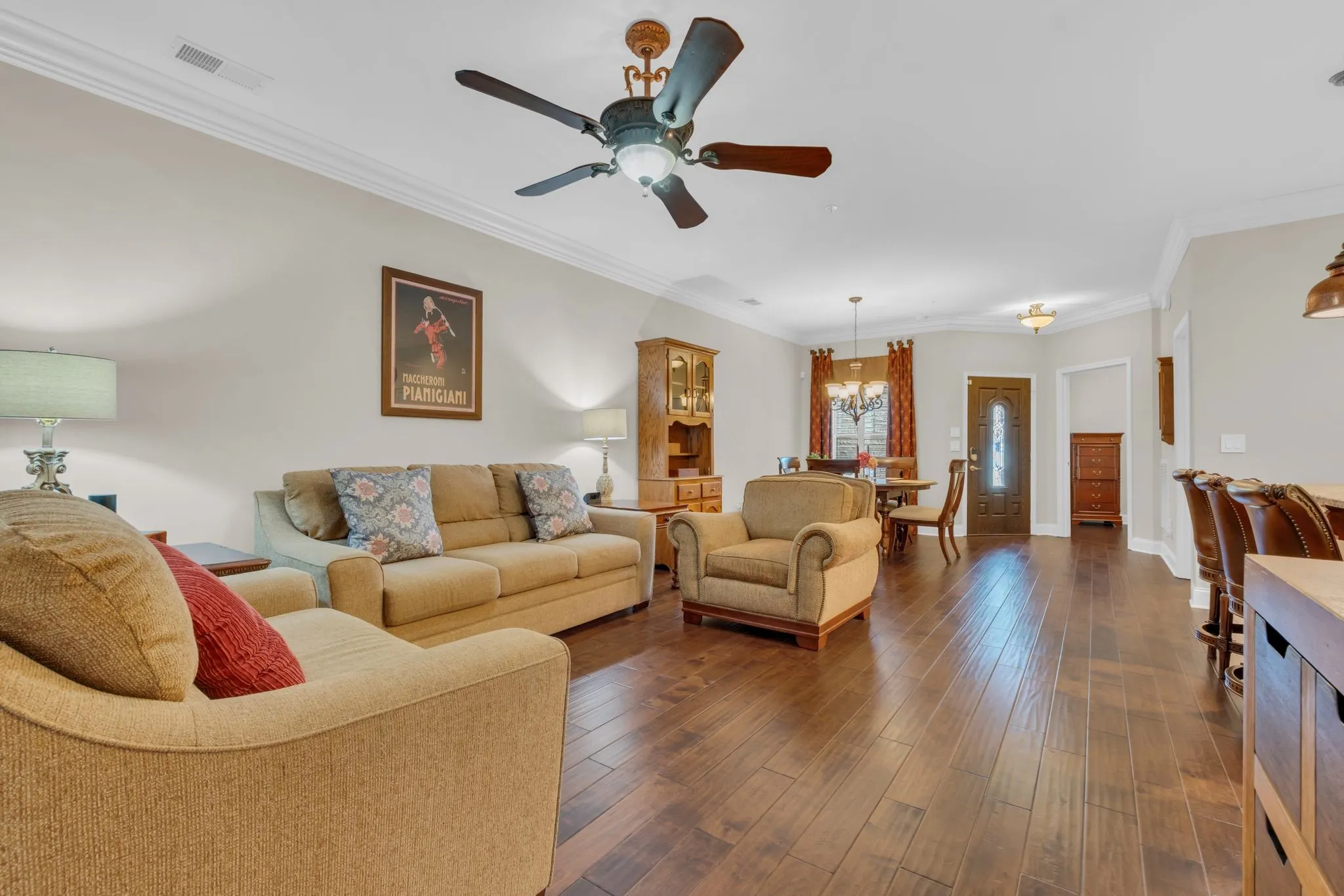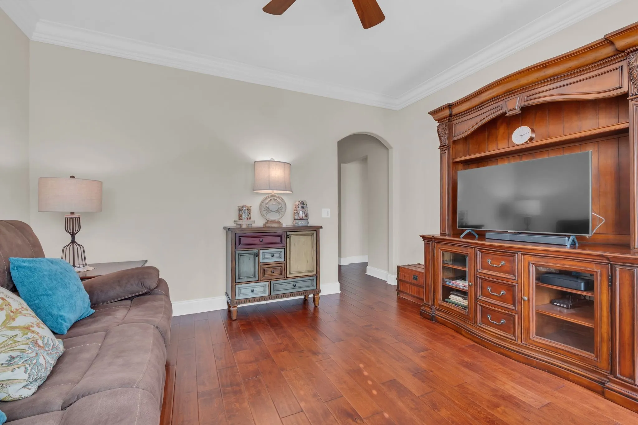 Simply Stunning describes this lovely home! Enjoy peaceful living in this beautifully maintained Goodlettsville home featuring 2 bedrooms and a massive bonus room that could easily serve as a 3rd bedroom with a full bath, electric remote controlled fireplace & walk in storage room. This open-concept floorplan boasts solid wood floors, elegant crown molding, and plantation shutters throughout.\n