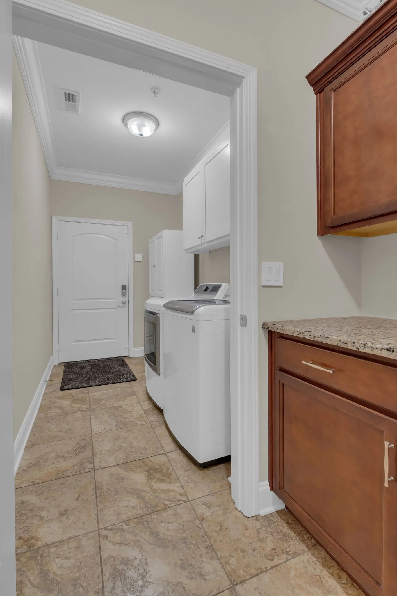 Nice laundry room includes soft-close cabinets and new washer & dryer that will remain!\n