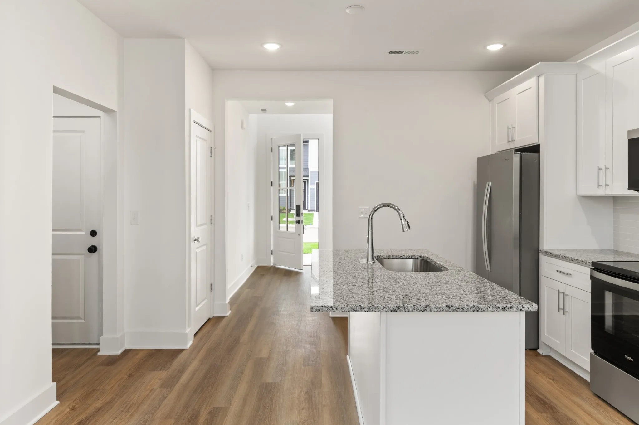 Discover the Aspen floor plan – a beautifully designed 3-bedroom, 2.5-bathroom home with an open-concept layout. This home features a primary suite on the main level, white stylish painted cabinets, and laminate flooring throughout the main living areas. The kitchen comes complete with a refrigerator, and the 2-car garage offers plenty of storage.