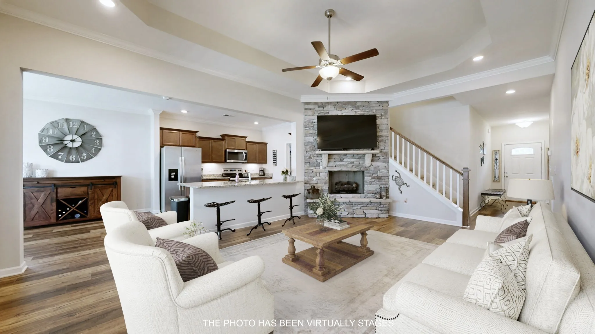 Community OPEN HOUSE Saturday 11am-1pm in Cumberland Estates! Why wait to build. This 3 bedroom, 3 bath home in Fairview is move-in ready and priced to sell. Great room with upgraded flooring, stacked stoned fireplace, crown molding and trey ceiling with recessed lighting. Plantation blinds throughout. Stainless appliances and granite in the kitchen, large breakfast room with access to the covered patio. Primary bedroom with trey ceiling, recessed lighting, fan, walk-in closet, and bathroom with garden tub and double vanity. Bonus room features walk-in storage access, recessed lighting and ceiling fan. Full bathroom upstairs in case you need a 4th bedroom. Two car garage and security system in place.