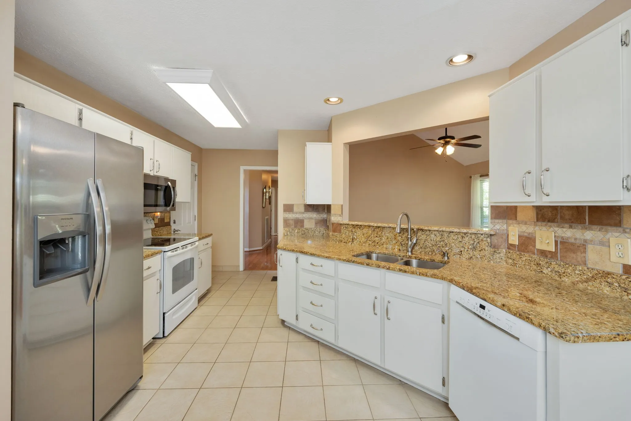 This charming home is located on a quiet cul-de-sac. Fresh landscaping and freshly painted. All one level, eat in kitchen, vaulted ceilings, hardwood throughout, granite, tile, 3 season sunroom and covered deck. Privacy fence with 2 gates for access. Newer windows. Very close to the lake for family outings. Close to shopping and dining. Washer, dryer and refrigerator will stay. Shed and Green House in backyard.