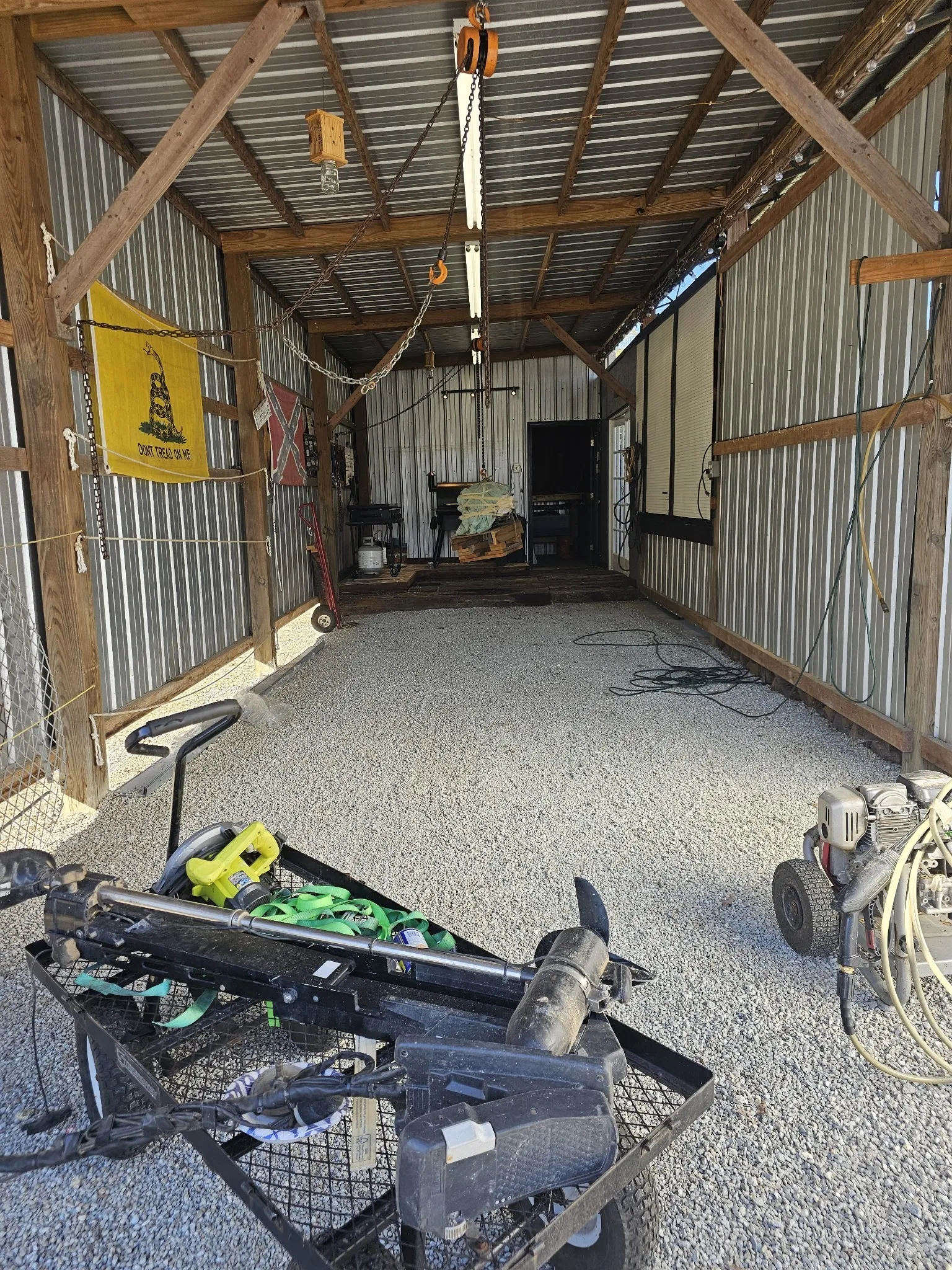 One of a kind property built on 2 lots ! Outdoor living at it’s best with 2600 sq ft under roof! House your RV with a full size outdoor kitchen plus a bar area, enclosed laundry and full bath, and a workshop/garage area with an air compressor! Additional carport cover for another vehicle. Privacy galore and tastefully decorated with a river view! The seller incorporated 100 yr old barn wood and metal plus railroad ties and French doors for a rustic style. Cook, grill, watch TV, tinker with your car, ATV or boat, hang out at the bar or host a party all under one roof! Beechview is a highly popular gated community on the TN River halfway between Nashville and Memphis. Close to golf and marinas. City water and paved roads. Furniture is included with the price. This one is move in ready!