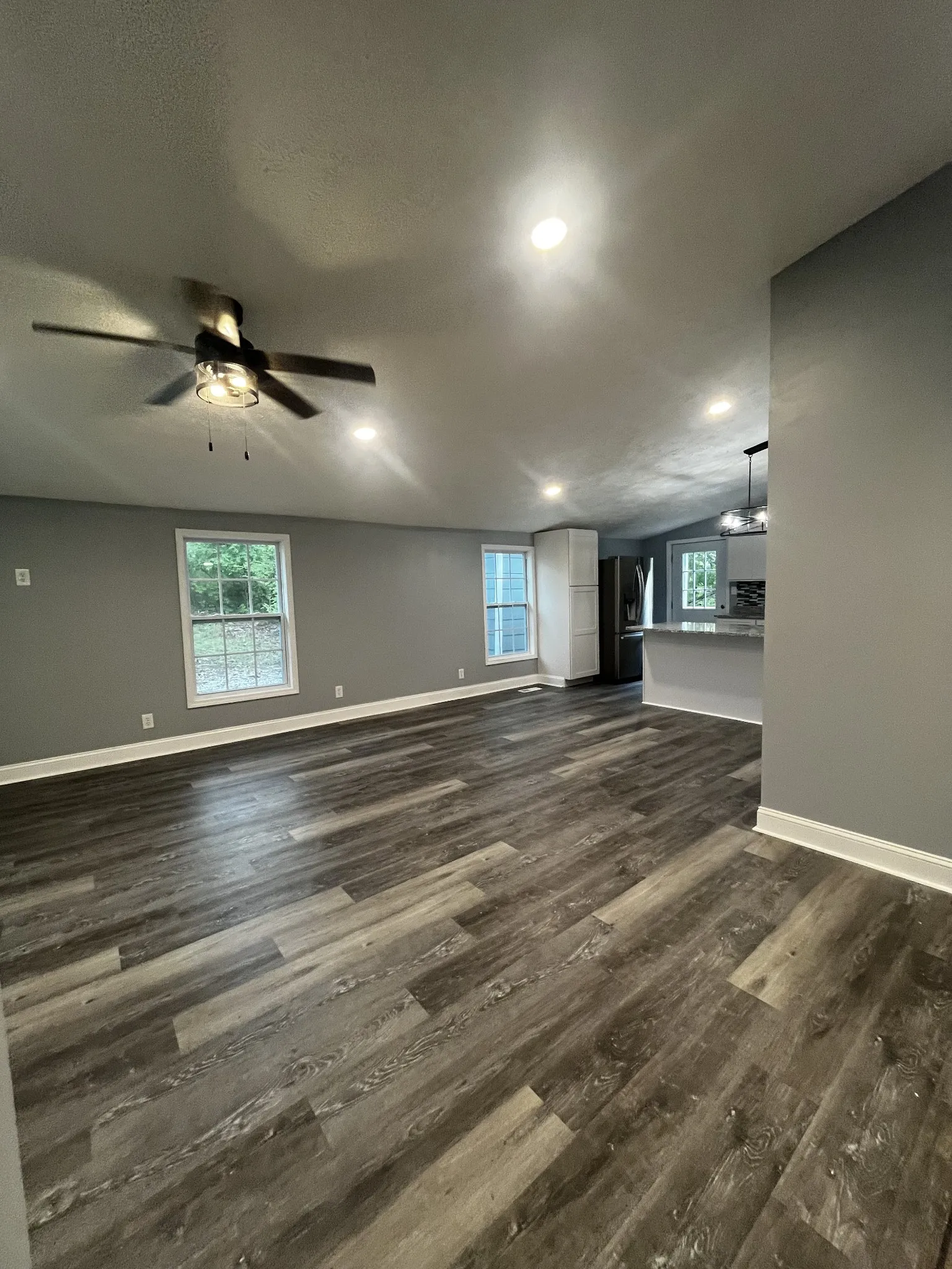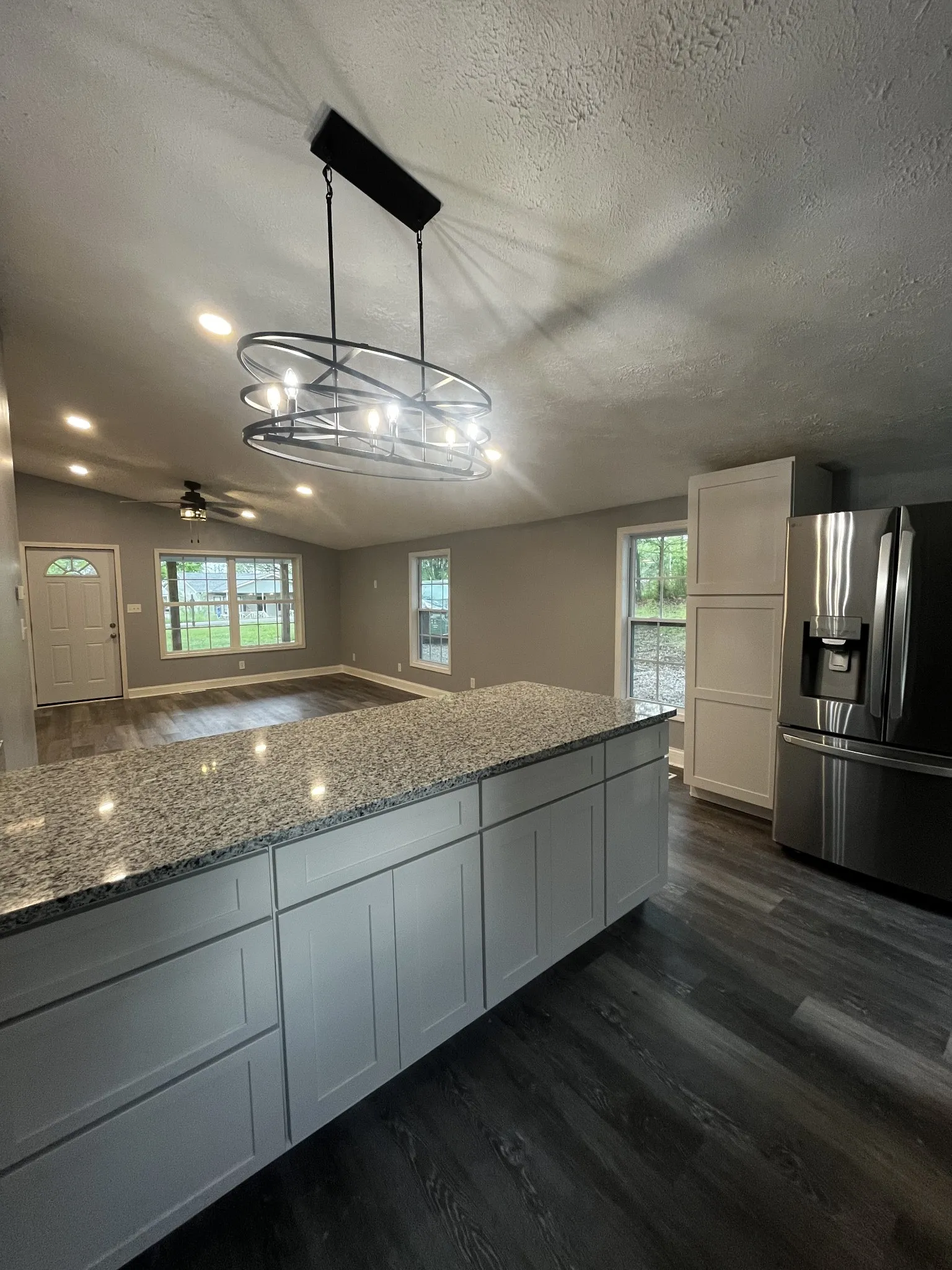 Interior Features Open Floorplan, High Ceilings, Kitchen Island, Ceiling Fan(s)