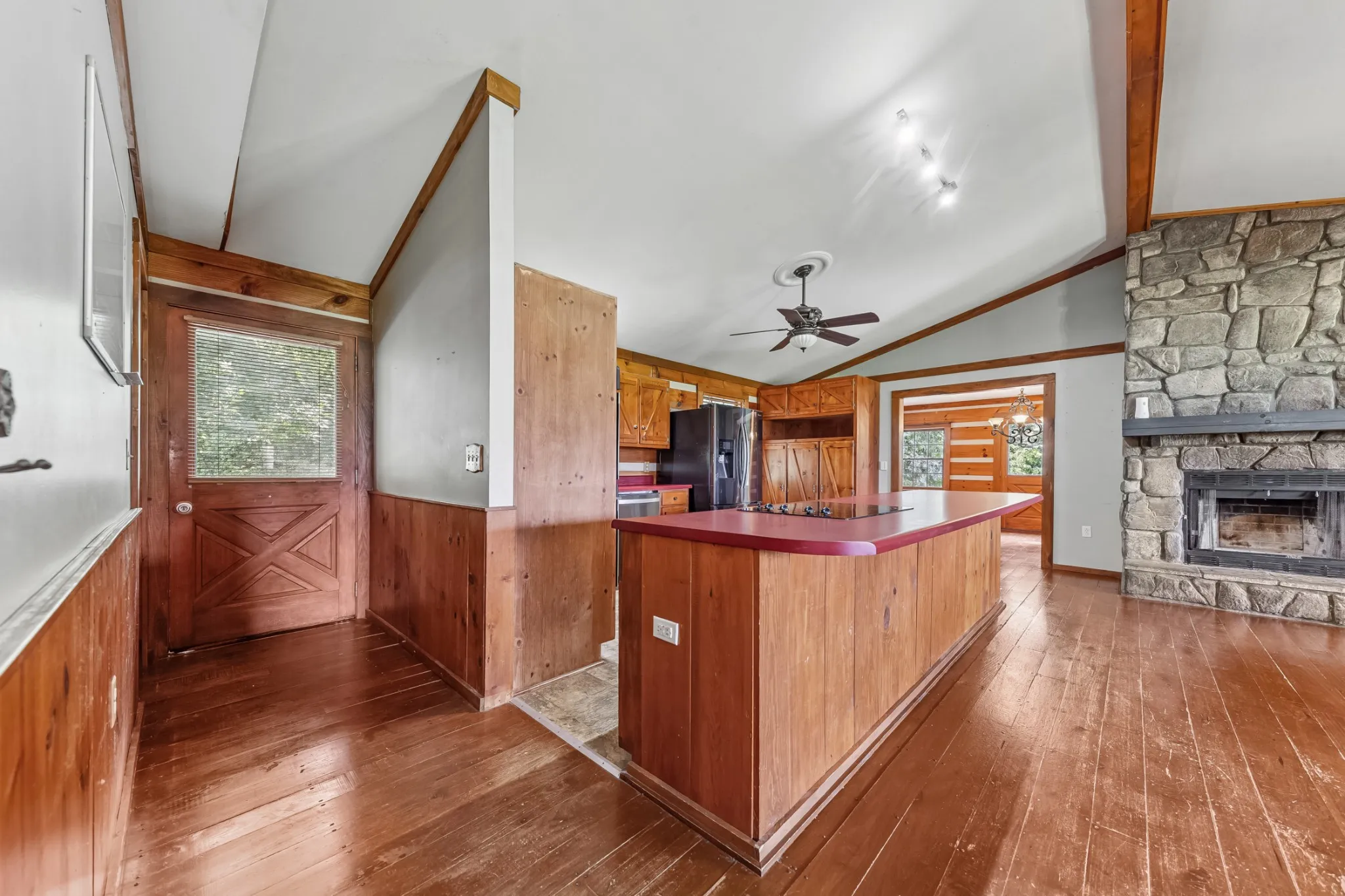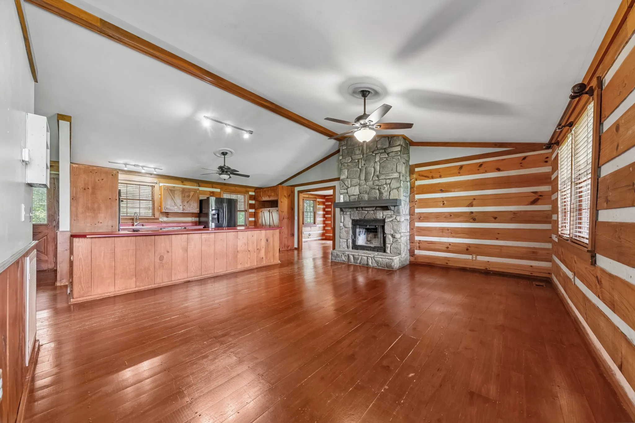ATTENTION LARGE FAMILIES…Come See This Beautiful “Real” LOG HOME situated on 6.38 scenic acres in Dickson, TN. This SPACIOUS home offers 2,886 sq ft with 3 Bedrooms and 3 Full Baths, plus a finished basement currently used as Extra Bedrooms & Living Space, providing excellent flexibility for a variety of needs. The Main Level features an Open Floor Plan with Vaulted ceilings, classic Hardwood Floors (face nailed), and a Stunning STONE FIREPLACE that creates a warm, inviting atmosphere. A Formal Dining Room, LOTS of Cabinet Space and ample storage throughout the Home.