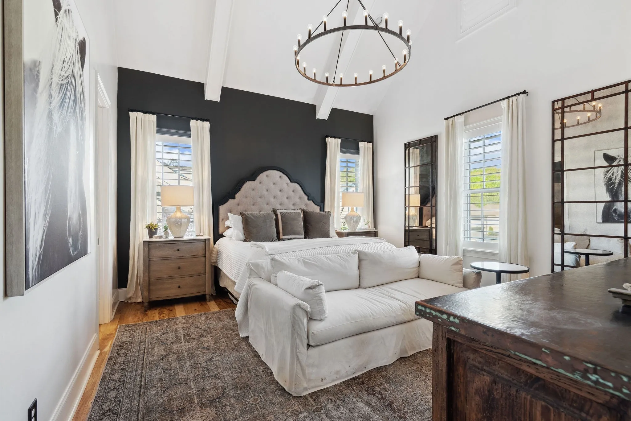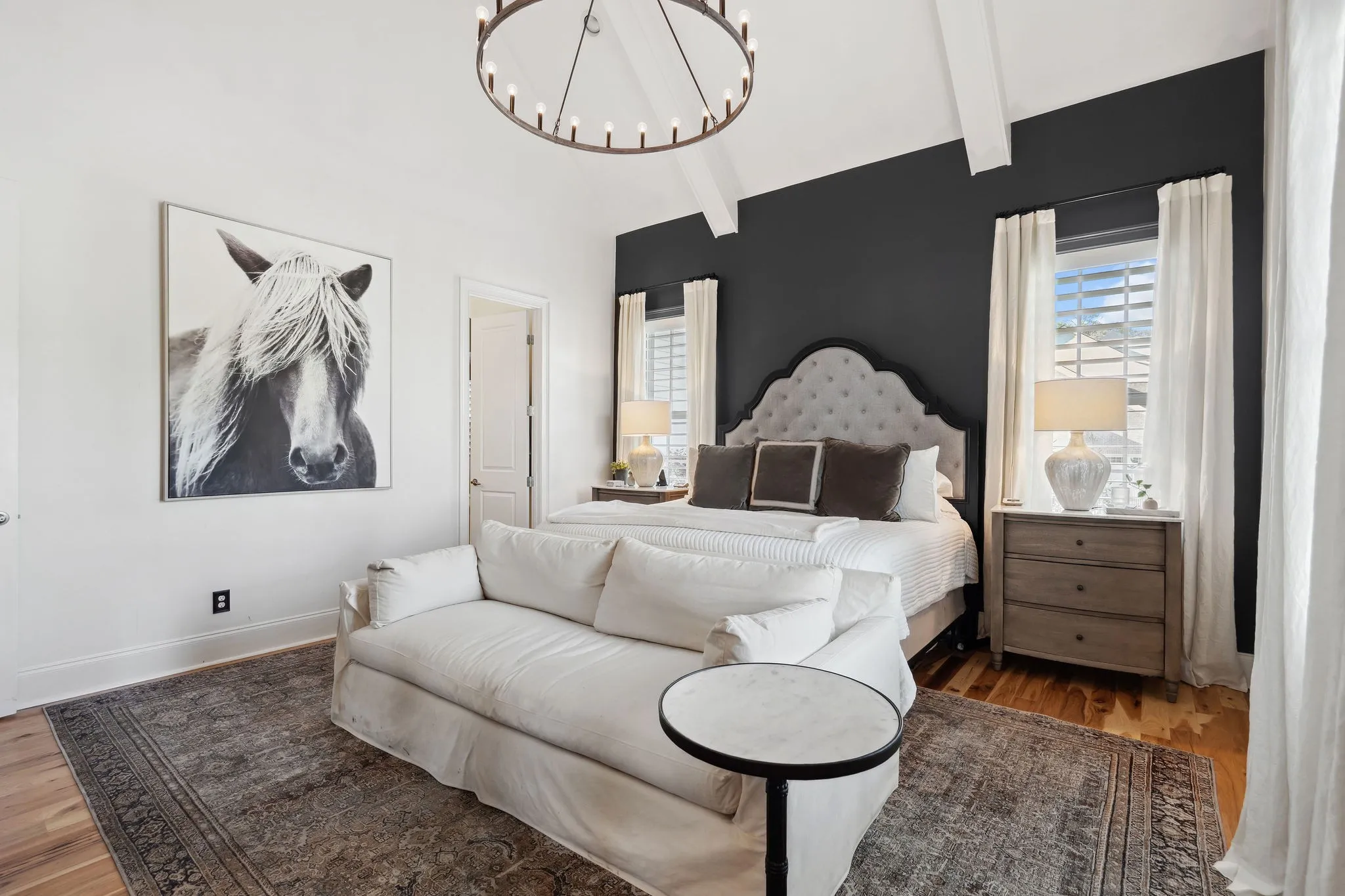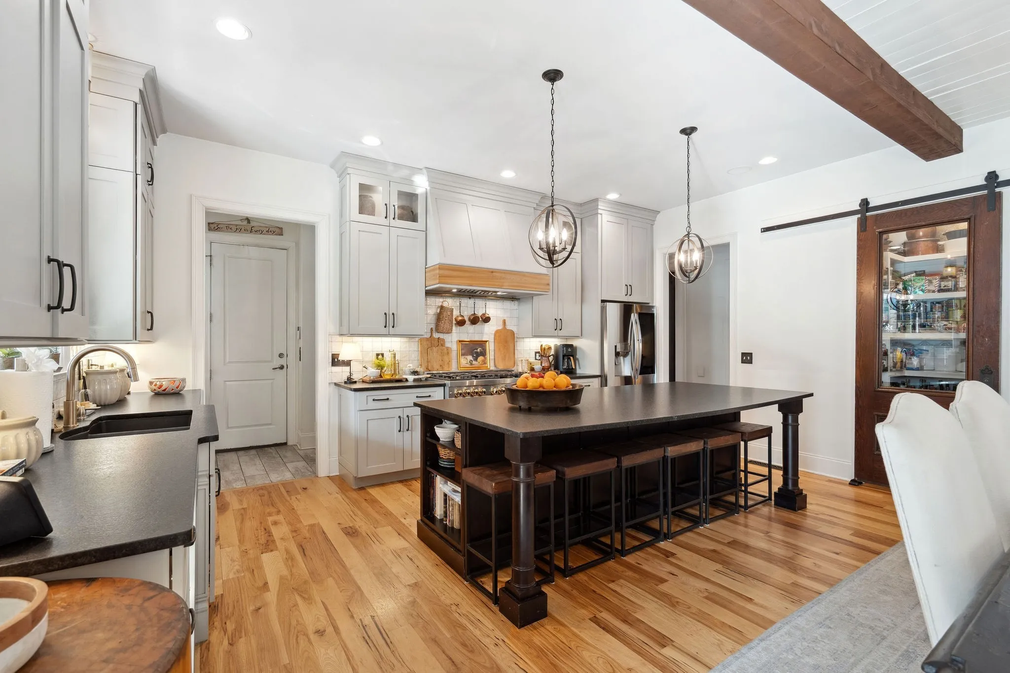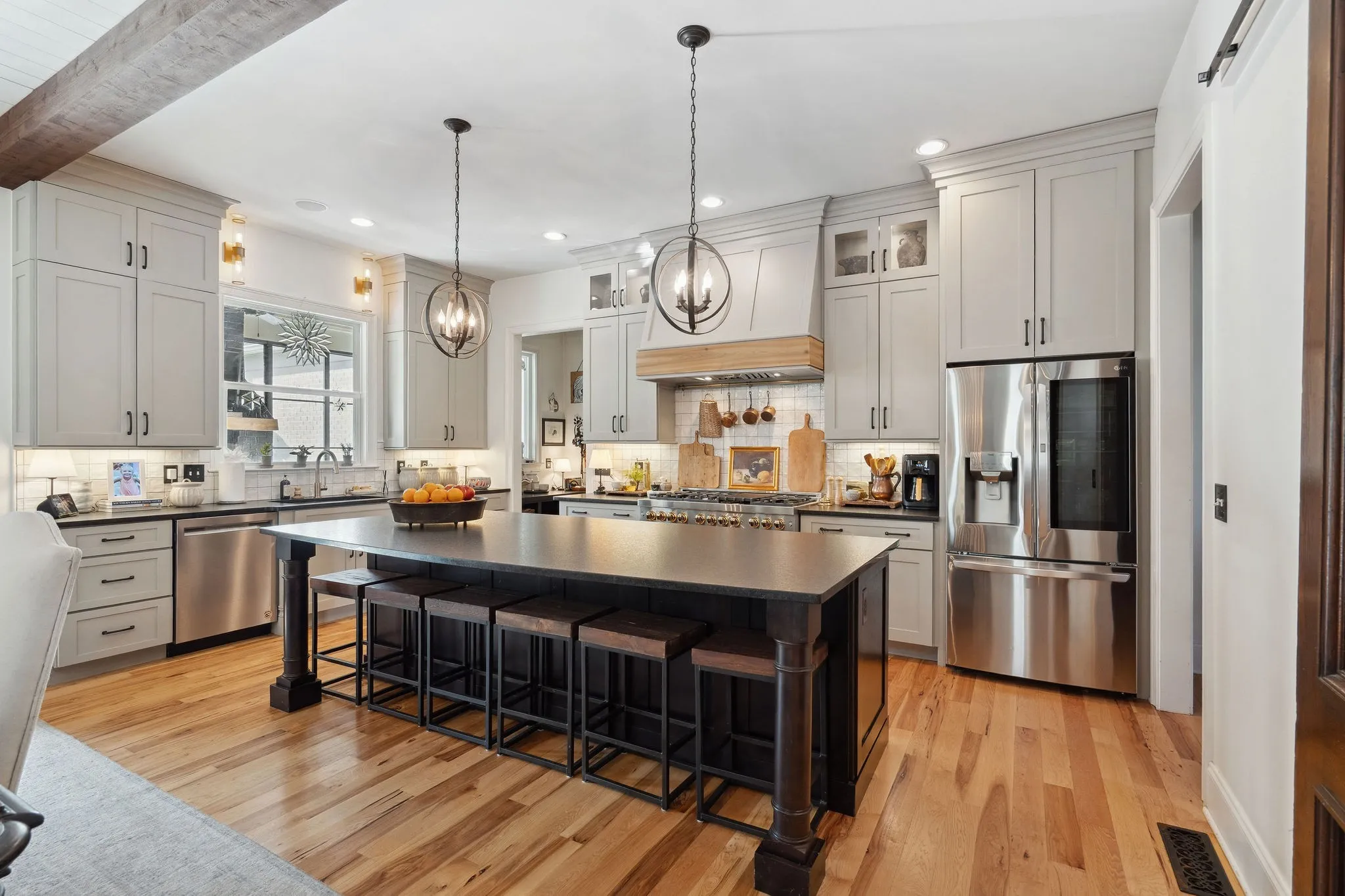 +"PublicRemarks": "Step into timeless sophistication and modern comfort in this beautifully crafted 5 bedroom/4 bath home designed by renowned architect Preston Shea. With stunning architectural detail and thoughtfully custom designed spaces, this home exudes charm, elegance, and livability at every turn. A welcoming hearth room/den seamlessly connects to the great room, both anchored by a striking double-sided fireplace with new walnut mantels and stylish gas logs. A rustic brick accent wall and elevated barn door add character to a private, tucked away office. The primary suite is a sanctuary of style, boasting a vaulted, beamed ceiling and dual walk-in closets. The luxurious primary bath features separate vanities and a spa-like atmosphere. The heart of the home is the open concept living area, where the upgraded kitchen impresses with leathered granite countertops, designer backsplash, and high-end appliances. Perfect for entertaining or quiet evenings under the stars, newly installed glass walls provide beauty and closure to a sunroom—complete with a warming fireplace. Every bedroom in this home features a walk-in closet and direct access to a full bath, while the media/game room offers a walk-behind beverage bar, wine fridge, and space to unwind or entertain. The remodeled laundry room with sink, storage galore, and an oversized 3-car garage (with a pedestrian door to the backyard) add daily convenience. Additional features include: new installed hardwood floors, whole-home generator with cold weather upgrade; designer style lighting and custom paint; upgraded media/game center; antique French doors, surprising nooks and bookcases throughout; a fenced backyard; and enhanced landscaping and flowering vegetation. Perfectly located near Cool Springs, Franklin, Brentwood, and Green Hills, this home offers the ideal blend of privacy and accessibility. It looks and feels like a bespoke-designed home, full of thoughtful touches and unexpected surprises."