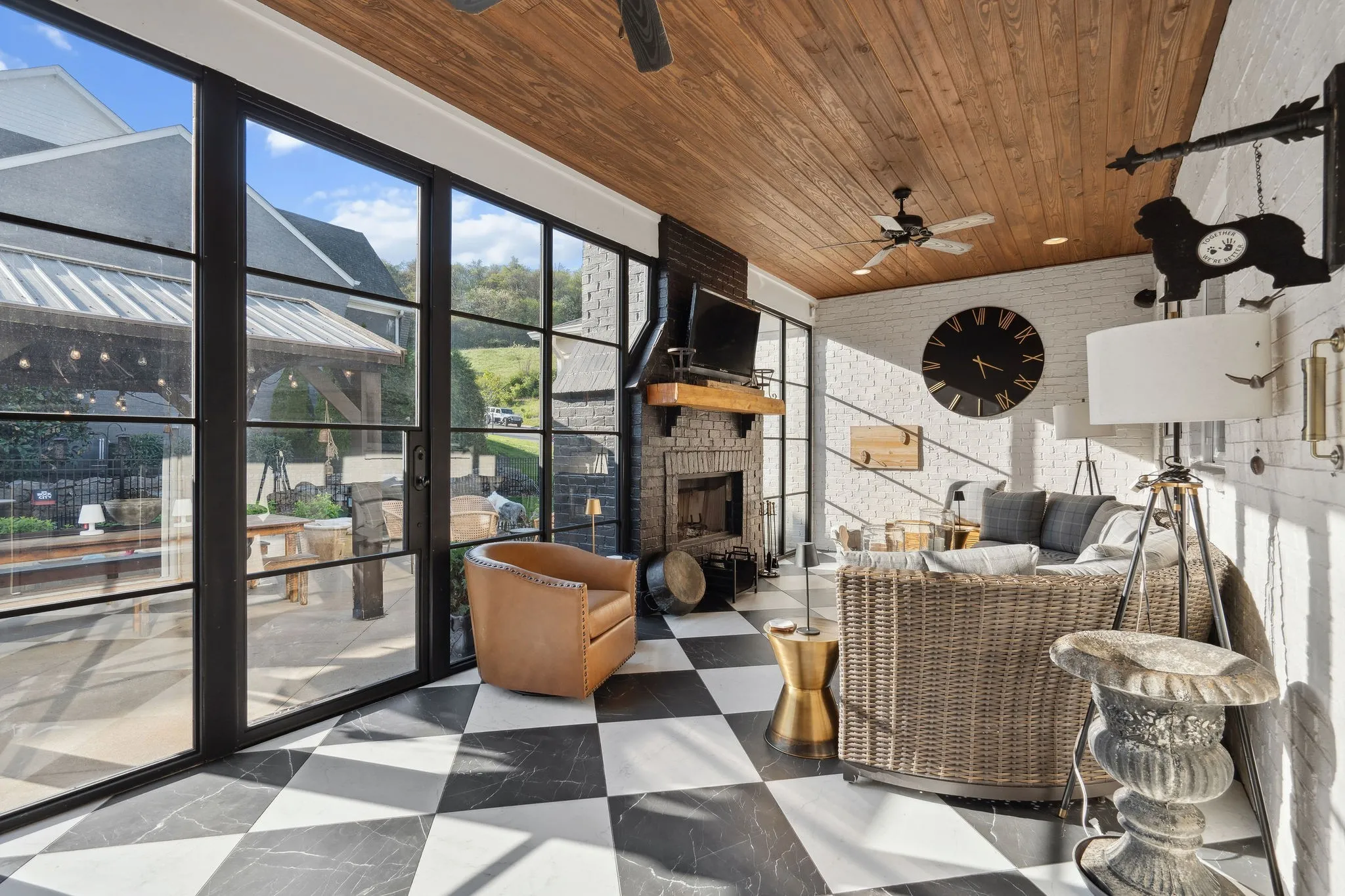"LongDescription" => "Sunroom and Custom Fireplace and Commercial Glass Walls"