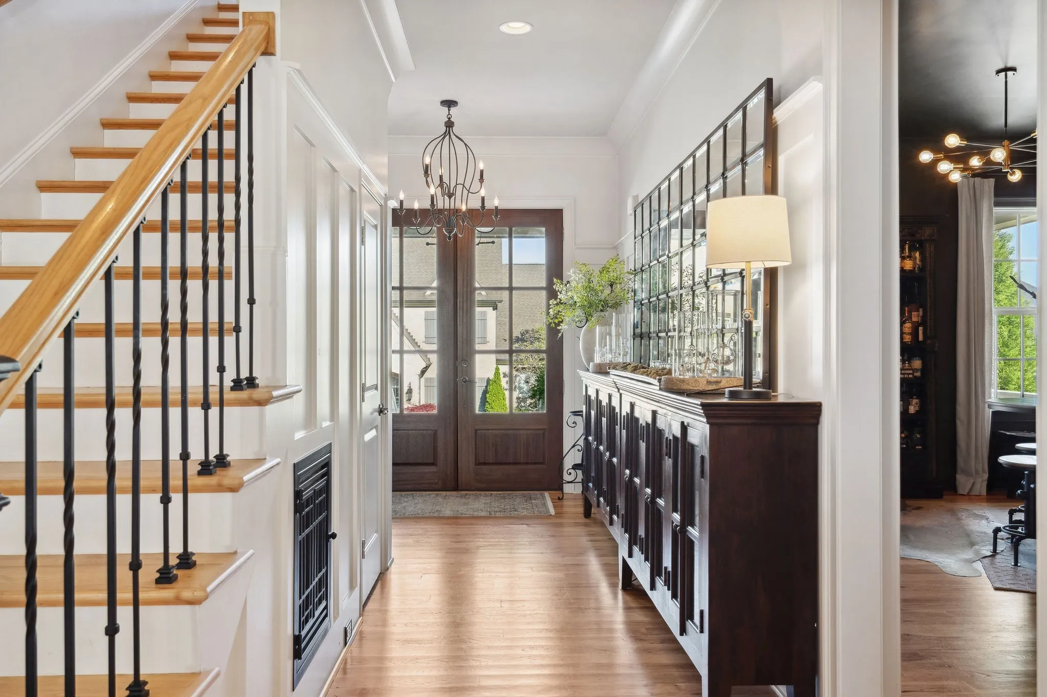 "LongDescription" => "Entry to Movie and Game Room; Antique French Doors Grace the Doorway"