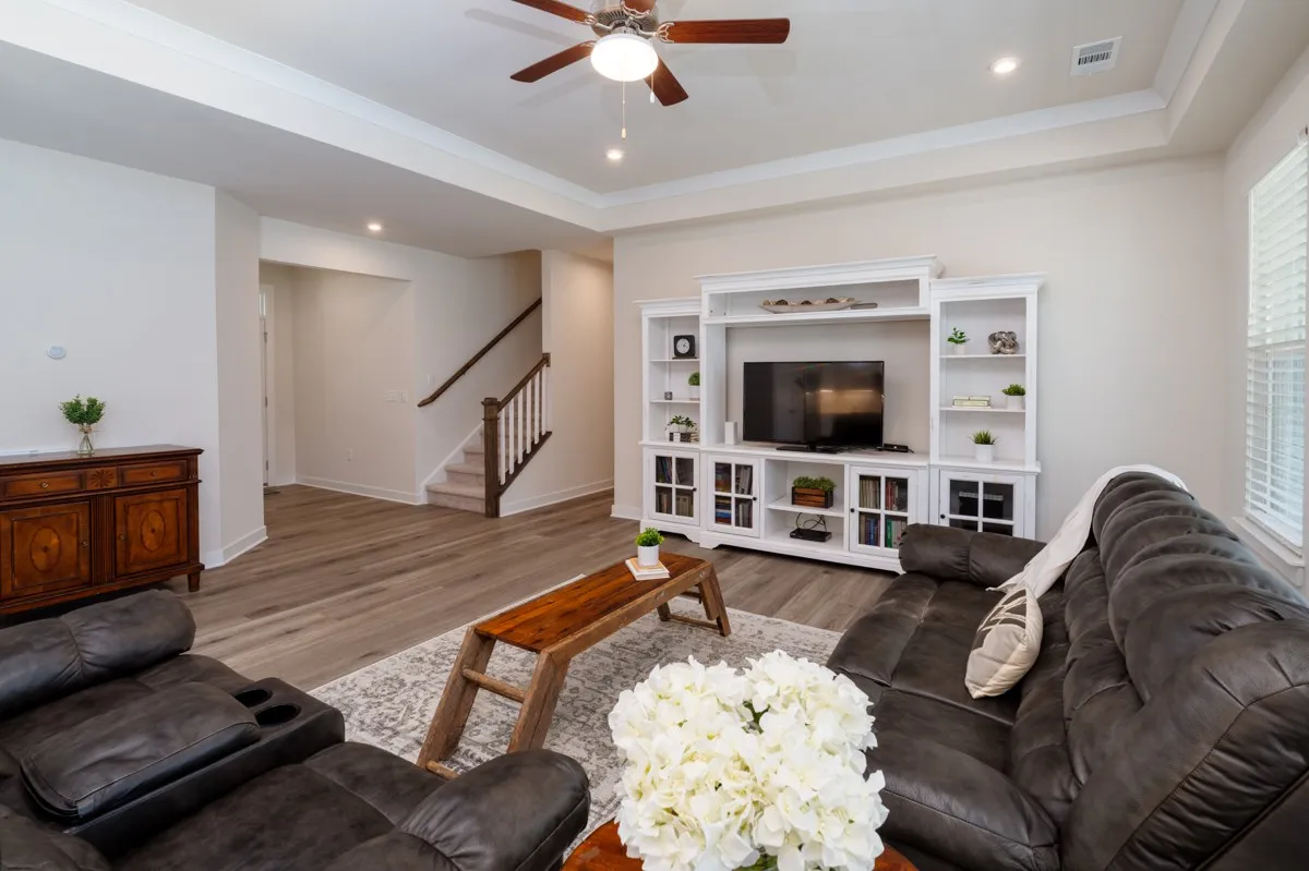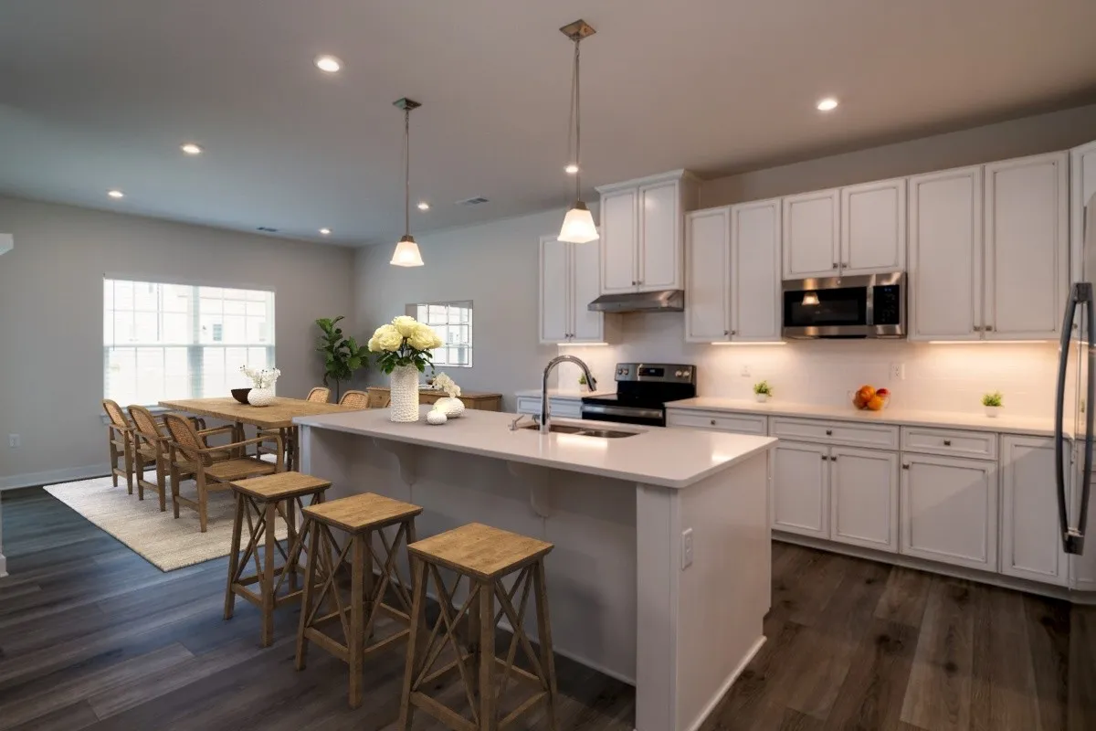 Like-new ranch-style home offering 3 bedrooms and 2 full baths on the main level, PLUS a private upstairs guest suite and bonus storage. The open-concept layout features a spacious family room and kitchen, anchored by an 8′ quartz island. Enjoy 42″ cabinets, a pantry, GE stainless steel appliances, and a generous dining area. The primary suite includes a large shower, double vanities, and two oversized walk-in closets. Step outside to a screened-in back porch, extended patio, and fully fenced yard—ideal for relaxing or entertaining. Located in a walkable neighborhood with resort-style amenities including a pool, clubhouse, fitness center, and playground – don’t miss your opportunity to call this home!