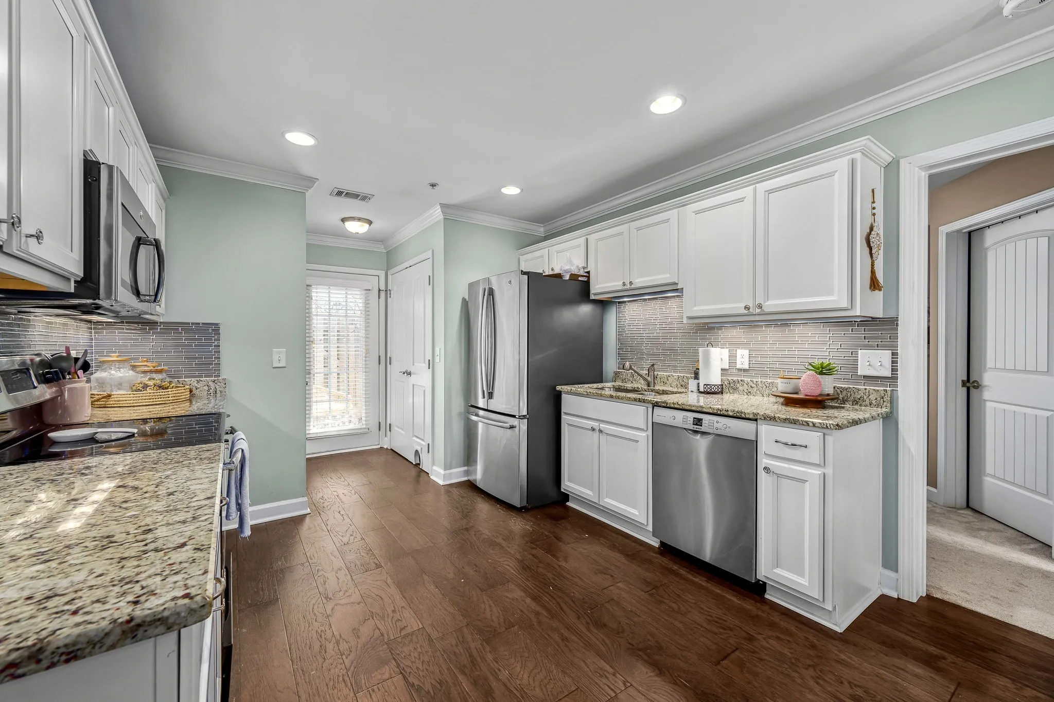 Best spot in the neighborhood backing up to the trees! Located in the heart of Mt. Juliet, this amazing home is steps from the community pool, Cedar Creek Greenway, & Charlie Daniels Park. Just minutes to shopping, amenities, the Music City Star, and only 14 miles to Nashville International Airport. This home boasts all the upgrades including new hardwood flooring, 8 foot ceilings, a spacious kitchen with stainless appliances, white cabinets and granite counters, and crown moulding. The primary suite features a large walk-in closet and a private, full bathroom. Outside, you’ll find the private, fenced patio backing up to the amazing treeline. Kitchen Fridge/Washer/Dryer can remain! Roof only 2 years old! Make this home yours!