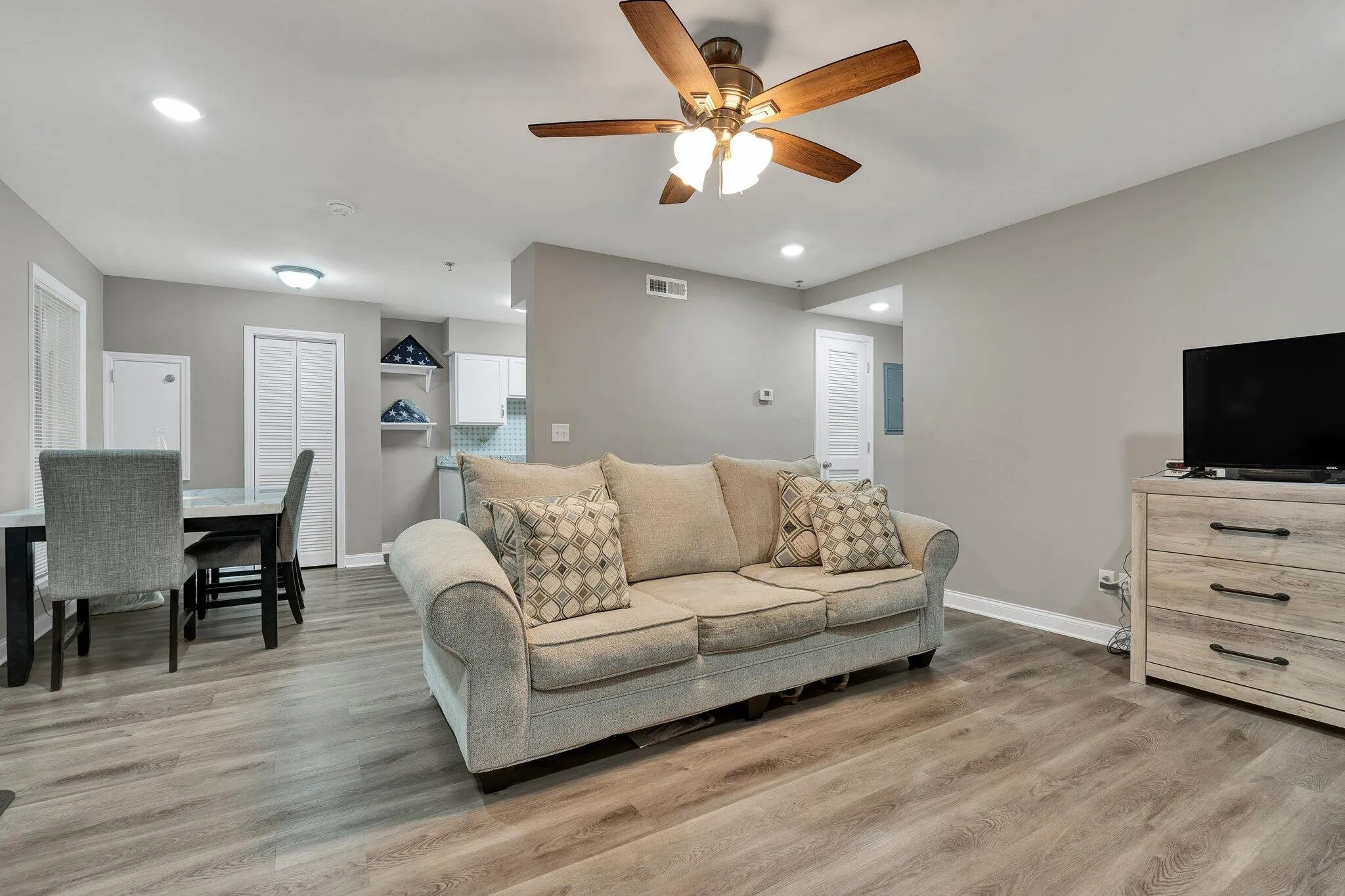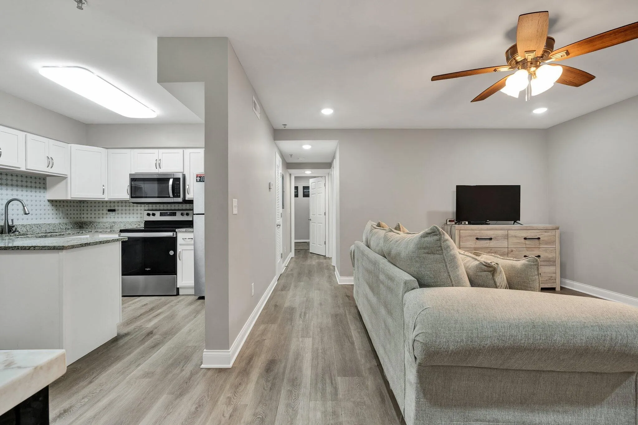 Like new condo just minutes from downtown Chattanooga! If you are looking for low maintenance living this is the one for you. This building was completely rebuilt from floor to ceiling and has literally new everything. The open living room gets ample natural light from the large windows and is open to the dining area and kitchen. The countertops are all granite and there are new stainless steel appliances. The primary bedroom includes and ensuite bathroom and walk in closet. The guest bedroom is perfect for a spare bedroom or office. There is an additional full bathroom in the hallway, easily accessible to guests. Community amenities include a pool, fitness center, pet park, laundry facility, picnic area, scenic lake, and on site maintenance. Water and sewer utility, trash, pest control, pool access, grounds access and maintenance, and exterior insurance is all included in the HOA. The laundry facility is just down the parking lot from the buildling!