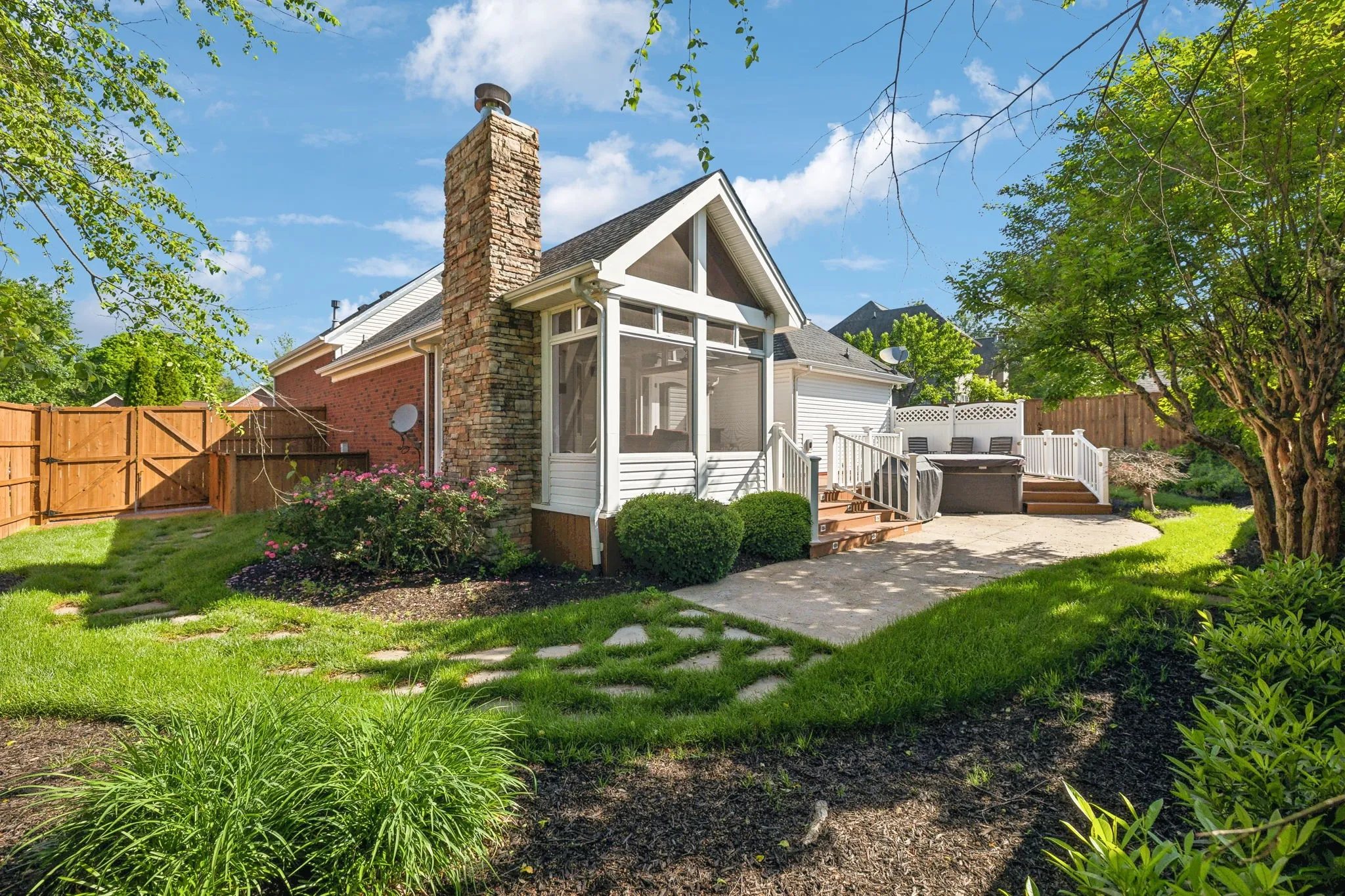 +"PublicRemarks": "Welcome to this charming and beautifully maintained home offering mostly single-level living, nestled on a quiet cul-de-sac with no HOA. Step outside and experience the true highlight of this property — an expansive, fully fenced backyard complete with dream amenities! A stunning screened-in deck with a cozy, stacked stone fireplace invites you to unwind and entertain during pleasant summer evenings. The hot tub, which conveys with the property, adds an extra touch of relaxation and luxury to your outdoor retreat. The manicured, fully irrigated yard and privacy fence offer both beauty and seclusion, and the lot backs up to open land available for play and pet use. Inside, the home features a thoughtful layout and good flow for easy living. The main living area has beautiful hardwoods, tall ceilings, and a gas fireplace. The home has been well-loved and all major appliances have been replaced and are only a couple years old. Enjoy the convenience of quick highway access and close proximity to the airport, shopping, dining, and all the outdoor recreation that Percy Priest Lake has to offer. This home blends comfort, lifestyle, and location — and the backyard sanctuary truly sells itself! Call this hidden gem yours today! *Open House Saturday 5/10 12-4pm!*"
