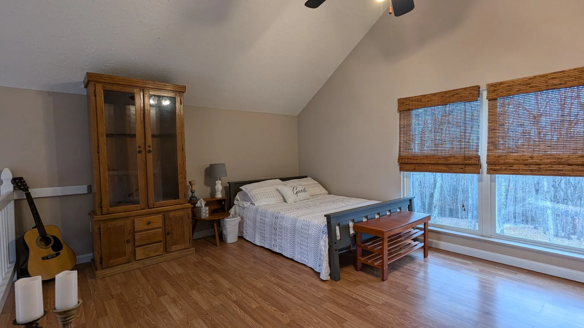 The property also includes a Guesthouse – 1 bedroom, 1 bath, kitchen, living room with fireplace, garage and private screen in Patio with a fire pit. Can generate extra income as a Long term or short term rental or in-law quarters.