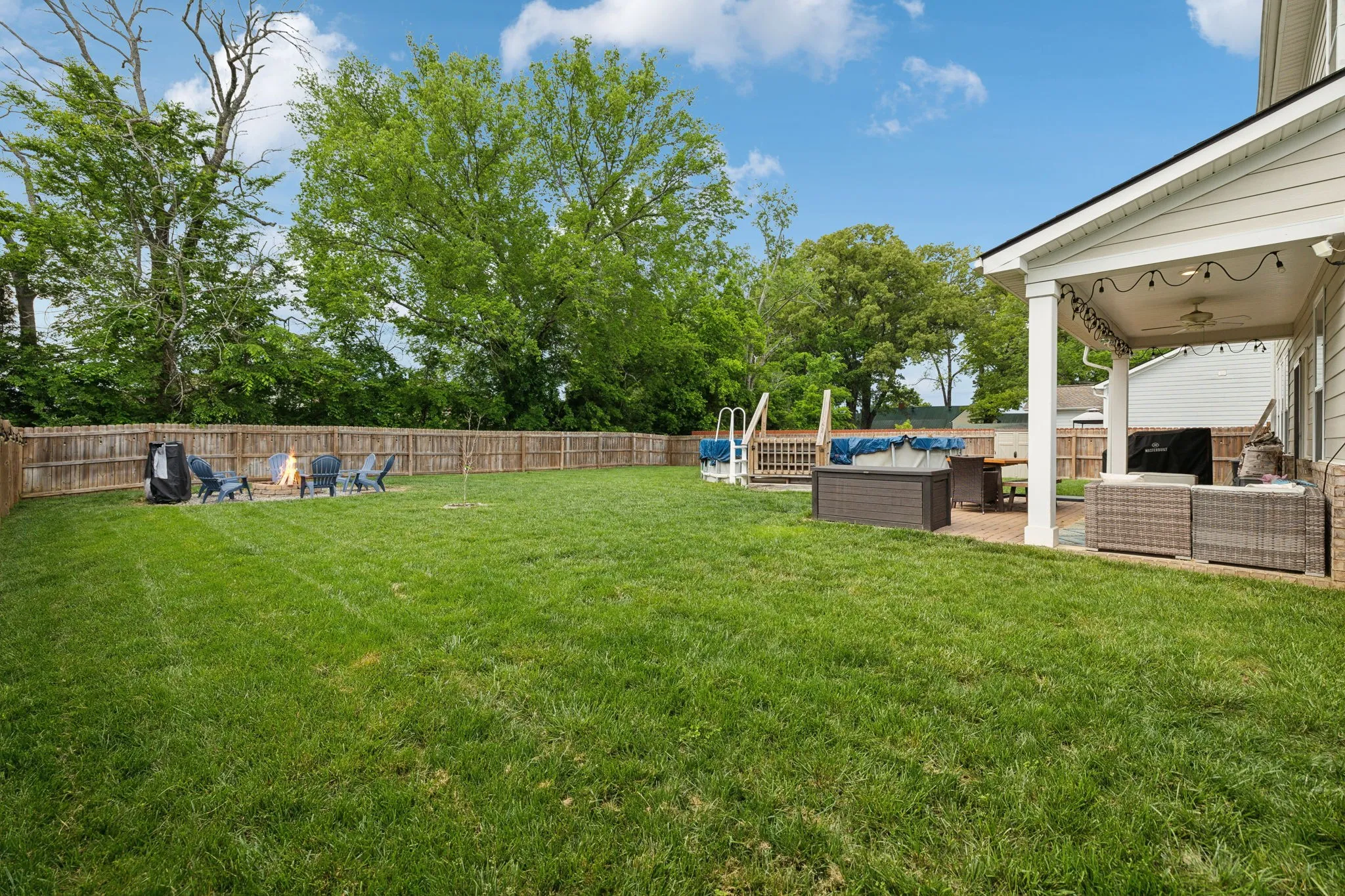 Don’t miss this charming home in the heart of Murfreesboro. Located in the Blackman school disctrict in Murfreesboro, this home offers has 4 bedrooms, 2.5 baths, smart home technology, and a large fenced in backyard. New irrigation system has been installed. 2 car garage includes a new insulated garage door. LVP flooring installed on stairs and upstairs in 2022. 3rd bedroom has a unique additional sitting area. The Flex room downstairs is currently used as a dining room. Kitchen includes a pantry, island, and eat in area that separates the Living room. The home has one of the larger backyards in the neighborhood with a 6′ tall wood privacy fence, covered patio, fire pit area, and pavers that extend the patio. Neighborhood features a park and playground. Minutes to restaurants and shopping. Temporary above ground pool can convey with the home or can be removed if it is not desired.